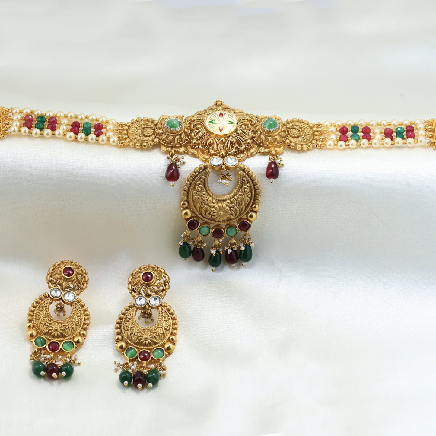 Add 218142_24kt Gold Plated Colorful Gemstone Antique Chowker to the cart