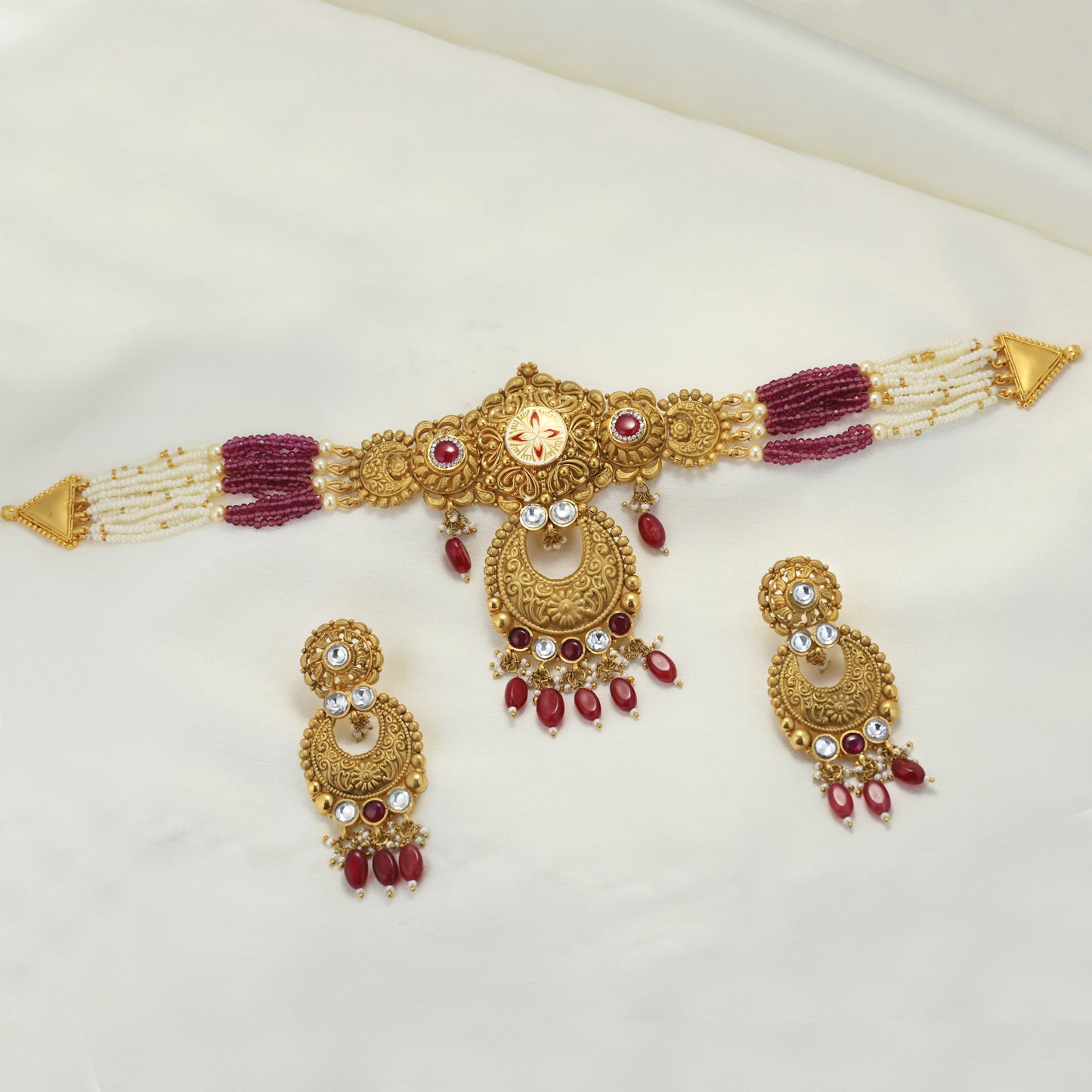 Add 218136_24Kt Gold Plated Temple Antique Chowker to the cart
