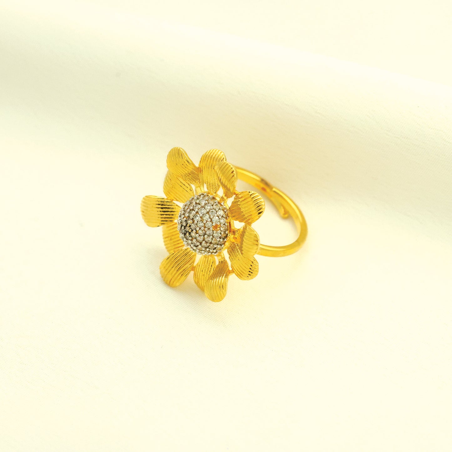 Add 24kt Gold Plated American Diamond Floral Look Partywear Adjustable Ladies Ring_670N to the cart