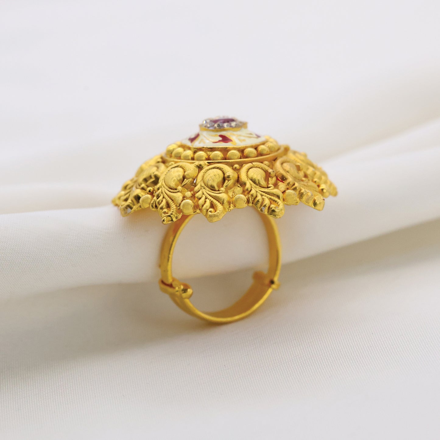 Add 24kt Gold Plated Adjustable Rajwadi Design Cocktail Ladies Ring to the cart