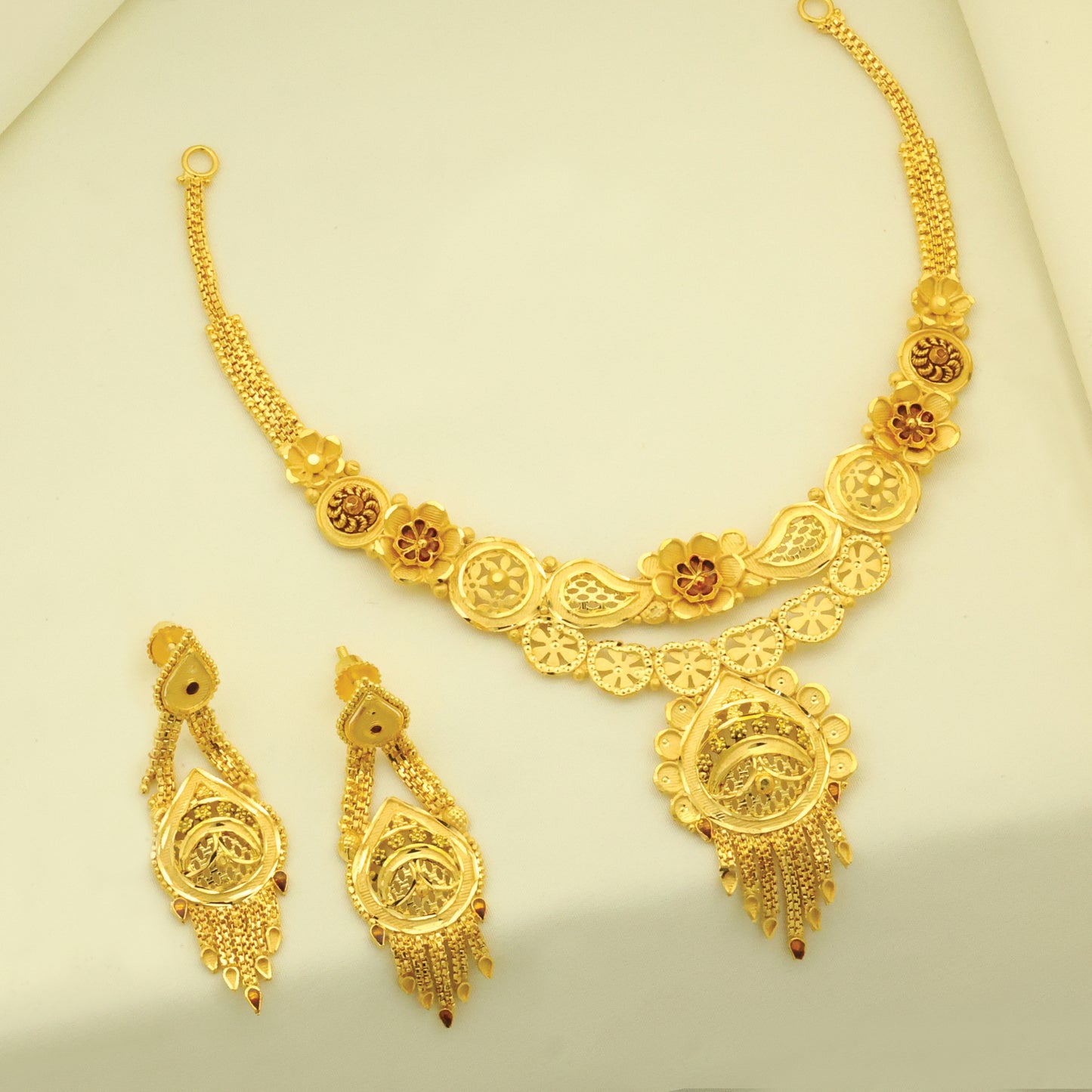 Add 24kt Gold Plated Beautiful Floral Design Turkish Short Set With Earings_1730 to the cart
