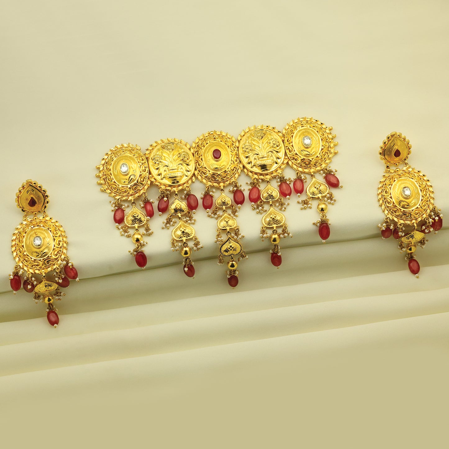 Add 24kt Gold Plated Beautiful Red Kundan Antique Short Set_2720 to the cart