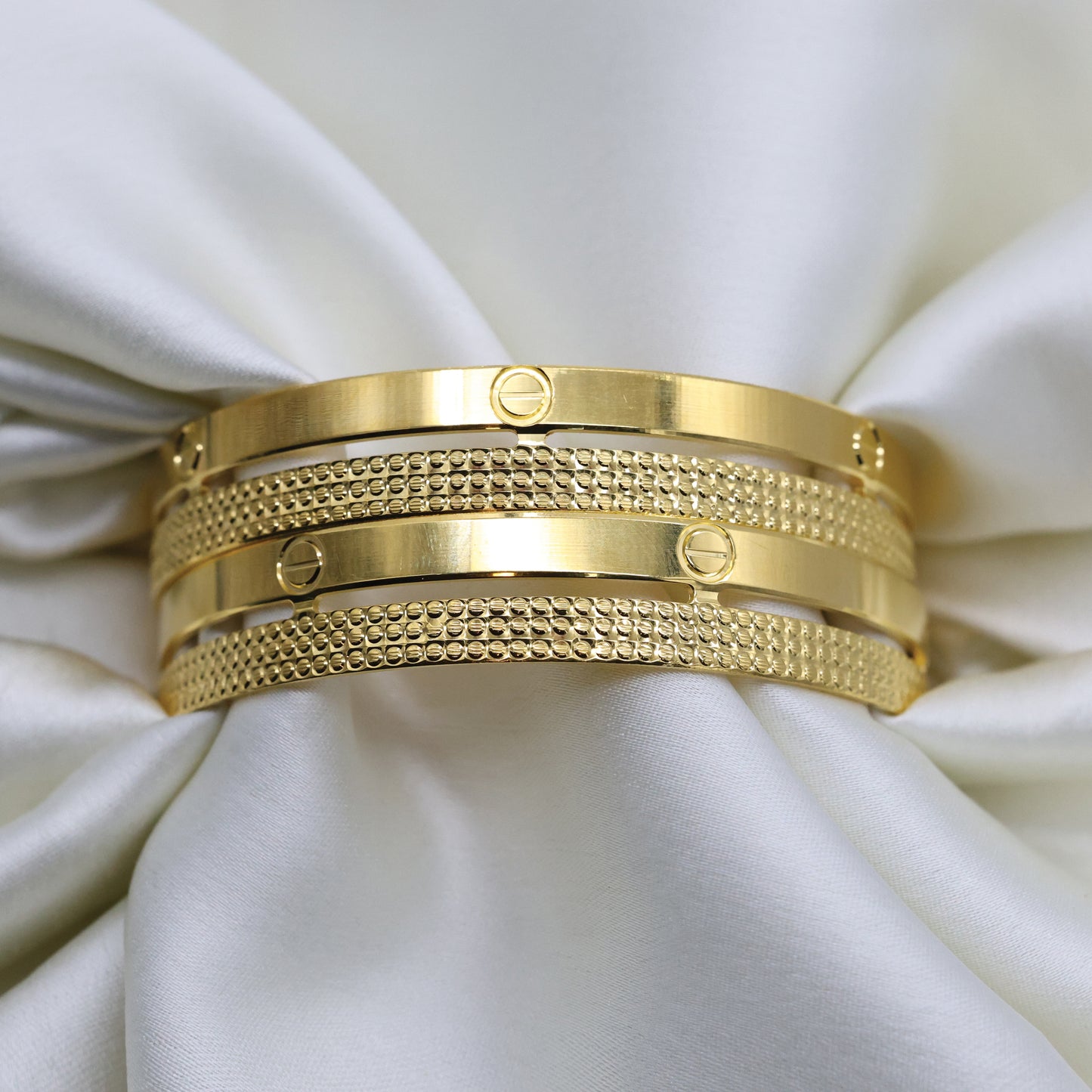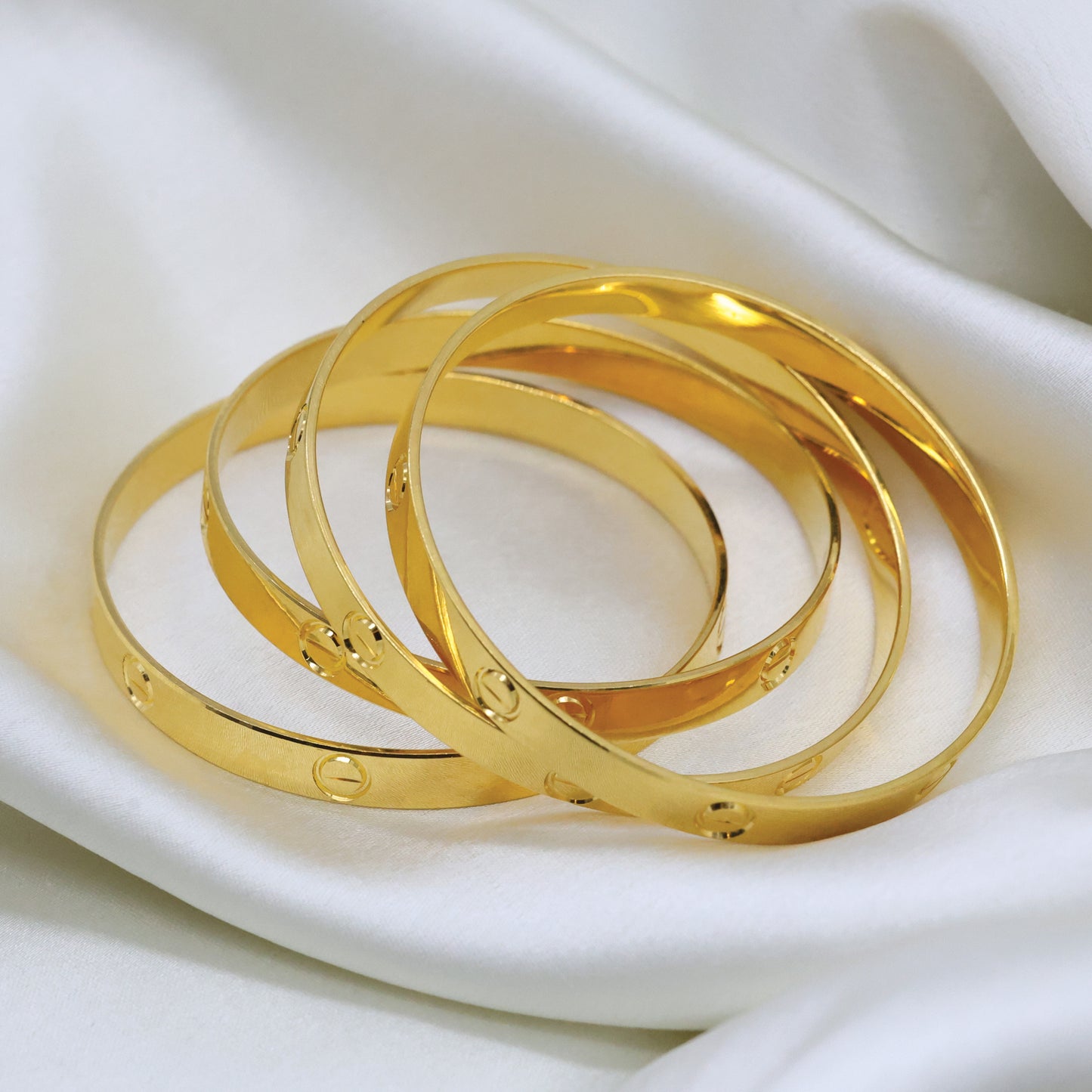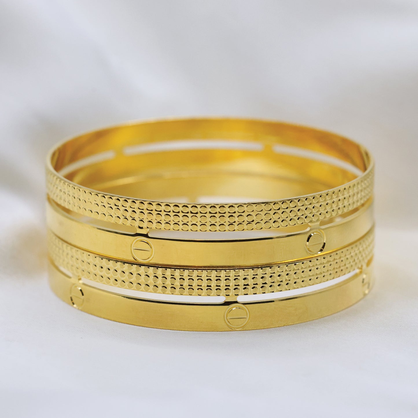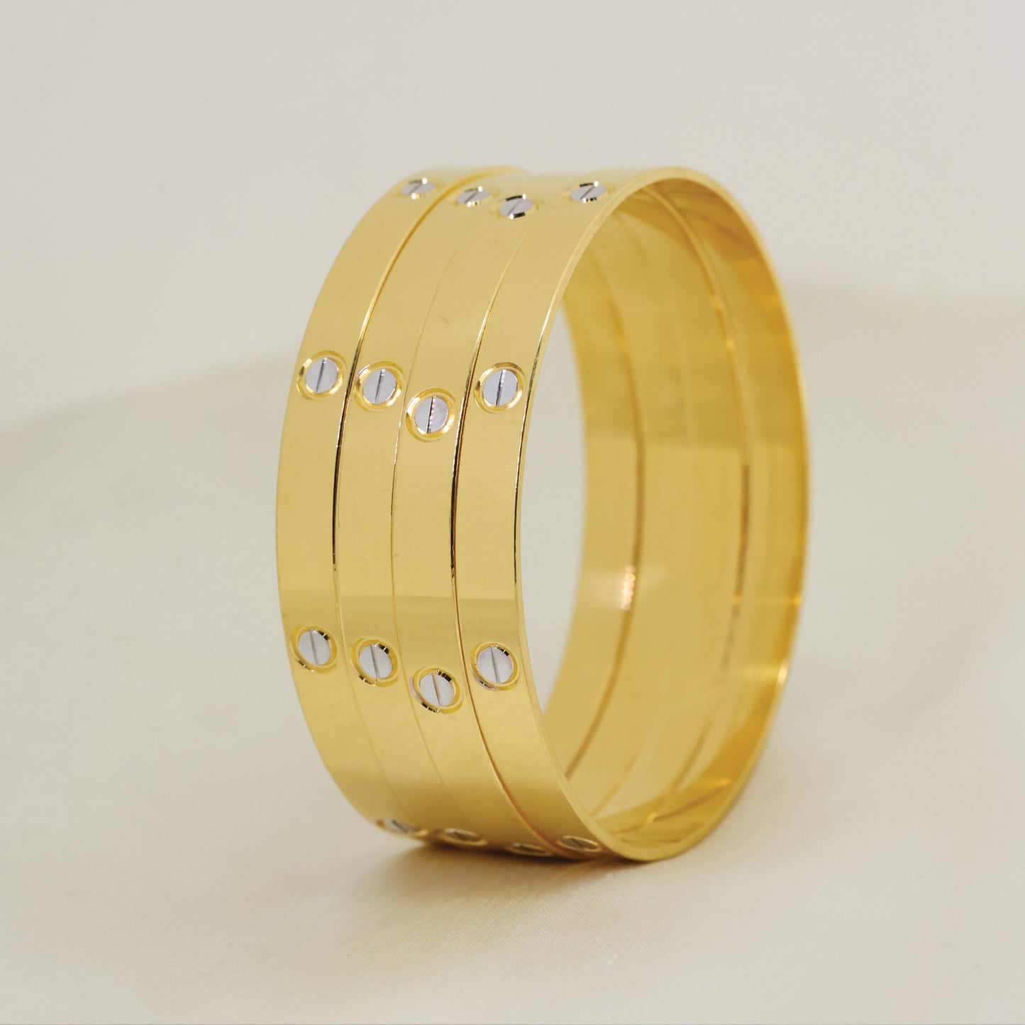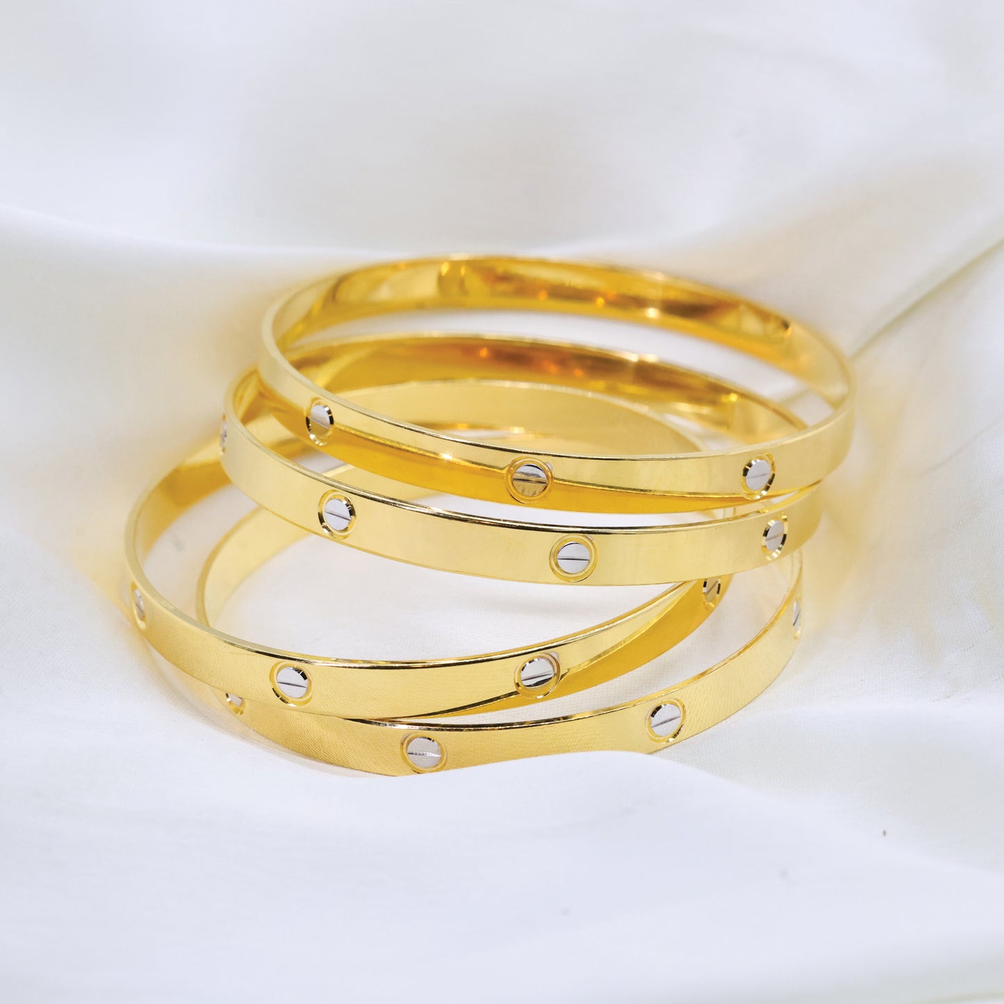 Add 24kt Gold Plated Cartier Design Unique Design With Rhodium Polish Bangles Set of 4pcs to the cart