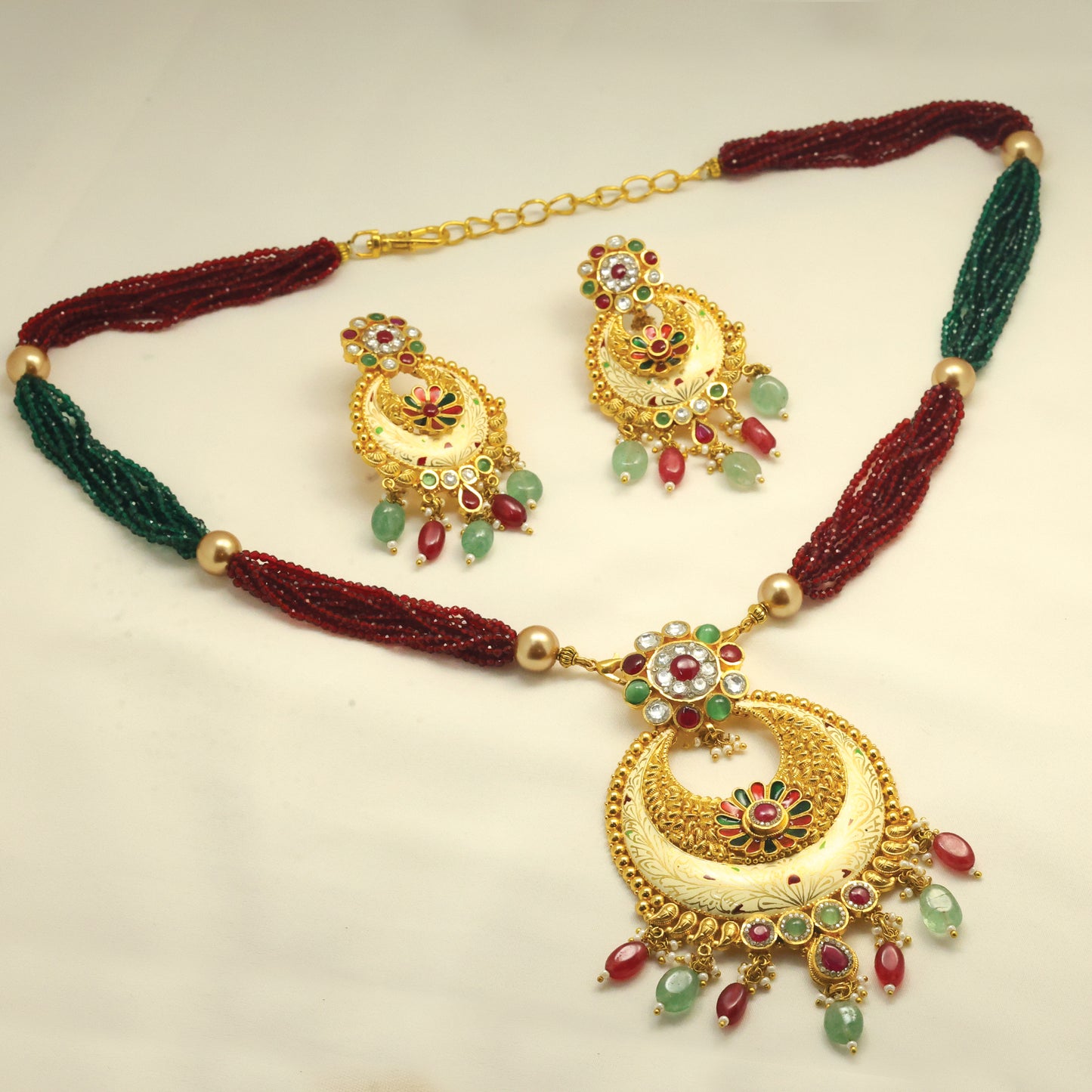 Add 24Kt Gold Plated Traditional Design Antique Pendant Set With Beautiful Earings_1450N to the cart