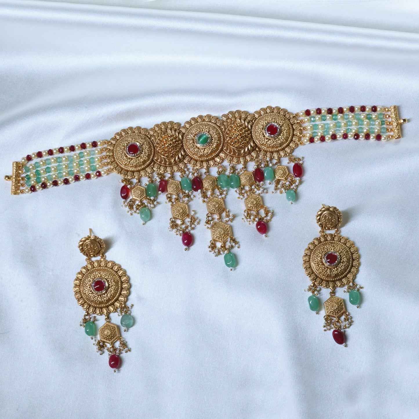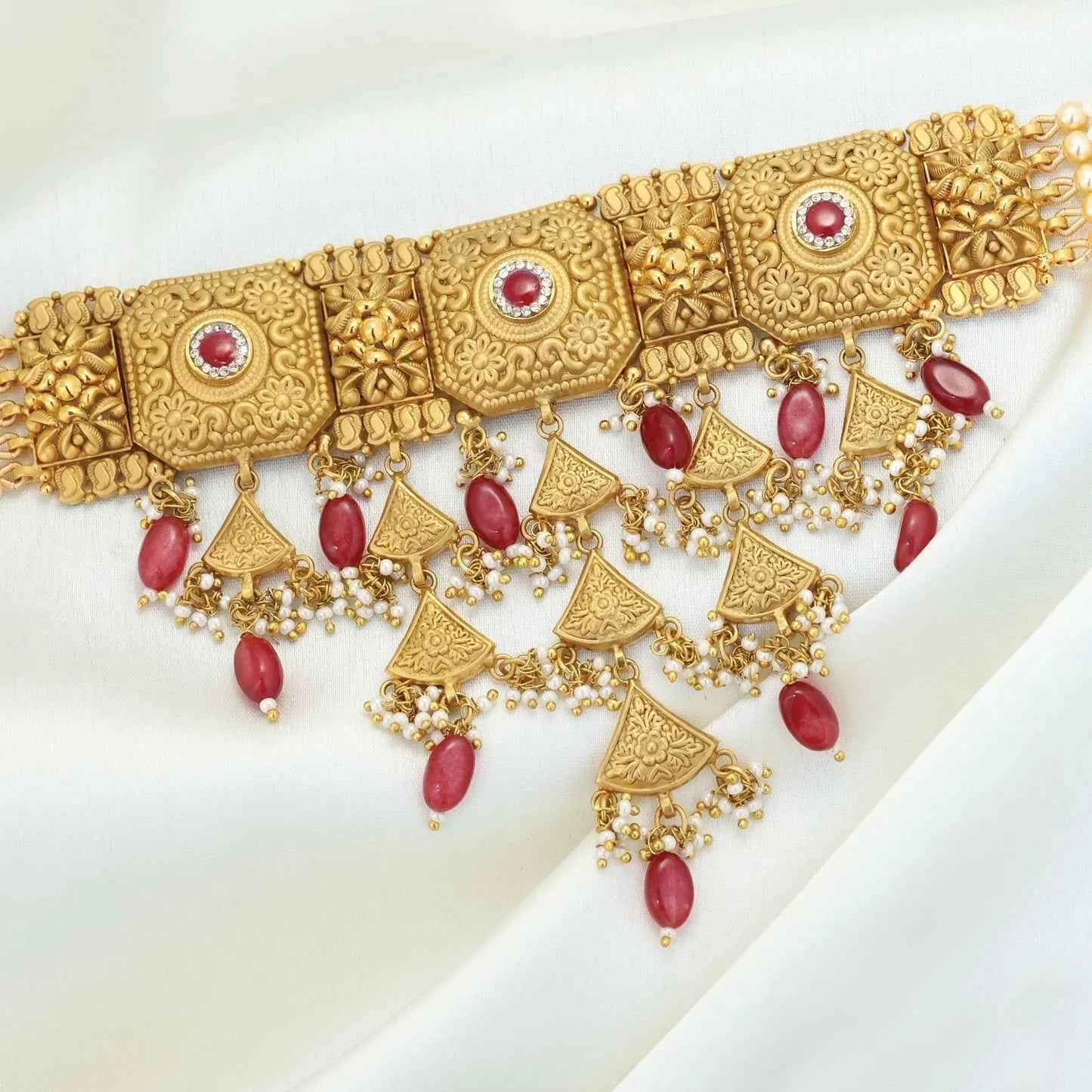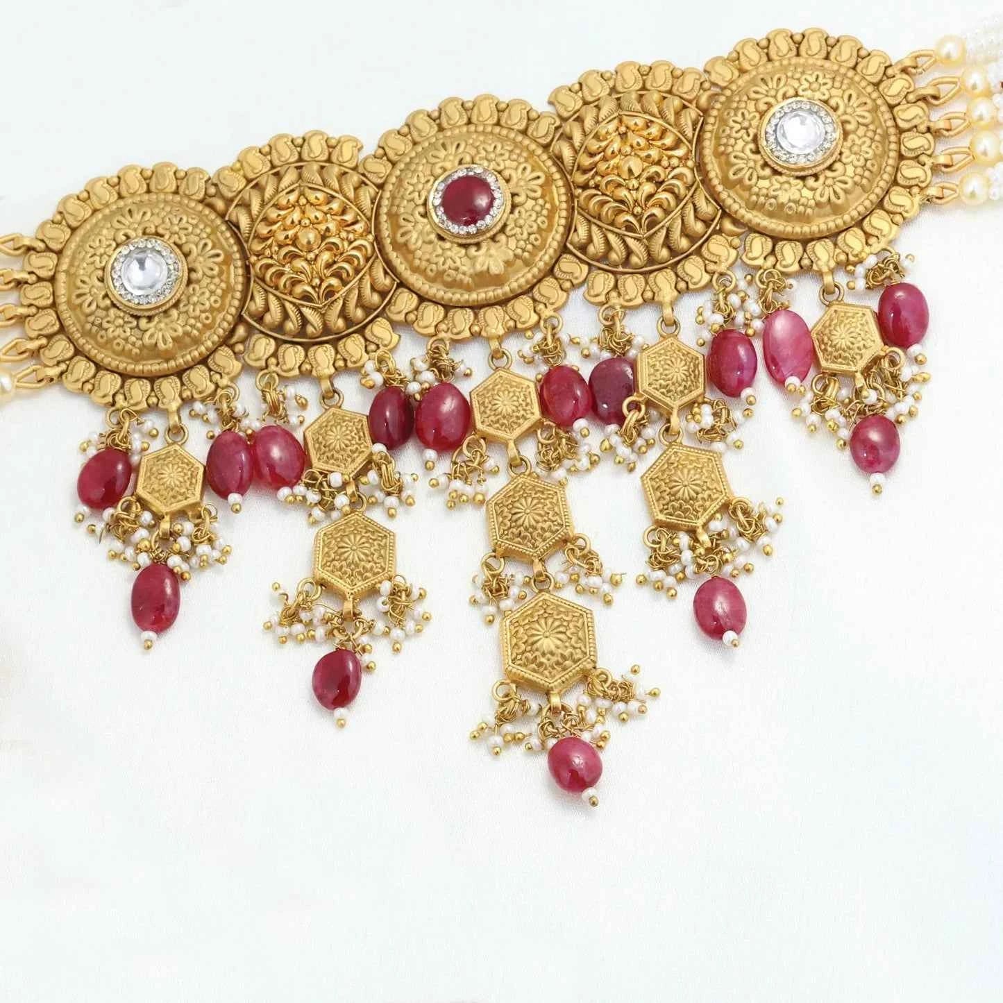 Add 24kt Gold Plated Beautiful Red Kundan Antique Short Set to the cart