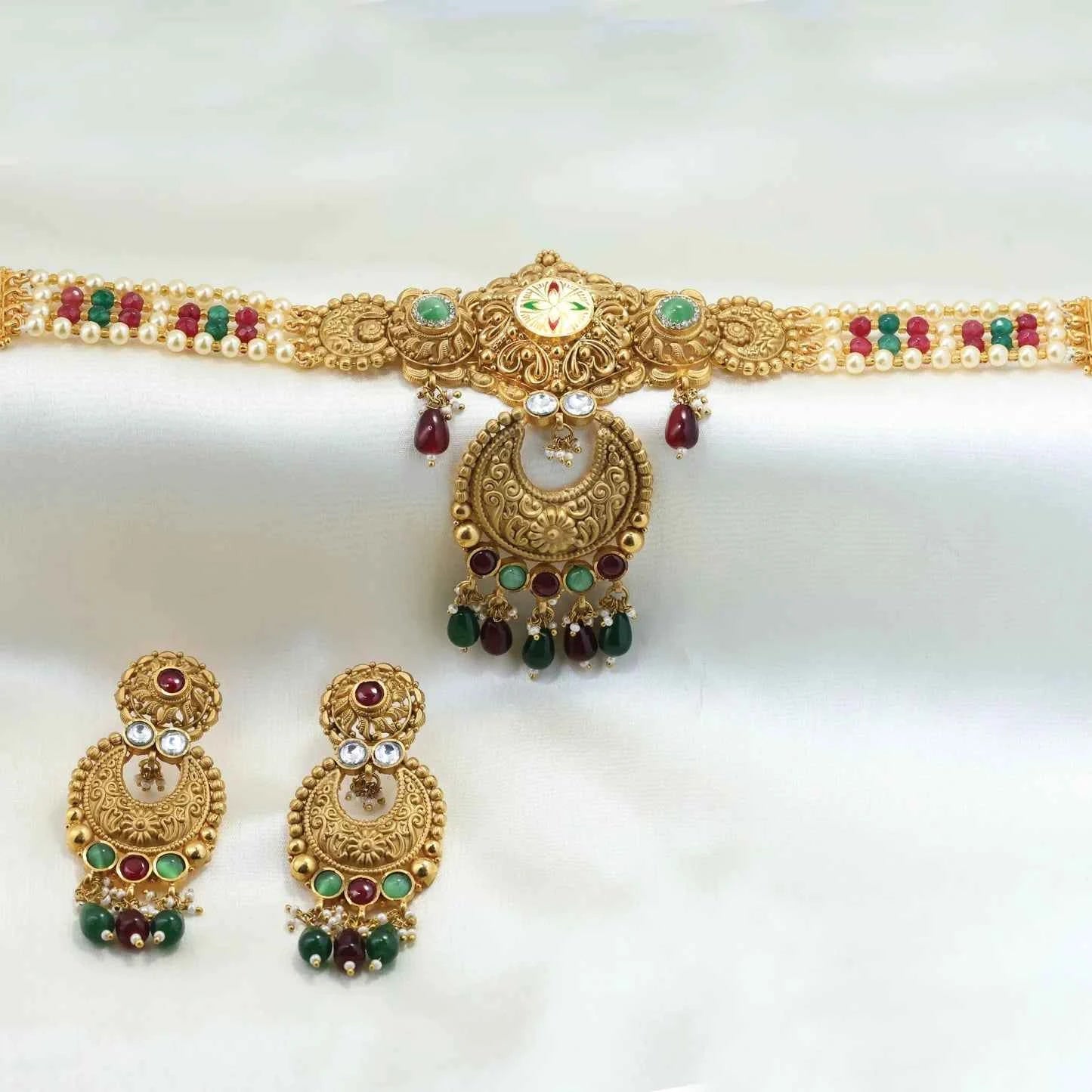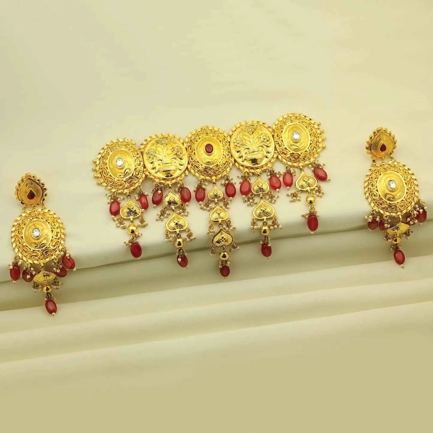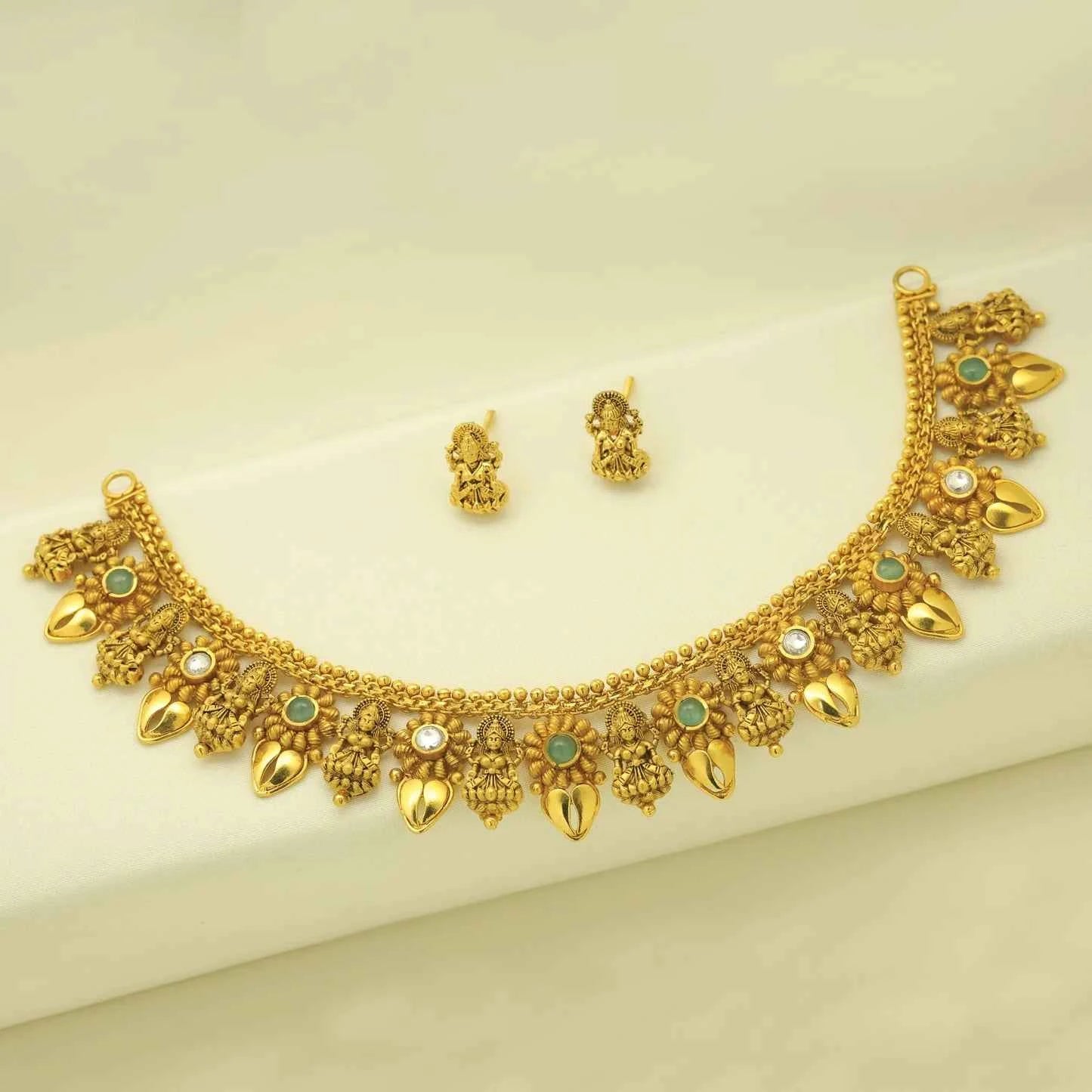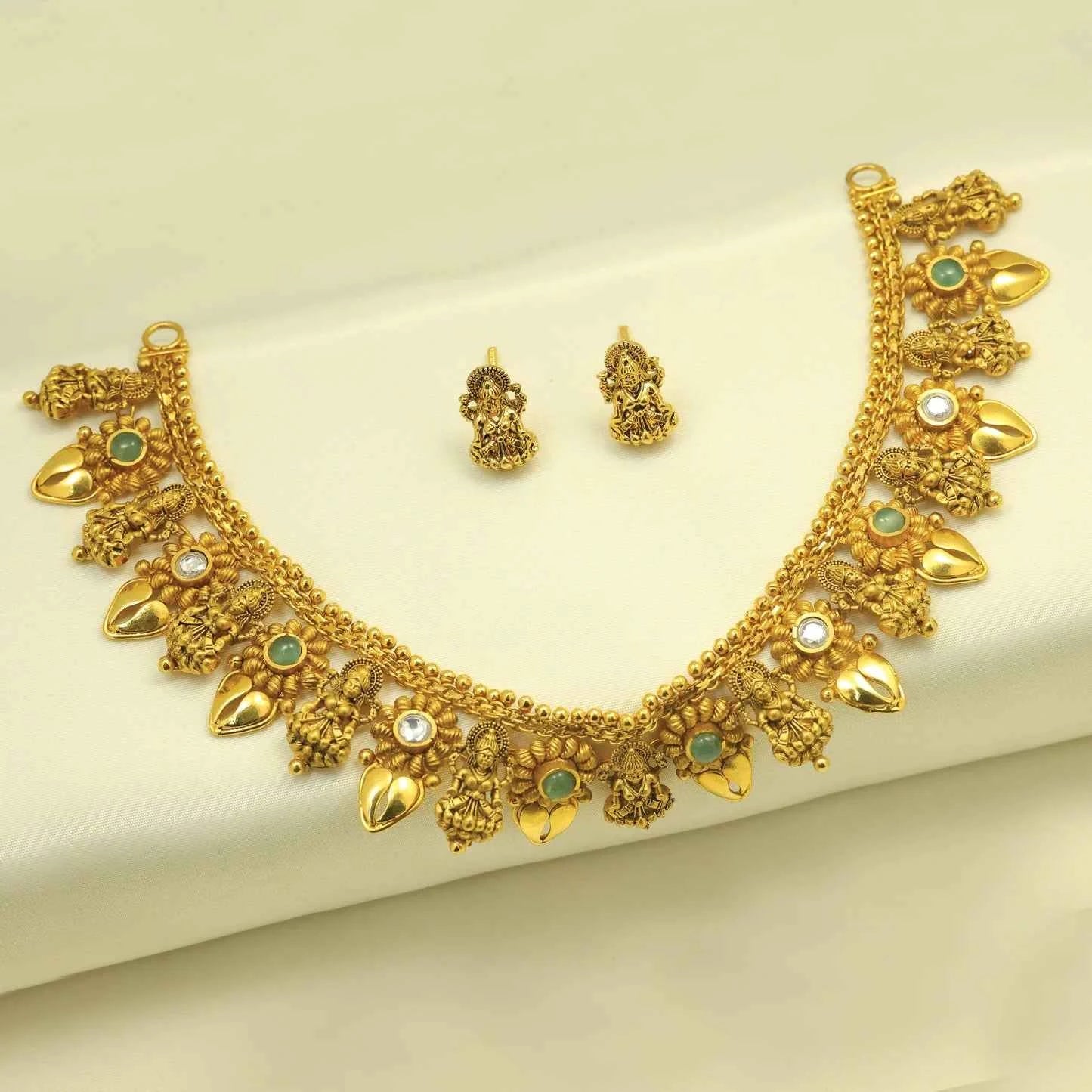 Add 24kt Gold Plated Traditional Temple Antique Short Set With Earings to the cart