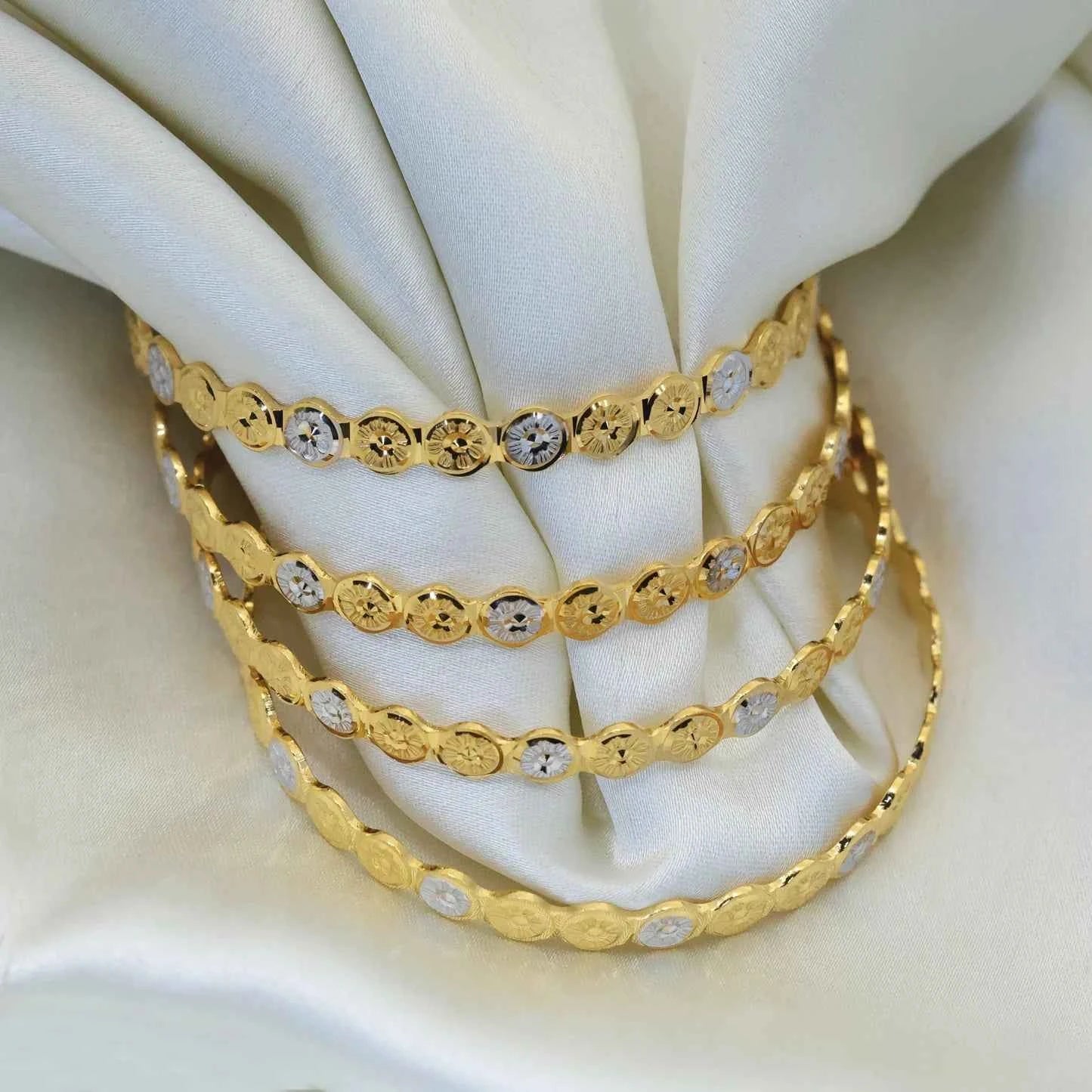24kt Gold Plated Round Design With Rhodium Polish Indian Traditional Bangles Set of 4pcs