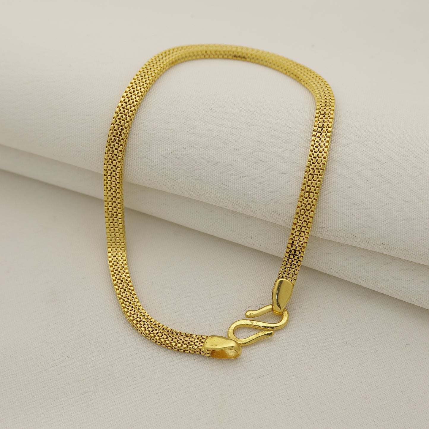 Add 24Kt Gold Plated Flat Box Chain Designer Bracelet for Men | Premium Golden Gents Bracelet to the cart