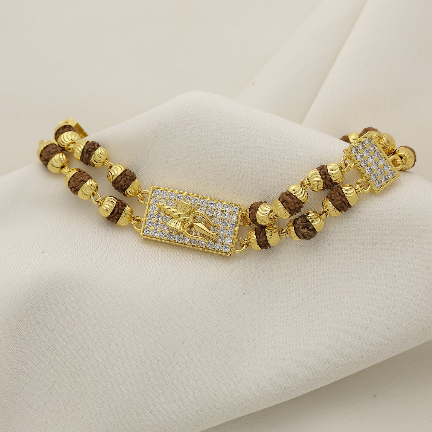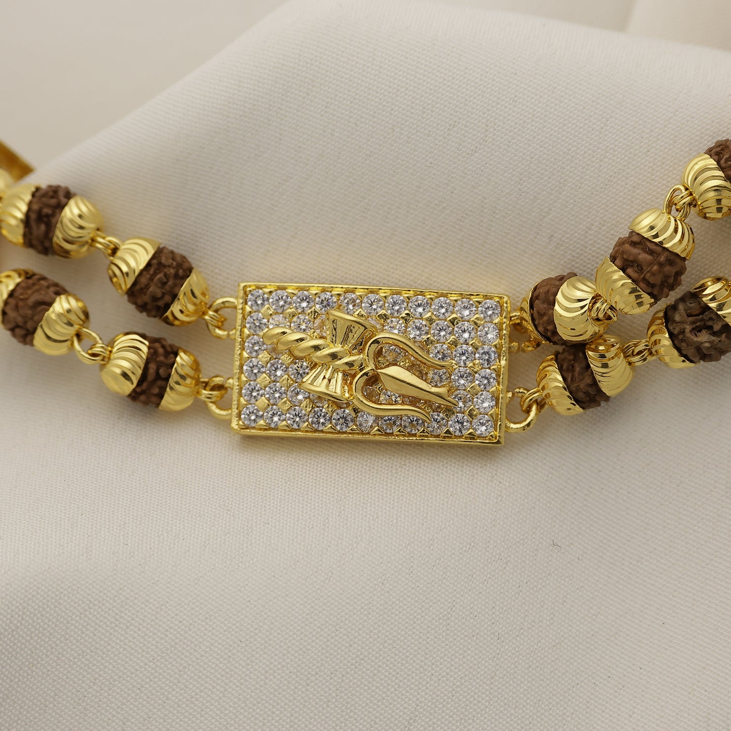 Add 24Kt Gold Plated Rudraksha Bracelet with American Diamond Trishul Design for Men to the cart