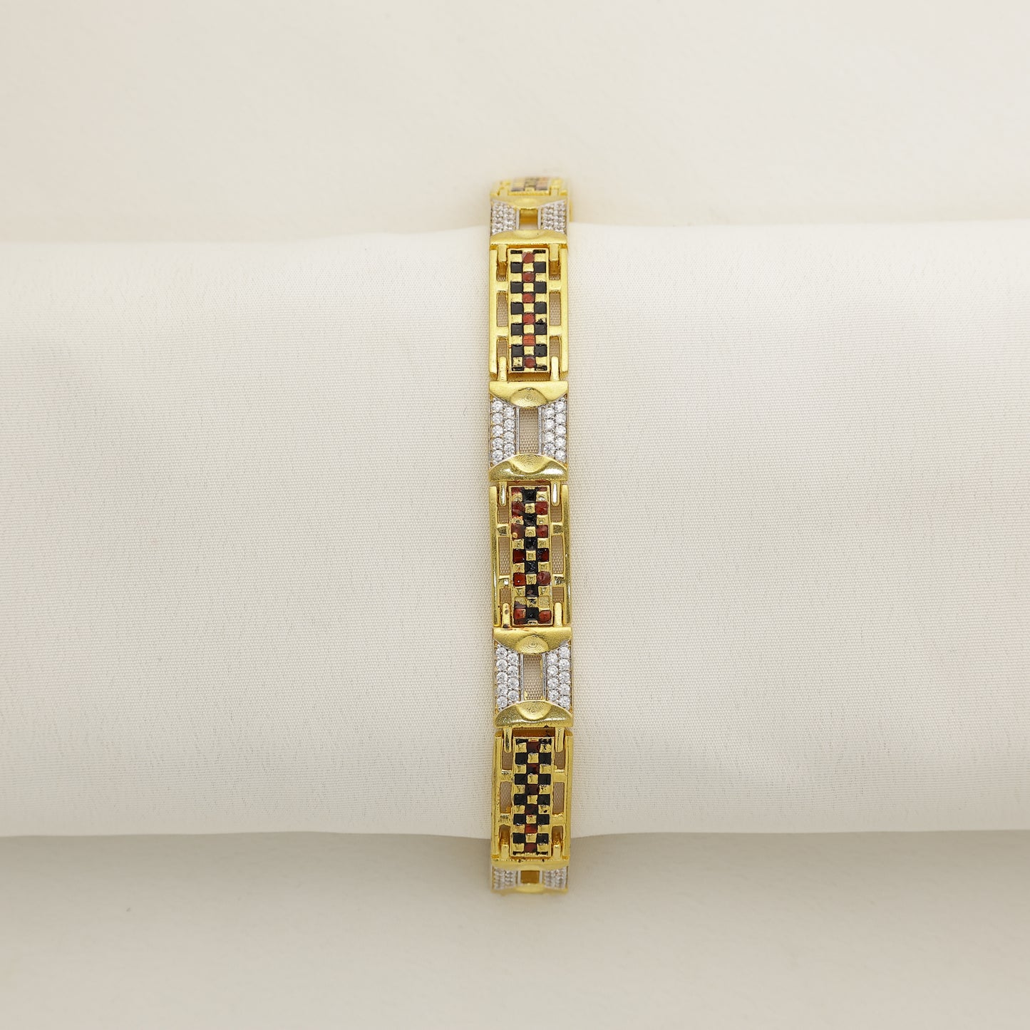 Add 24Kt Gold Plated American Diamond Designer Gents Bracelet for Men | Premium Checkered Pattern Bracelet to the cart
