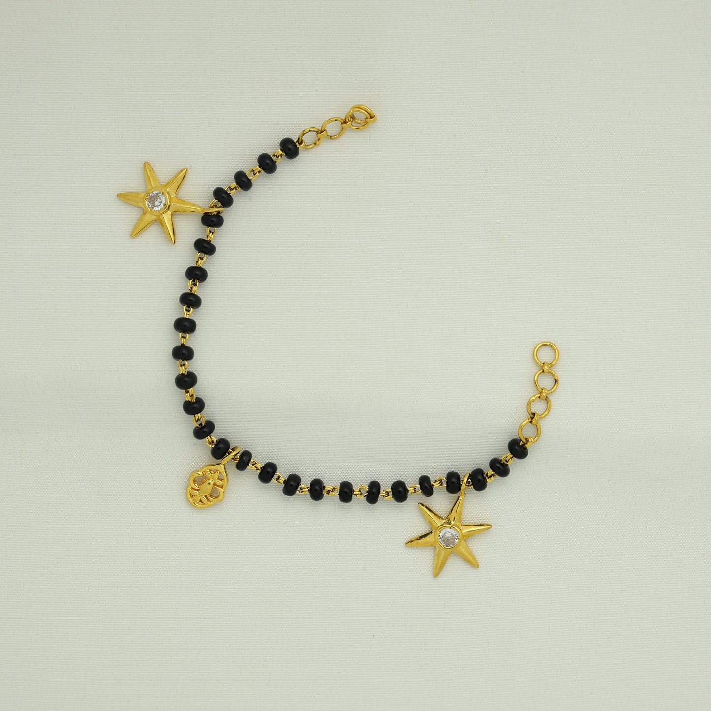 Add 24Kt Gold Plated Black Bead Star Charm Ladies Bracelet to the cart