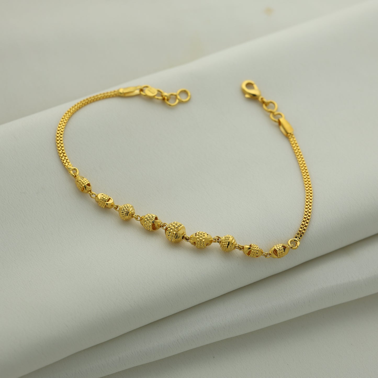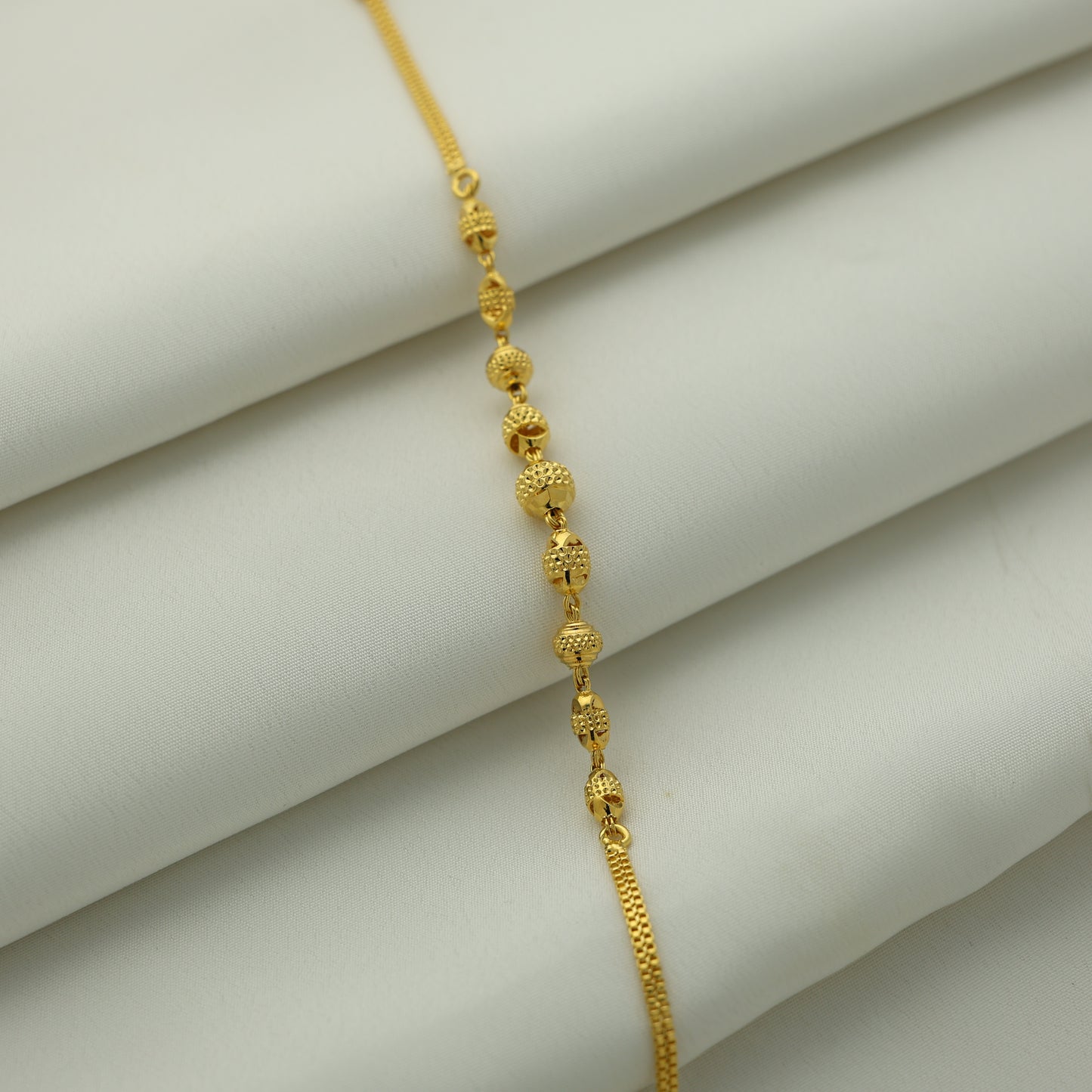 Add 24Kt Gold Plated Textured Bead Chain Ladies Bracelet to the cart