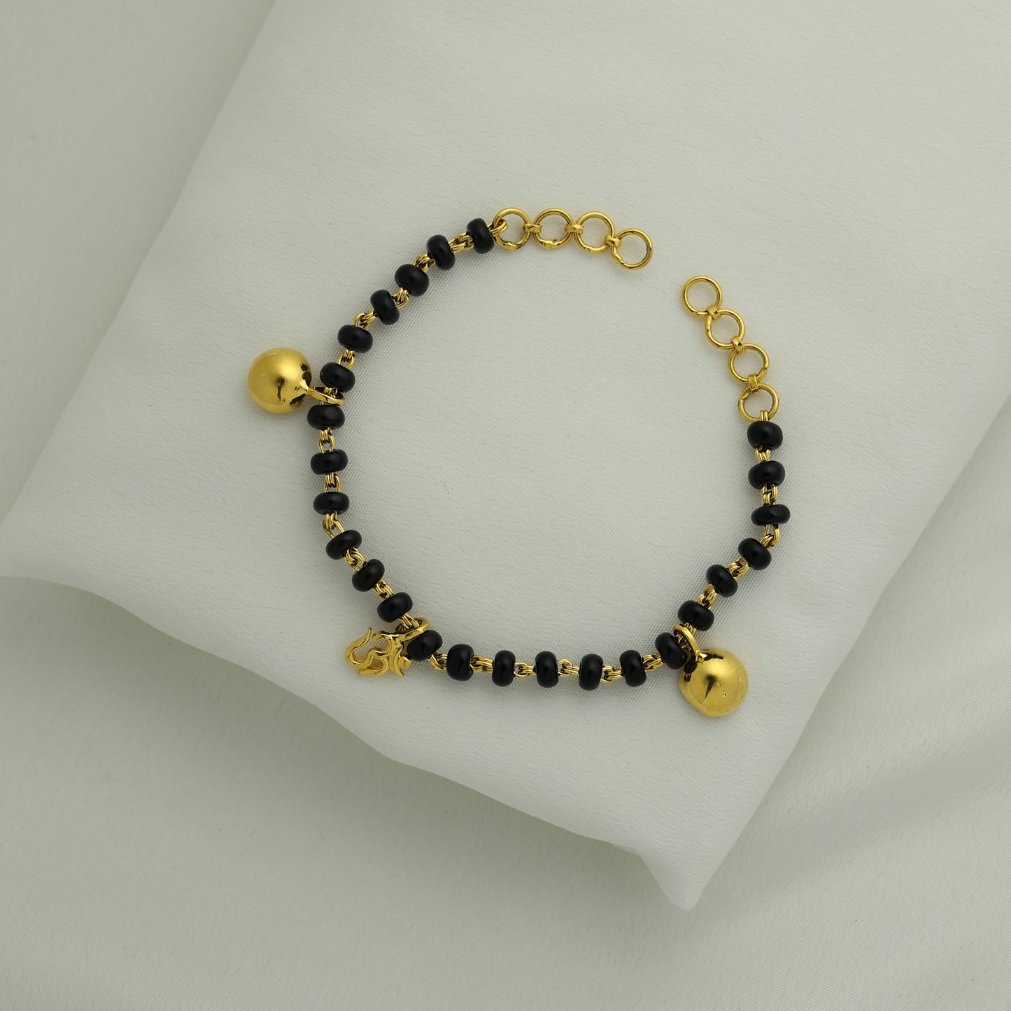 Add 24Kt Gold Plated Black Bead Om Charm Ladies Bracelet to the cart