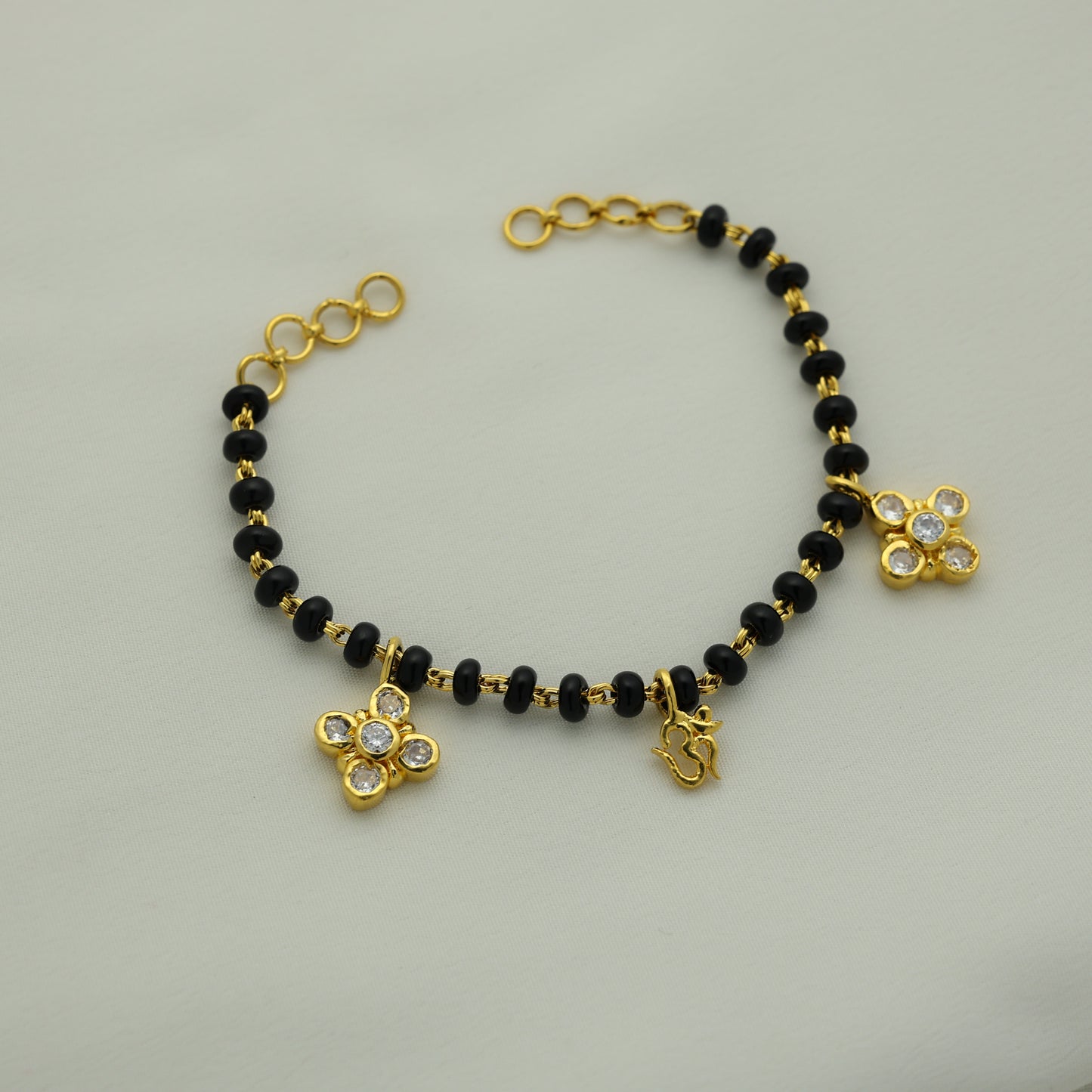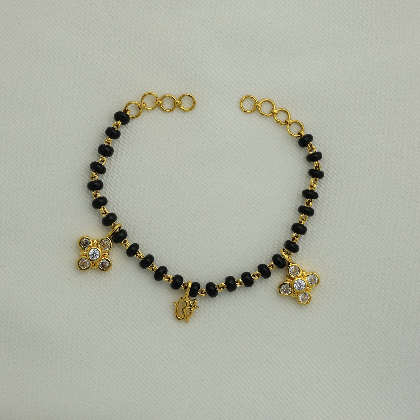 Add 24Kt Gold Plated Black Bead Floral Om Ladies Bracelet to the cart