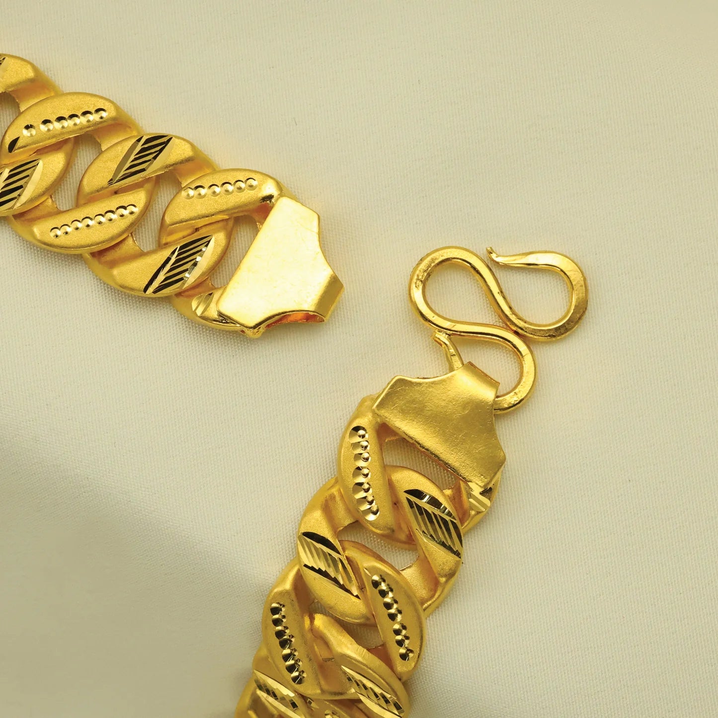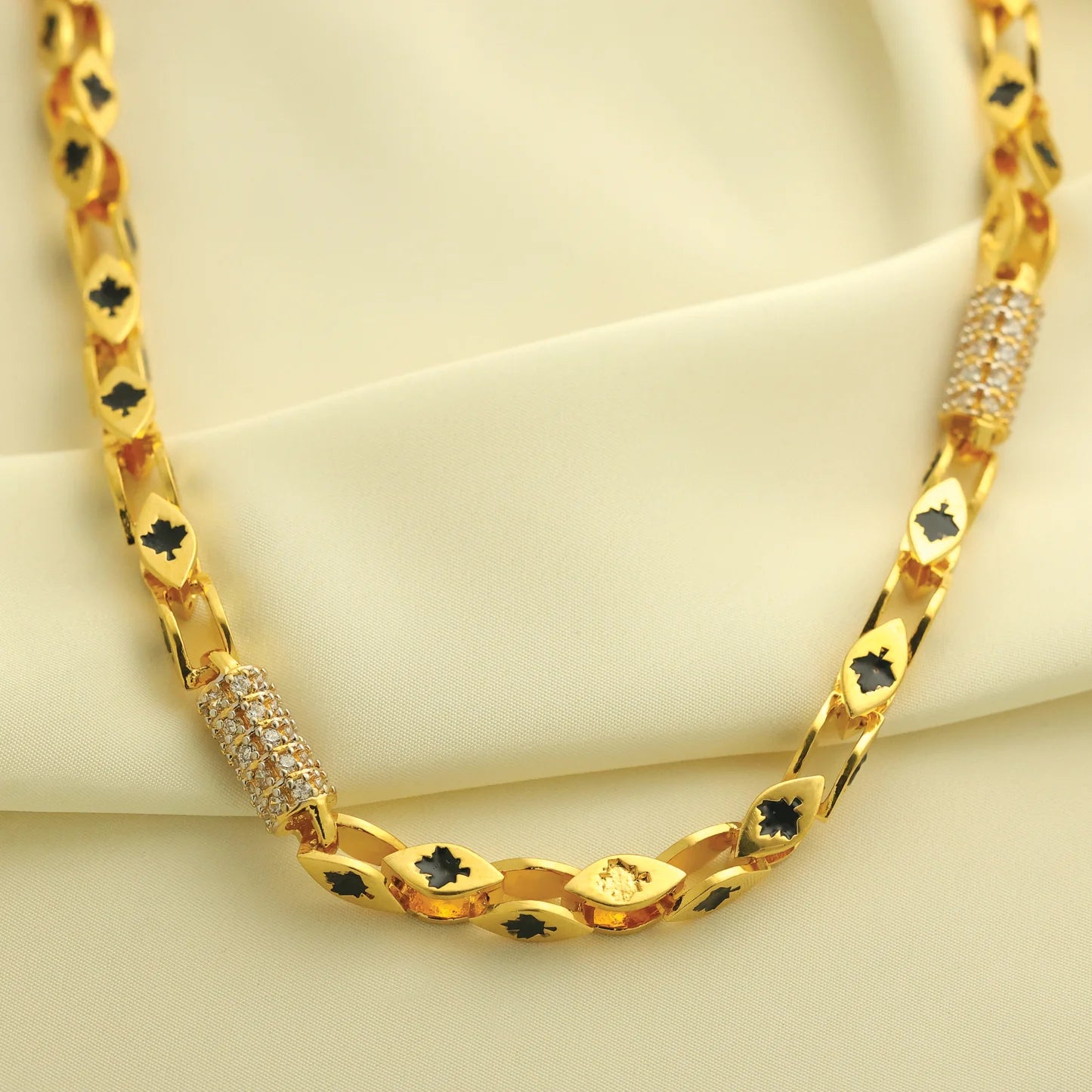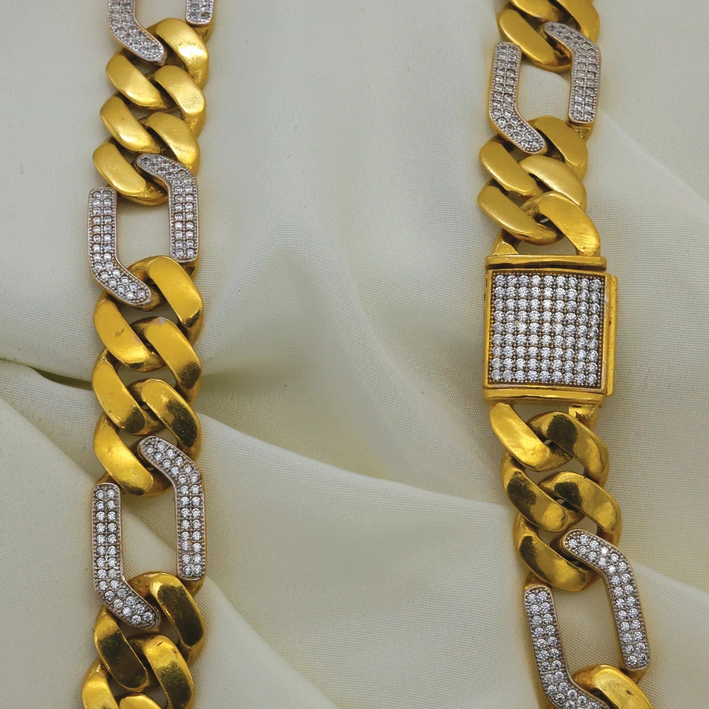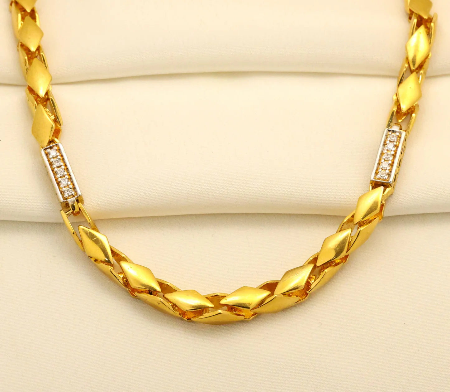 Add 24kt Gold Plated Unique Design Diamond Look Solid Gents Chain to the cart