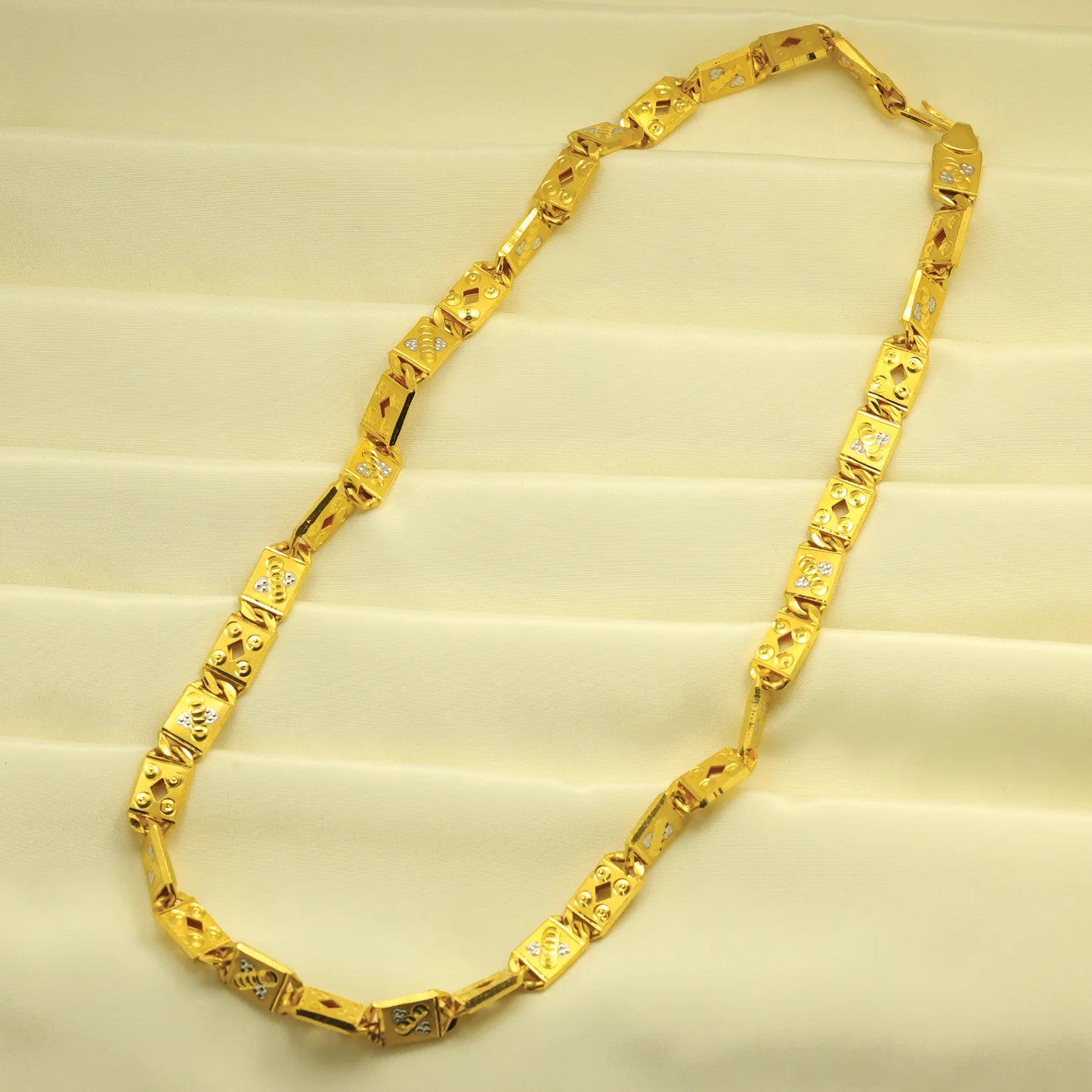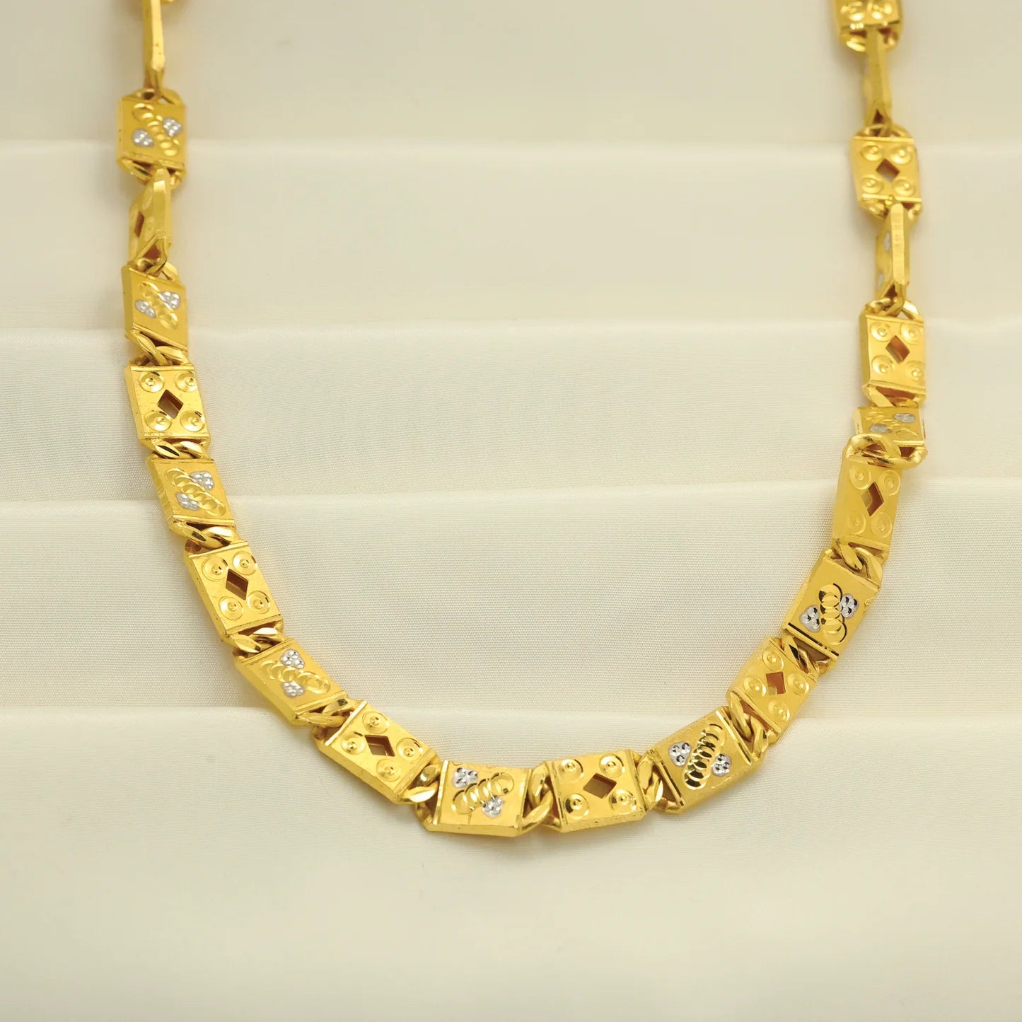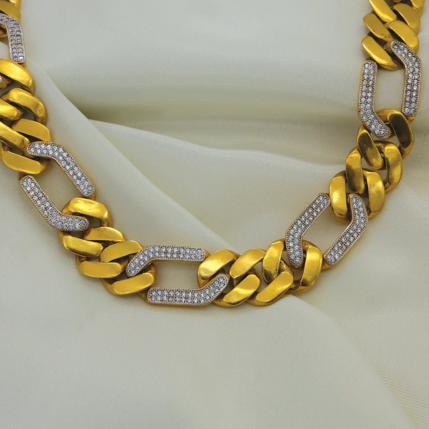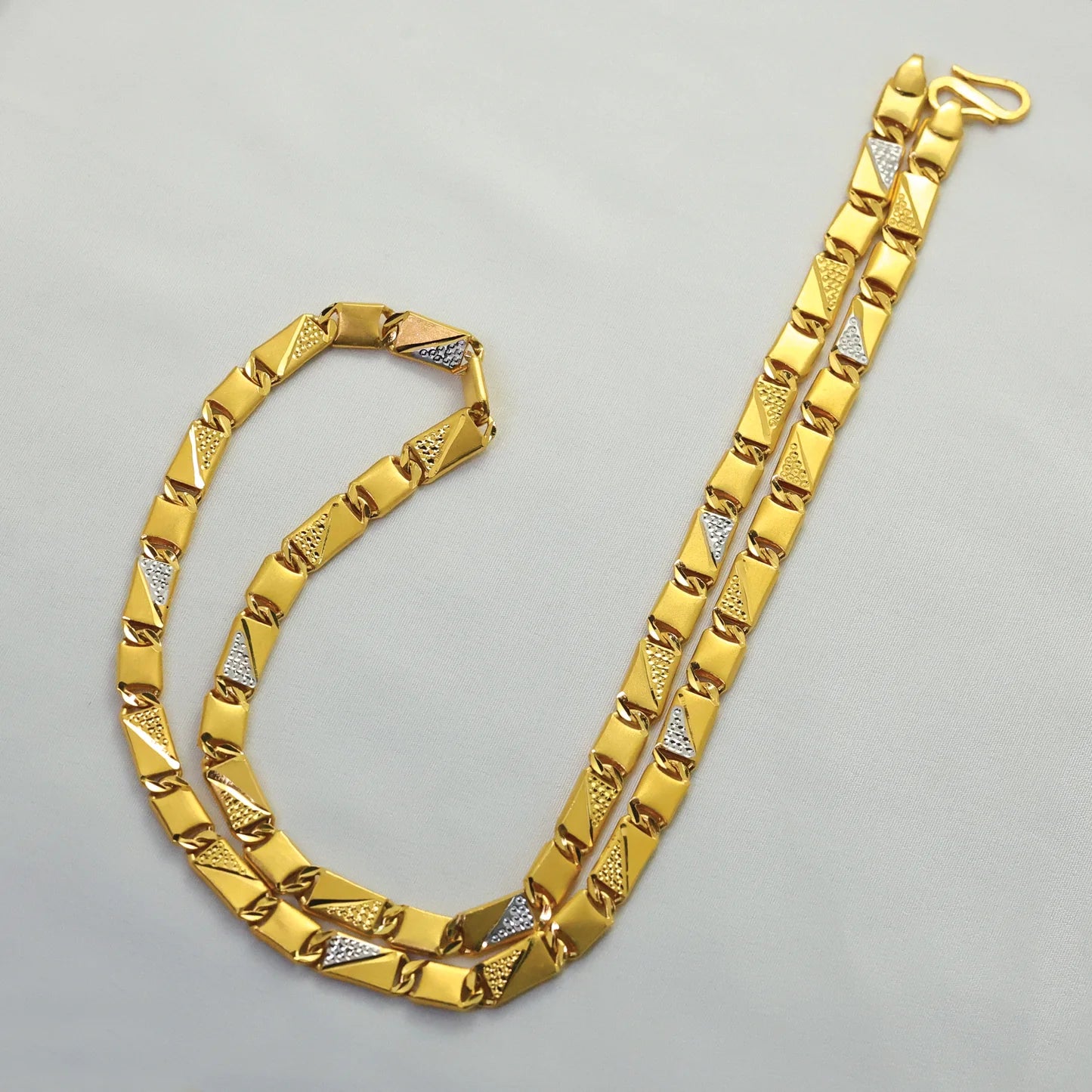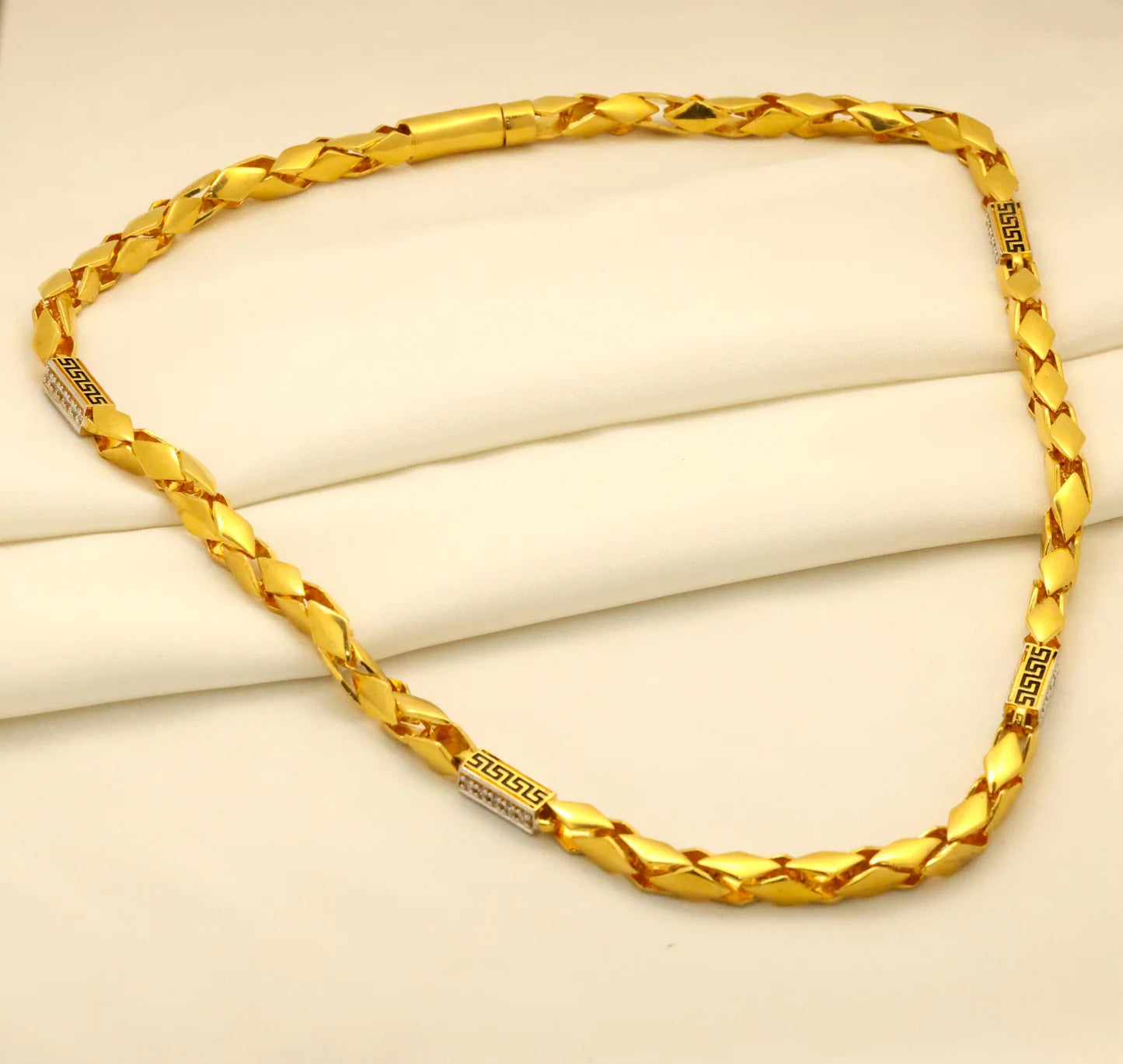 Add 24kt Gold Plated Unique Design Diamond Look Solid Gents Chain to the cart