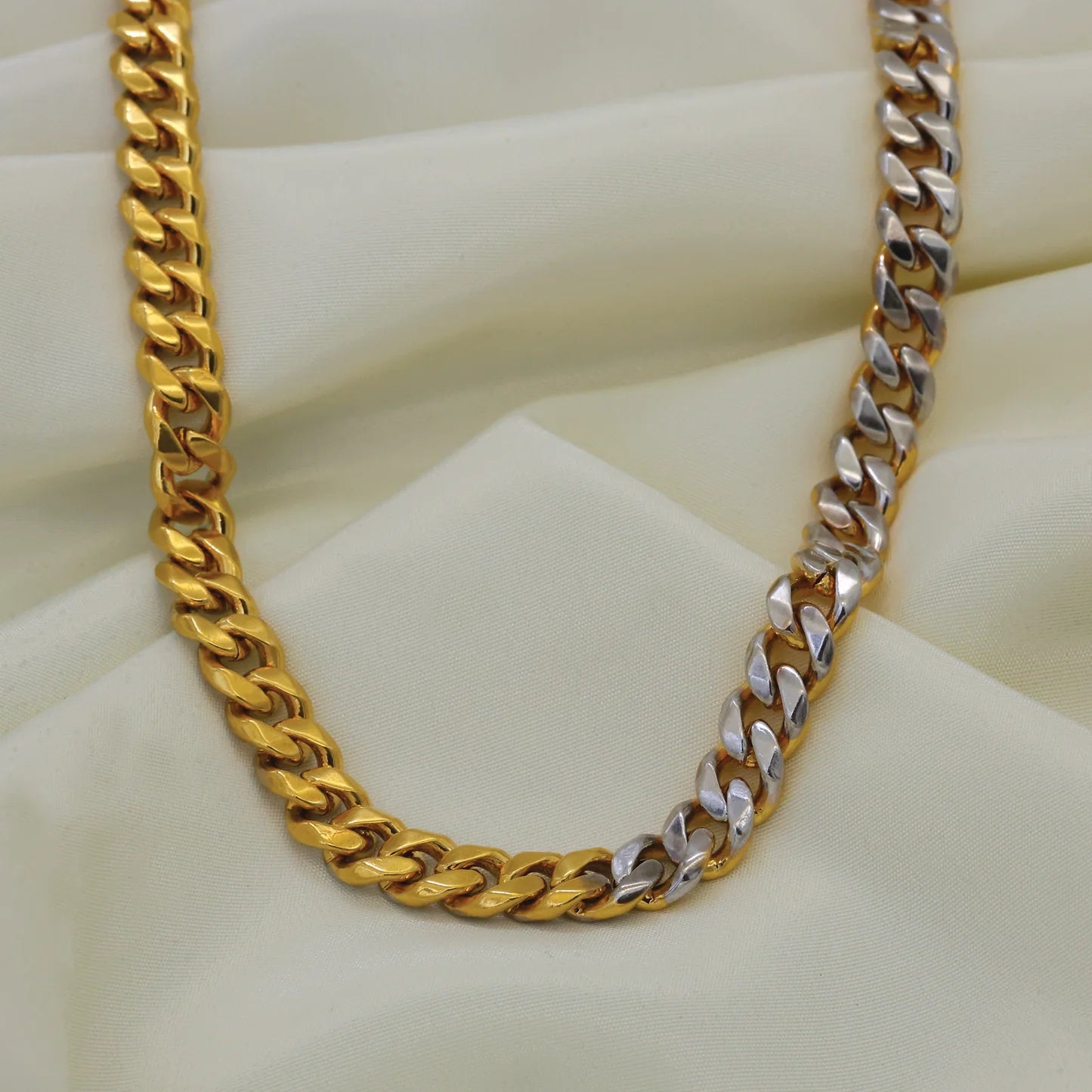 Add 24kt Gold Plated Unique Design Half Rhodium Polish Gents Chain to the cart
