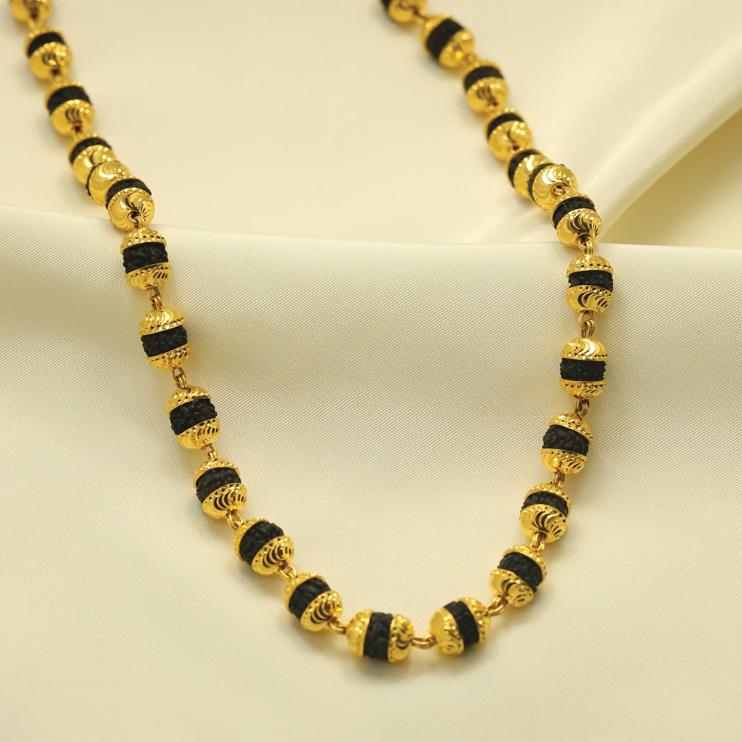 • Premium 24Kt Gold Plated gents mala designed with a rich Rudraksha-inspired pattern for a powerful traditional look