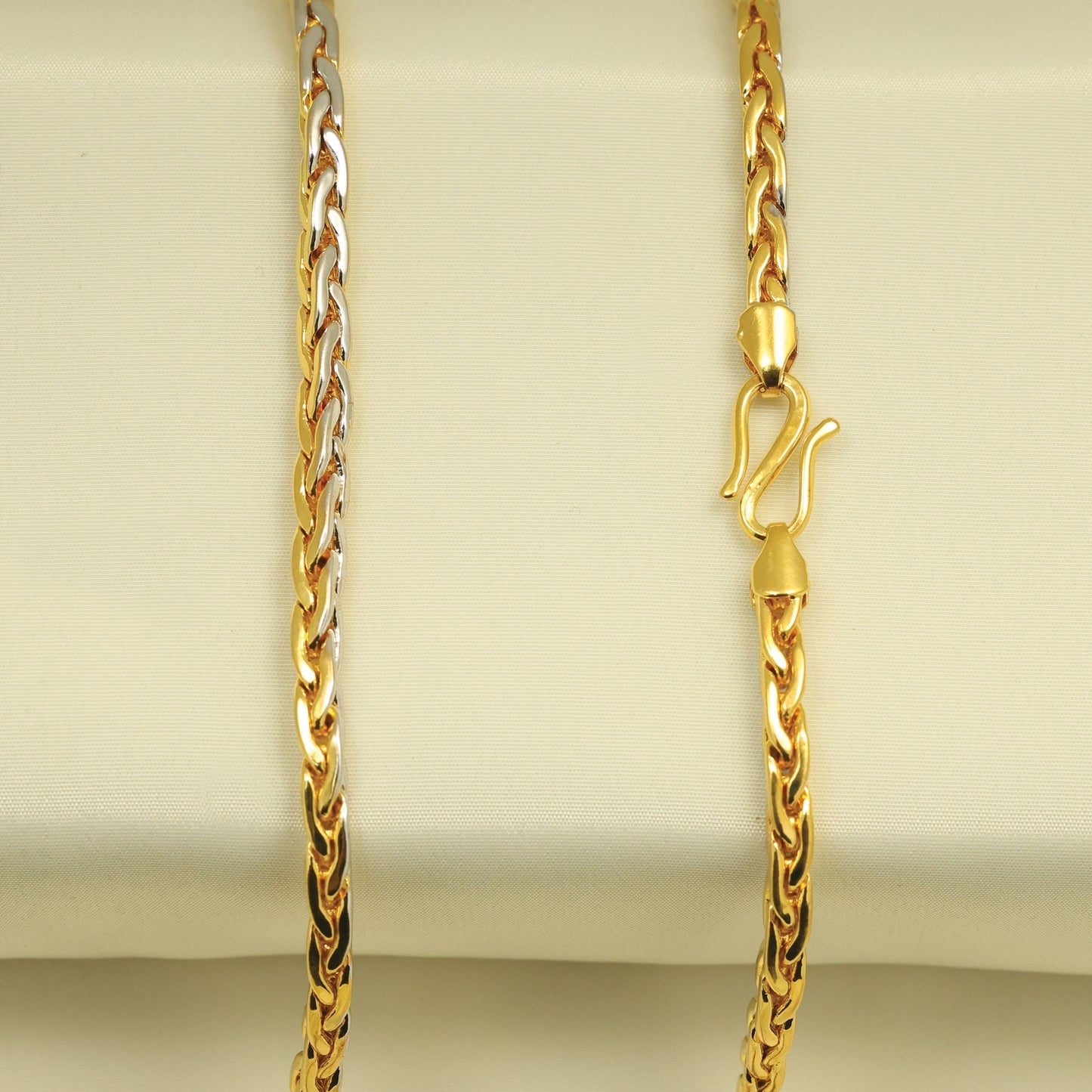 • Premium 24Kt Gold Plated gents chain crafted with a unique half rhodium polish design for a stylish dual-tone effect