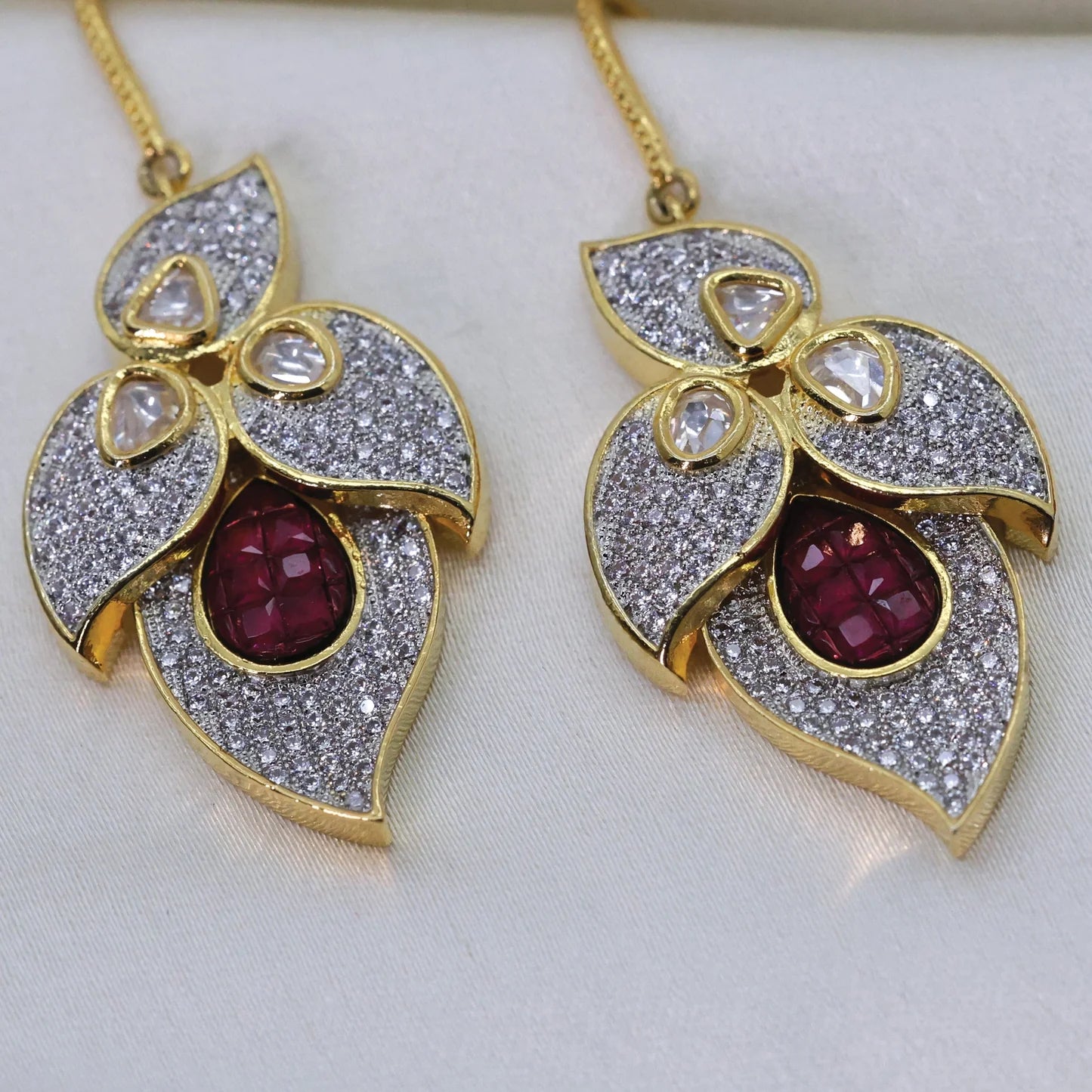 24Kt Gold Plated Ruby White Sparkling Flower Leaf Design Earring