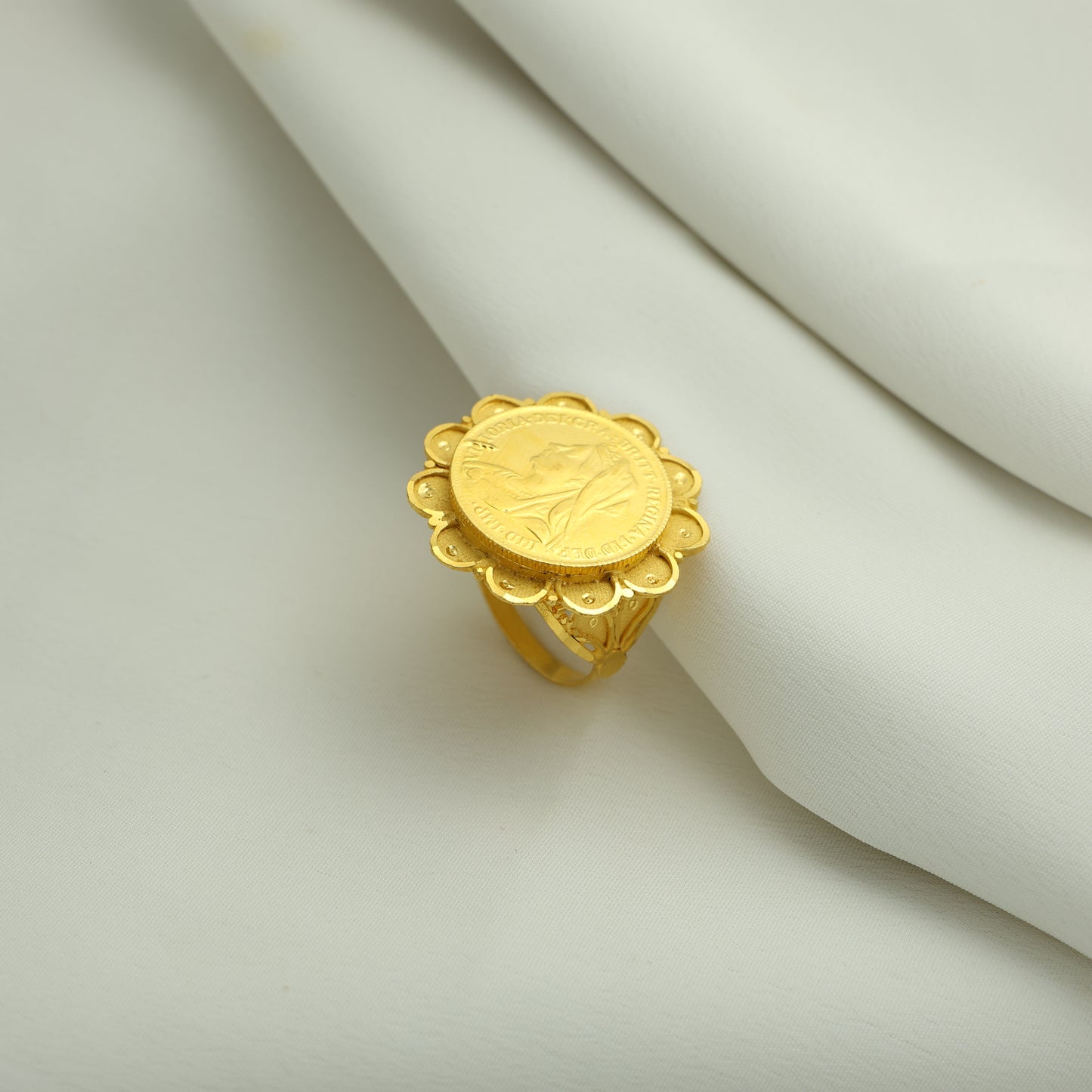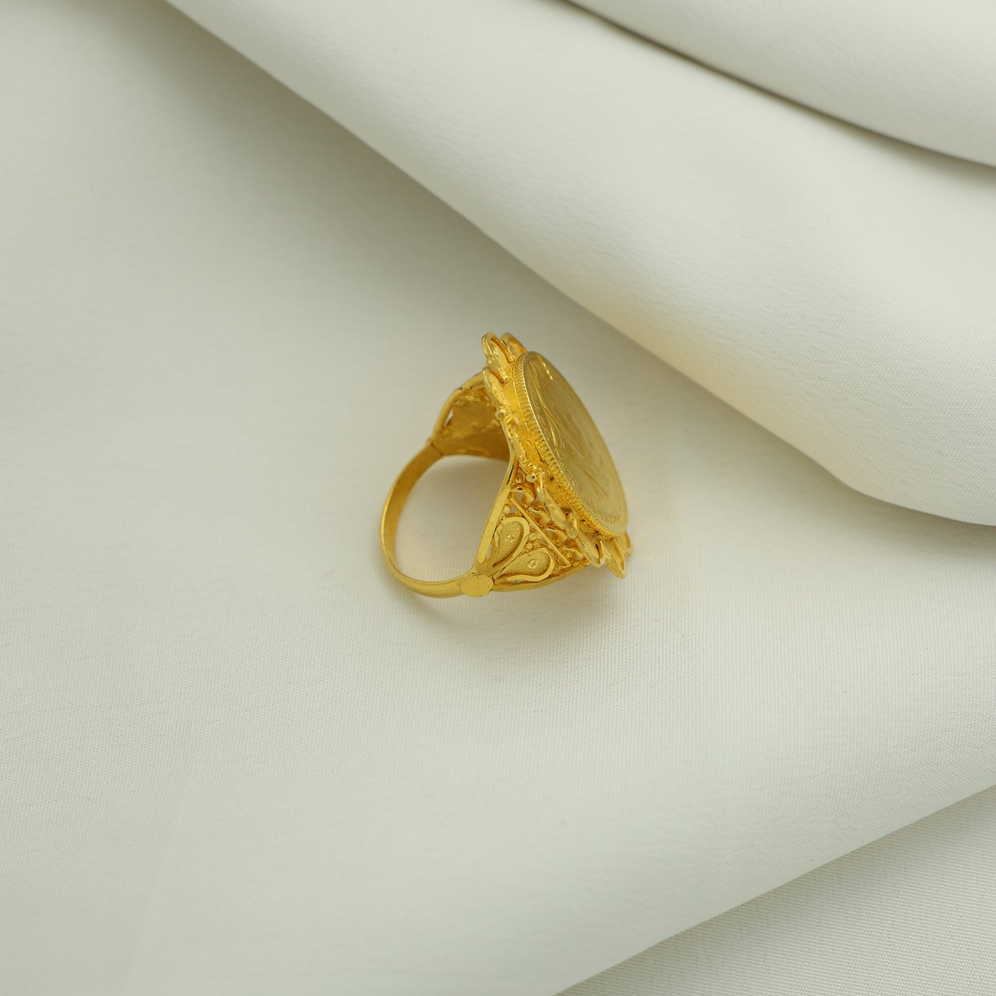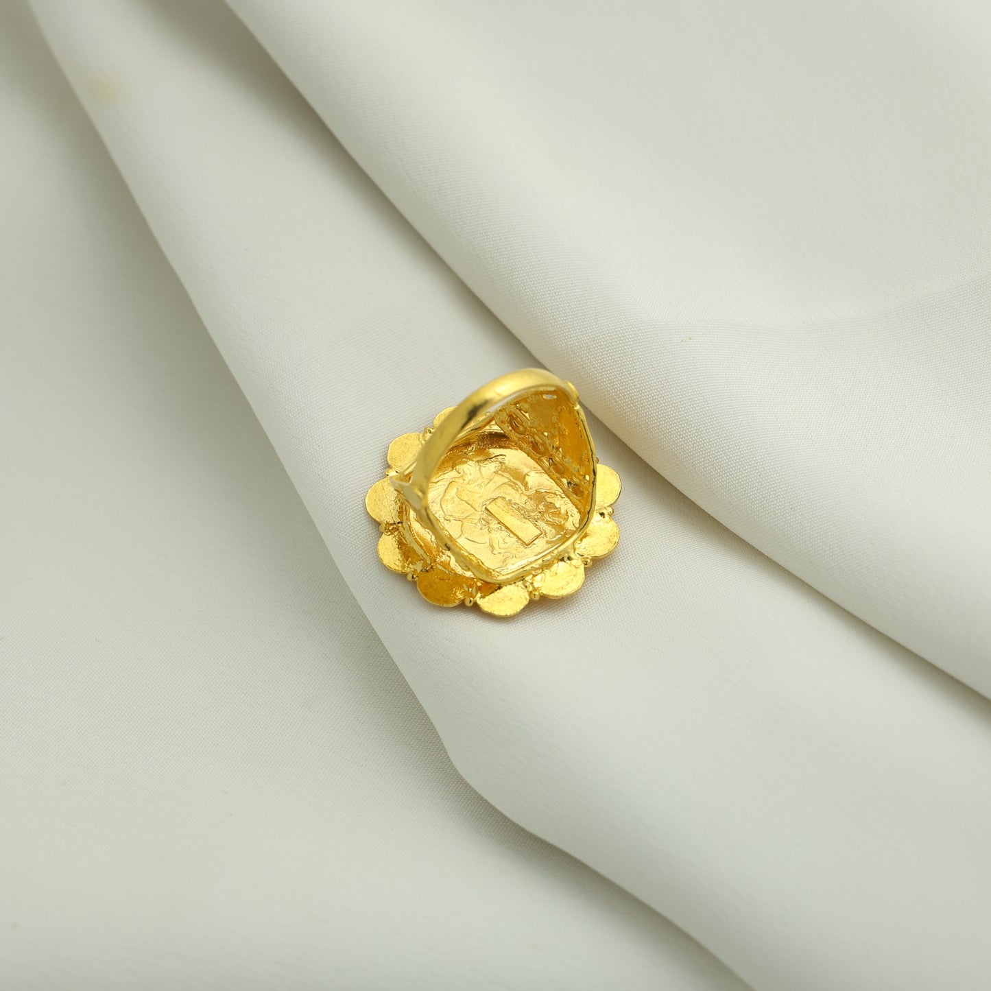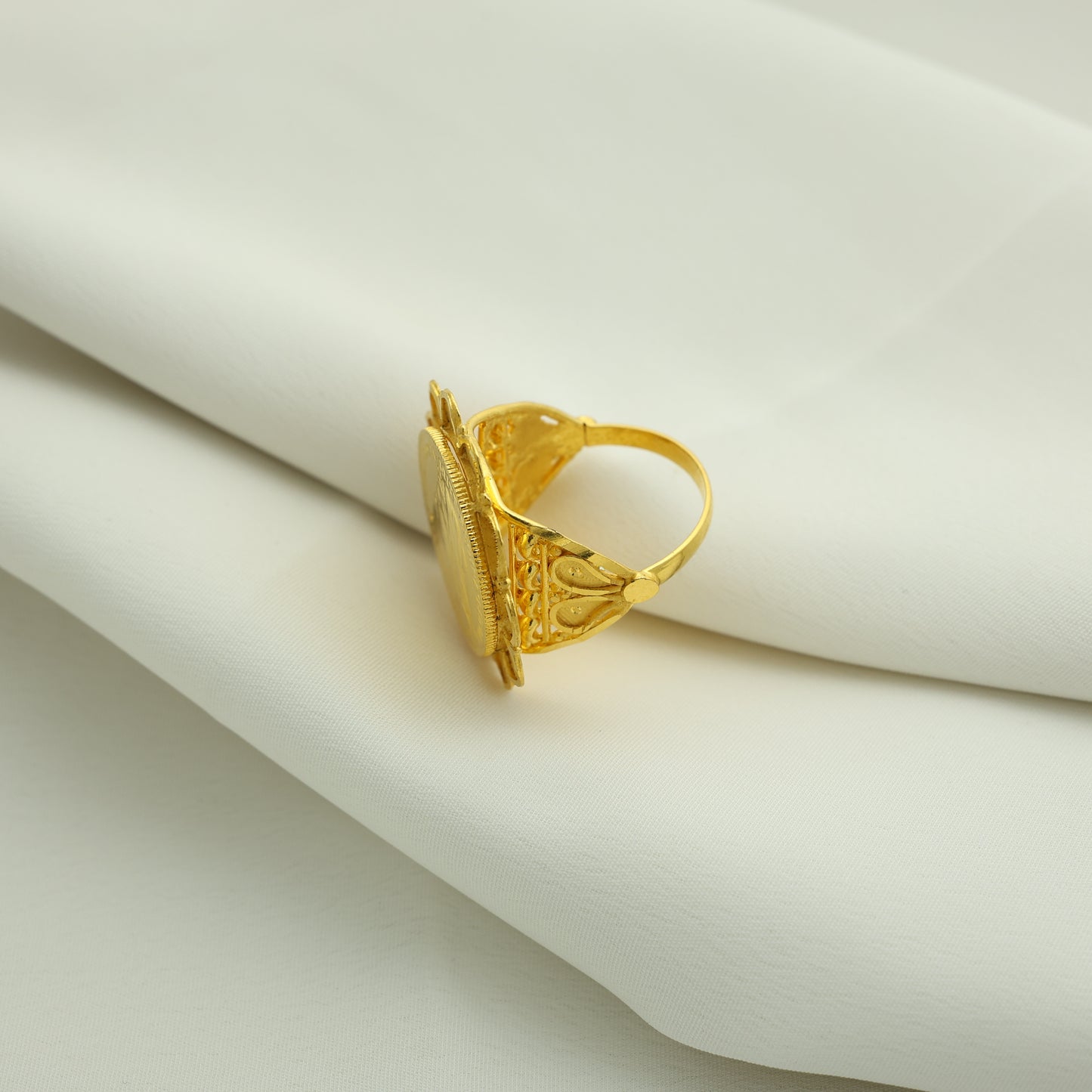 24Kt Gold Plated Classic Ginni Coin Ladies Ring – Traditional Floral Style