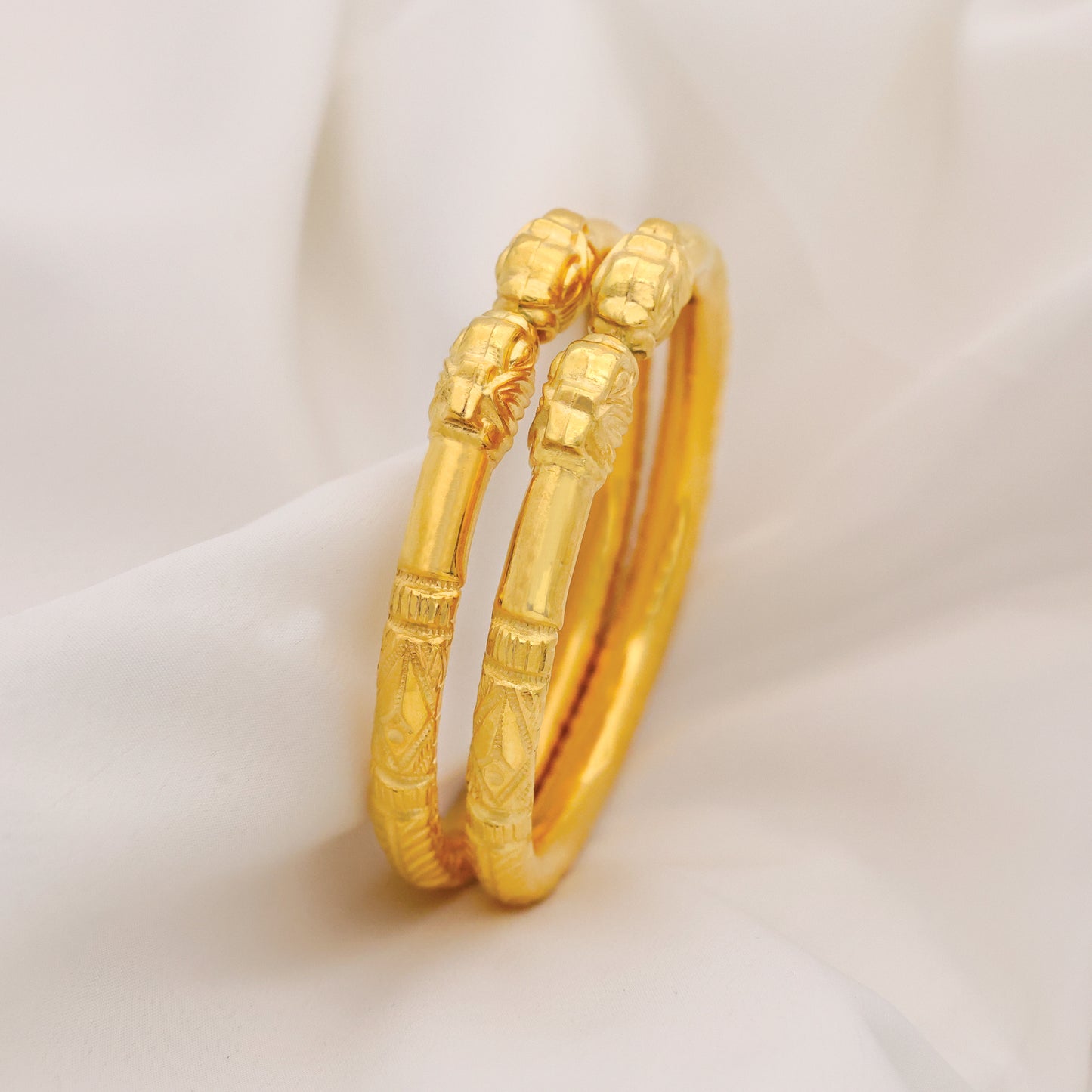 Add 24kt Gold Plated Tiger Face Kada Style Bangles Set of 2pcs to the cart