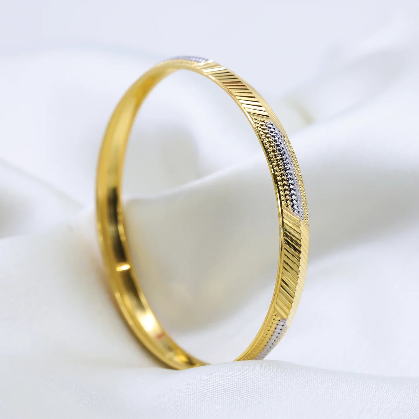 24Kt Gold Plated Fancy Design Gents Kada With Rhodium Polish