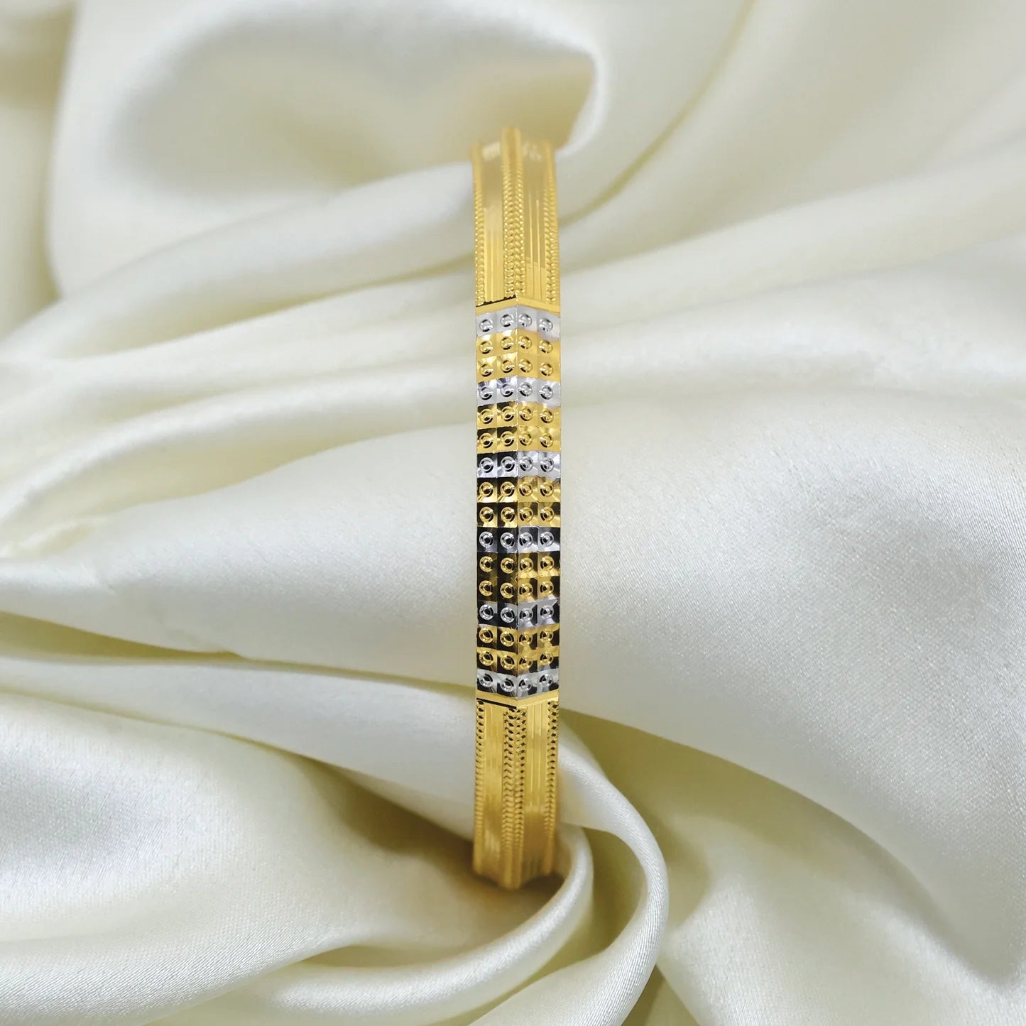 Stylish 24Kt Gold Plated Gents Kada crafted with a modern line & dot design for a clean yet eye-catching look
