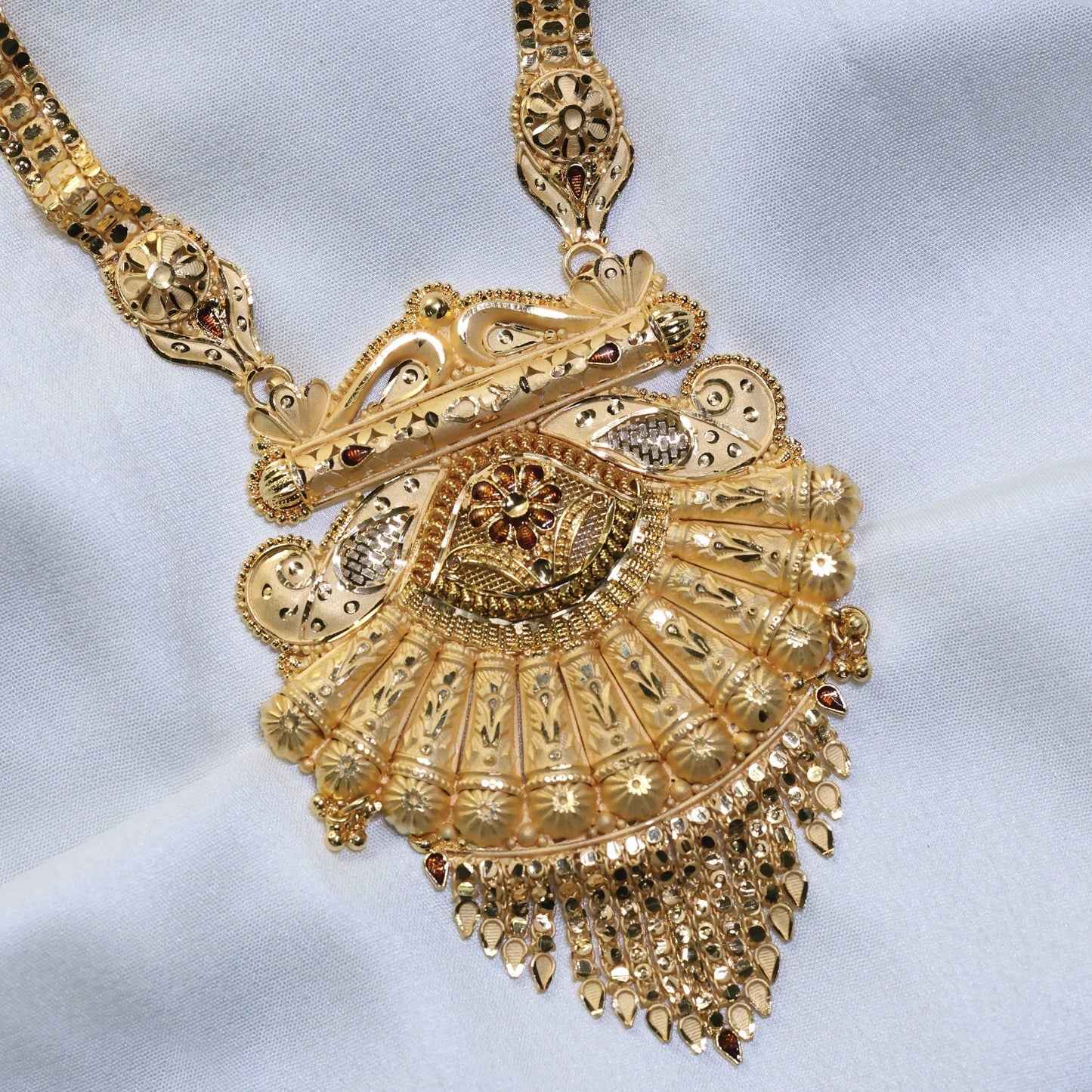 • Elegant long necklace design for a graceful traditional look