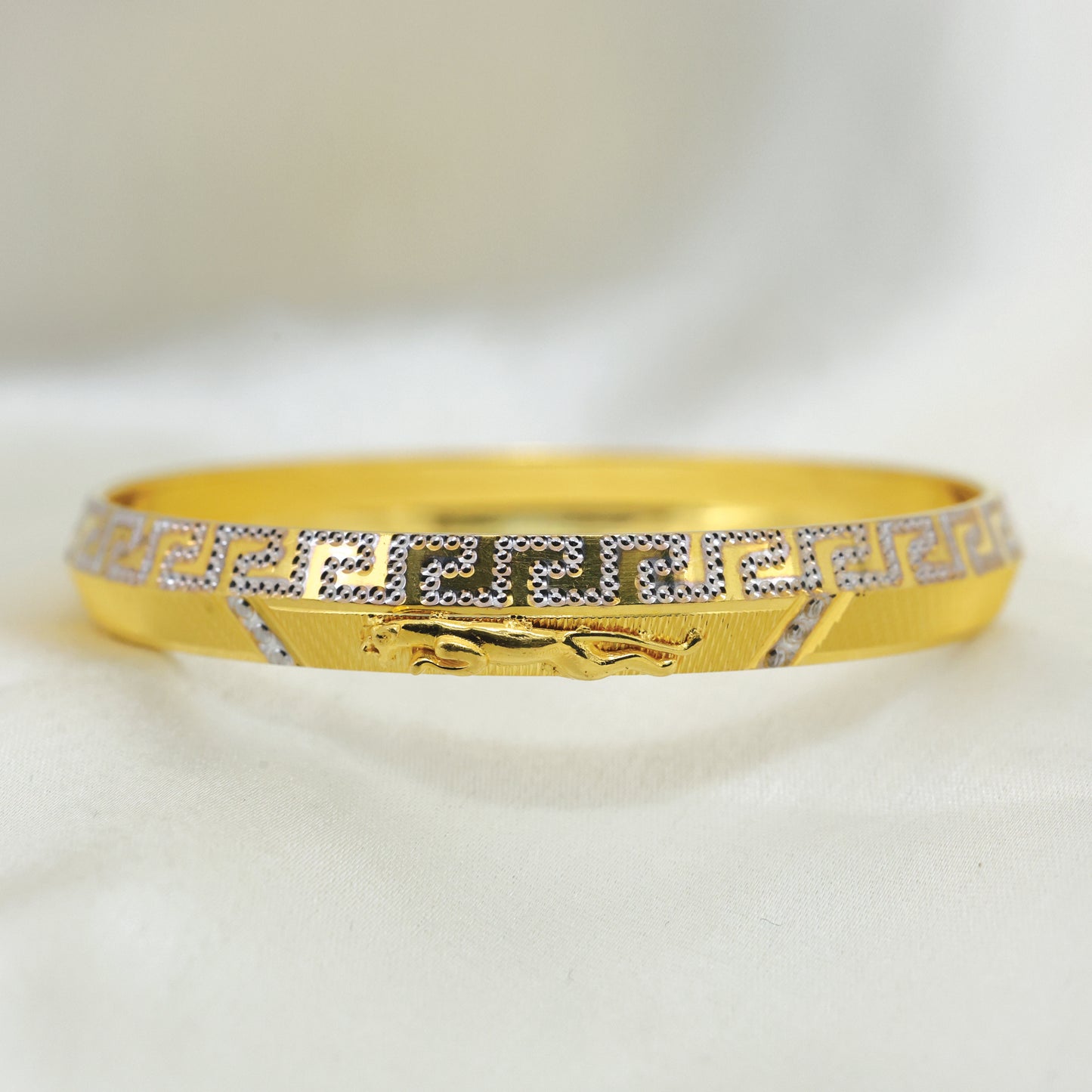 Add 24Kt Gold Plated Jaguar Gents Kada with Rhodium Polish Design to the cart