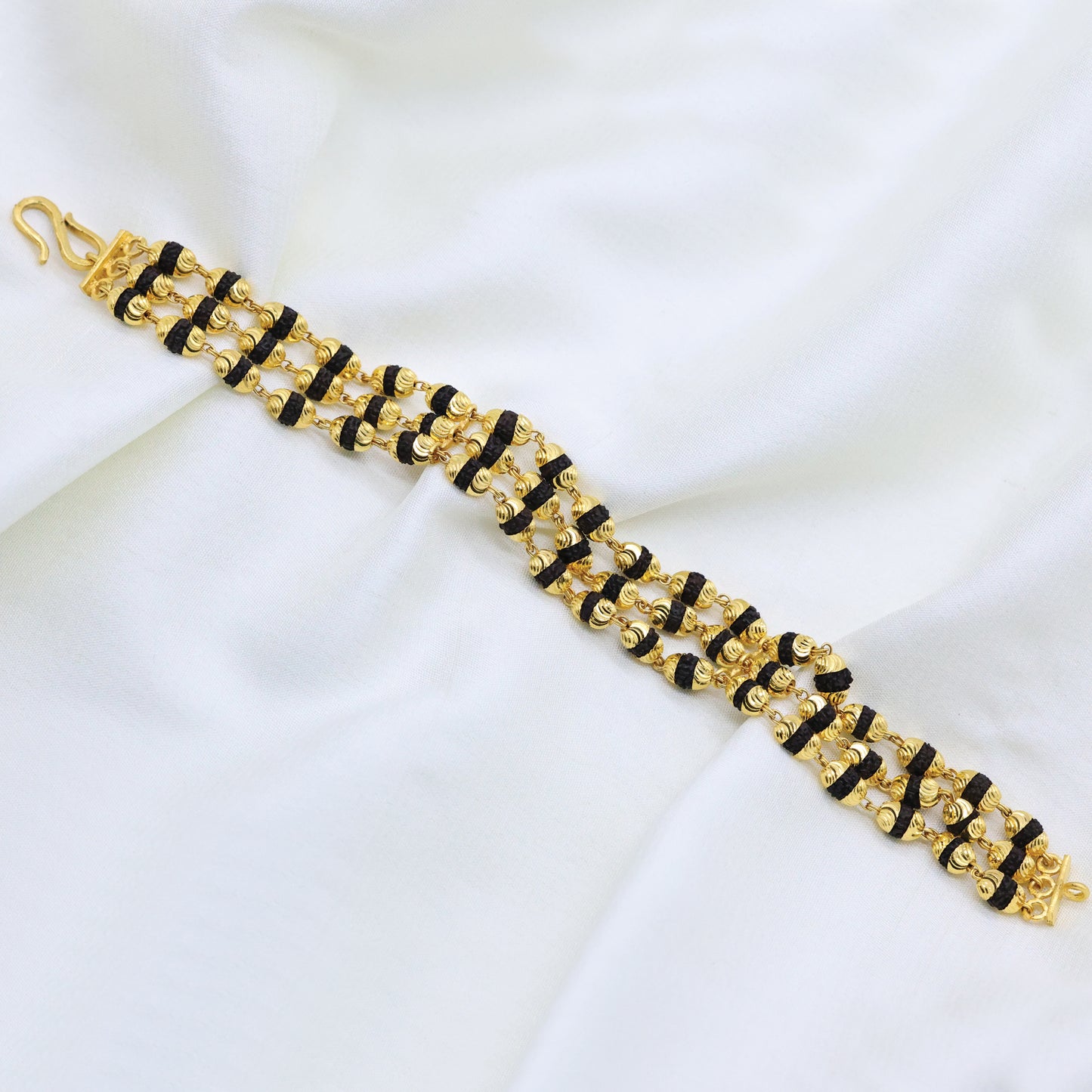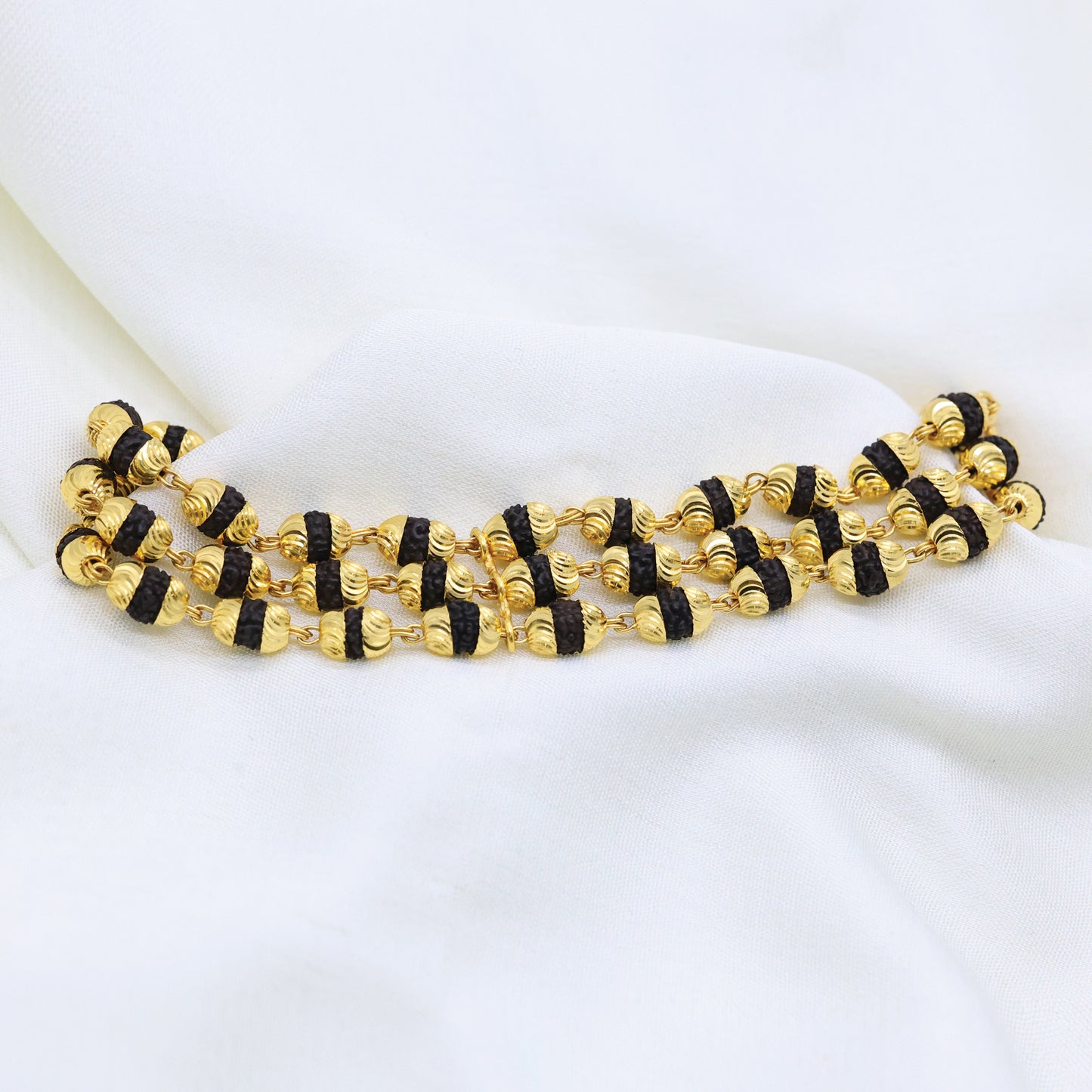 Add 24Kt Gold Plated Three Line Black Rudraksh Traditional Design Gents Bracelet_1500N to the cart