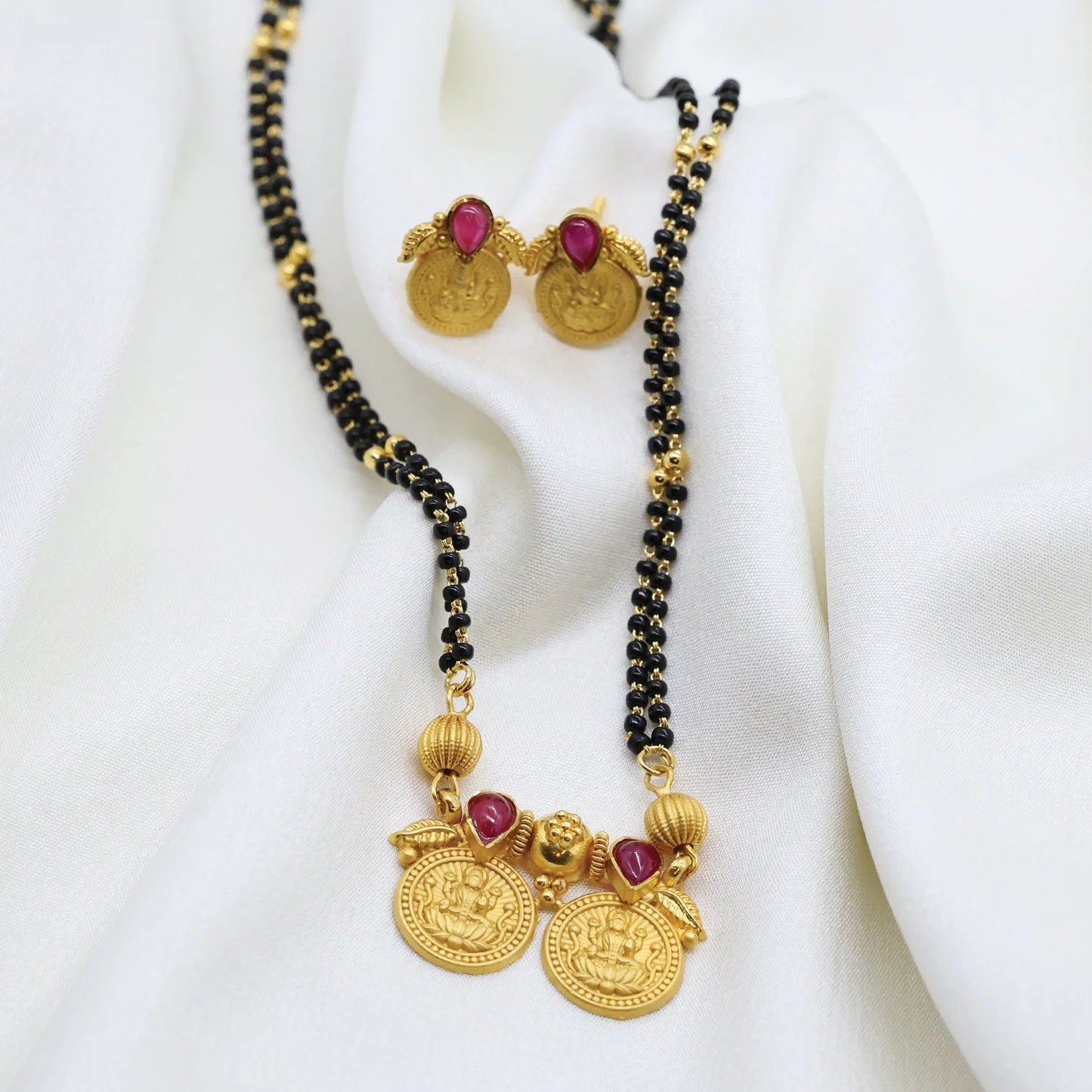 24Kt Gold Plated Antique Style Lakshmi Coin Mangalsutra With Stud Earings