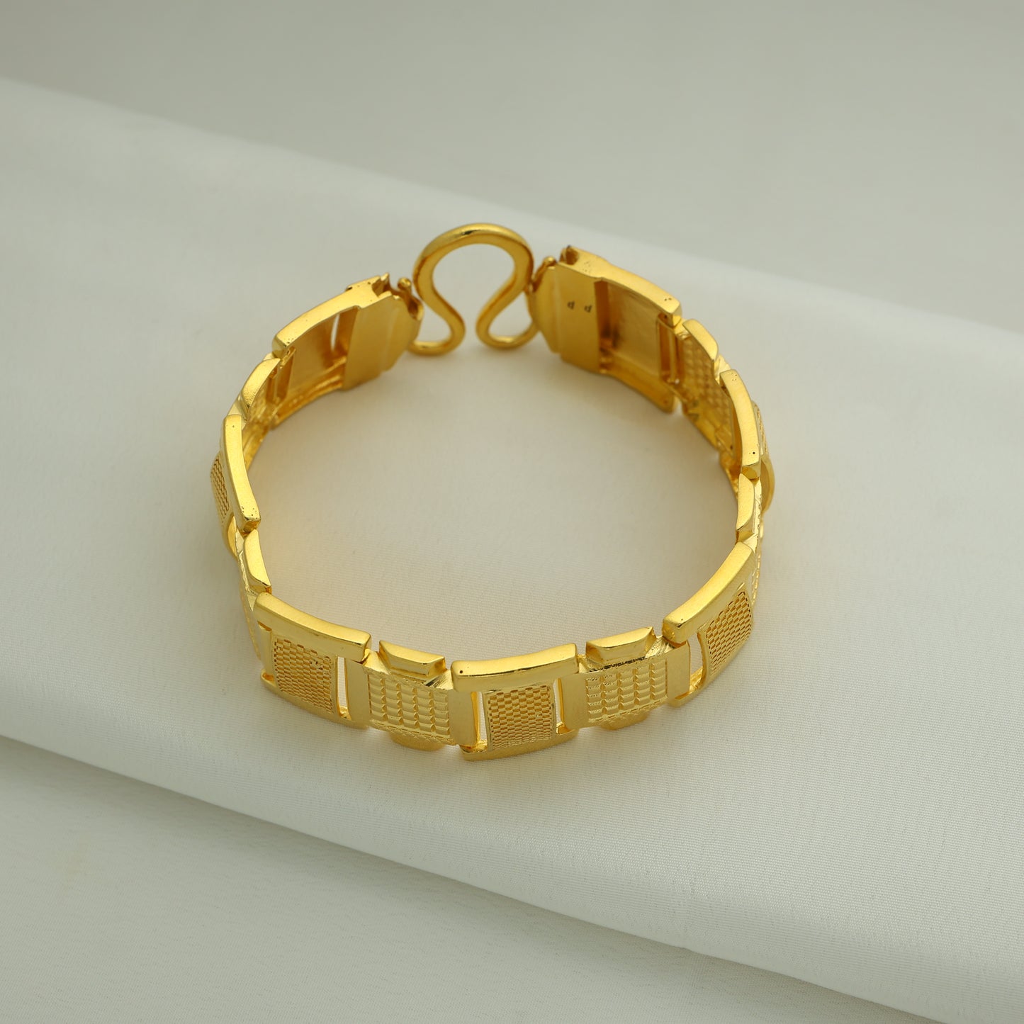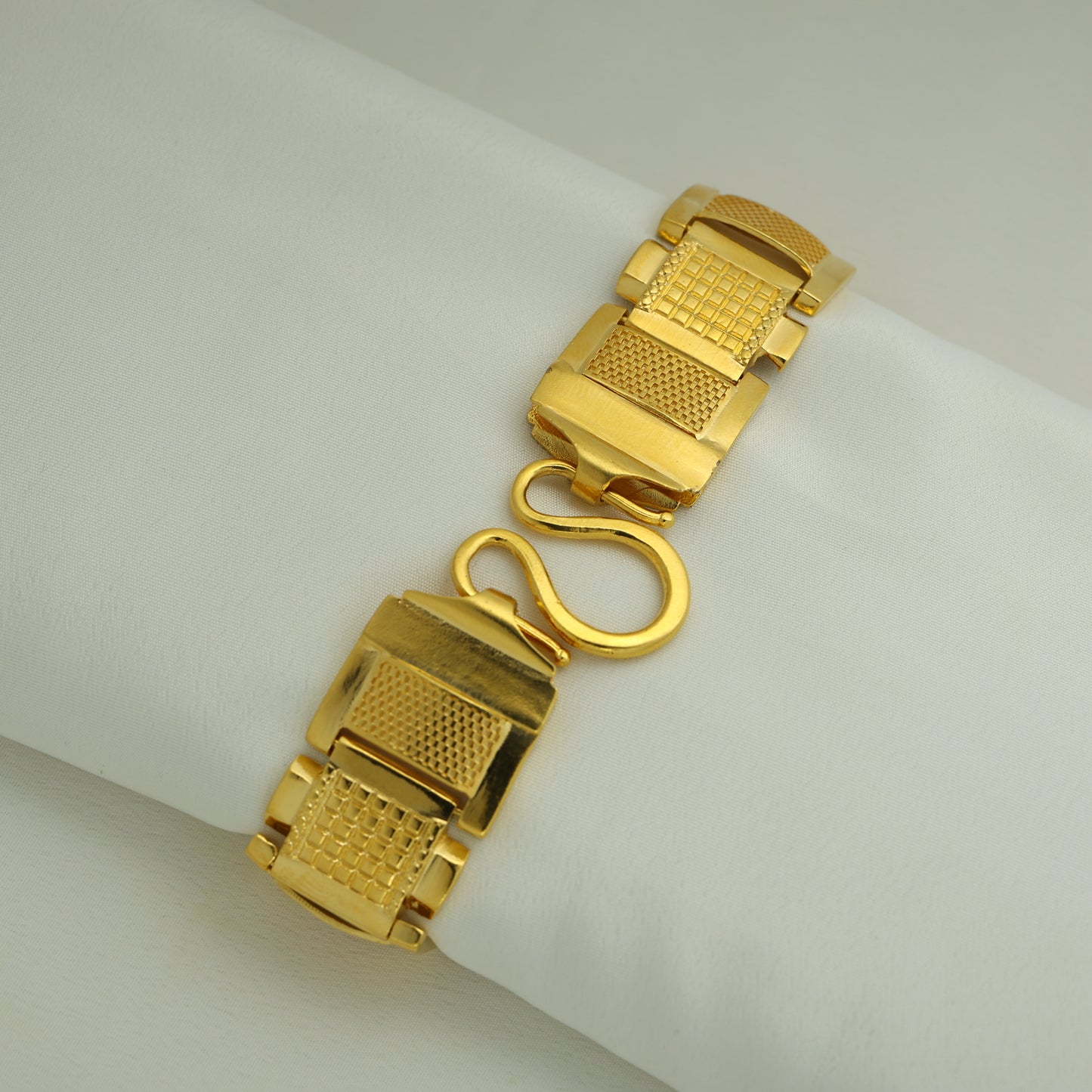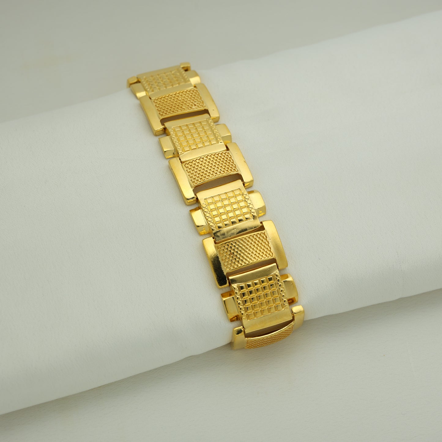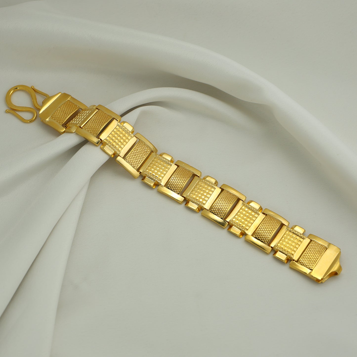 24Kt Gold Plated Textured Rectangular Link Gents Bracelet