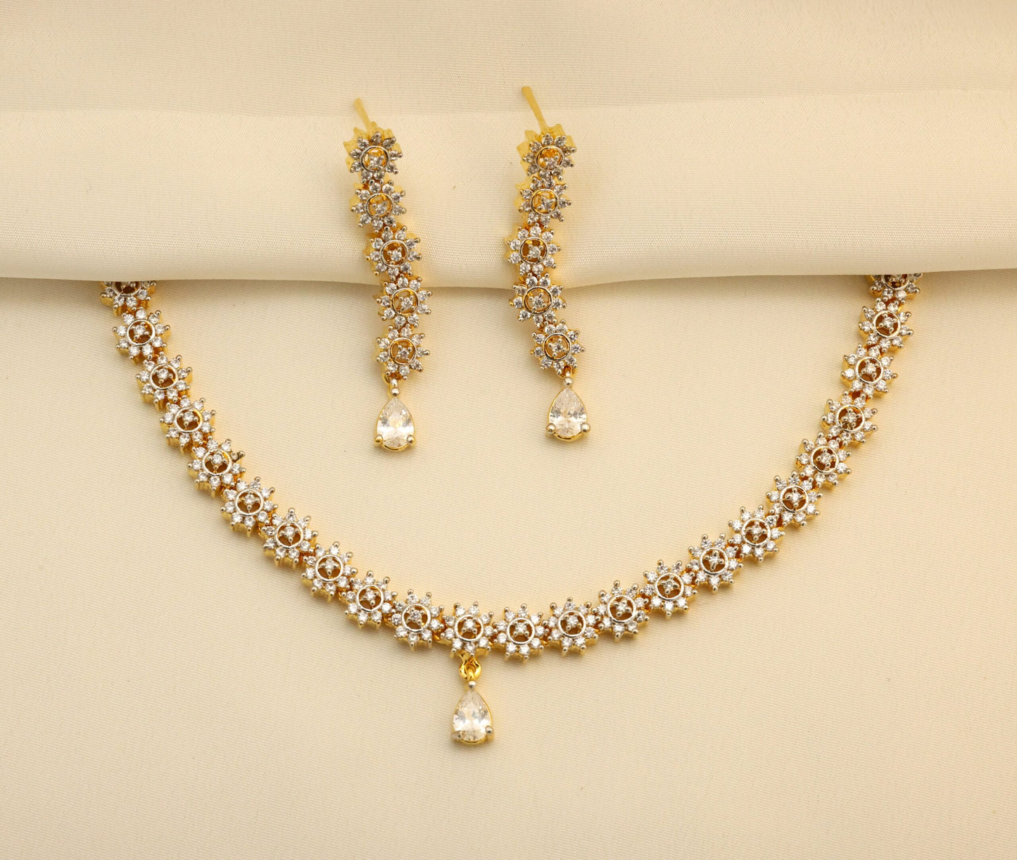 Add Flower shaped American diamond 24 karat gold plated Necklace_1900 to the cart