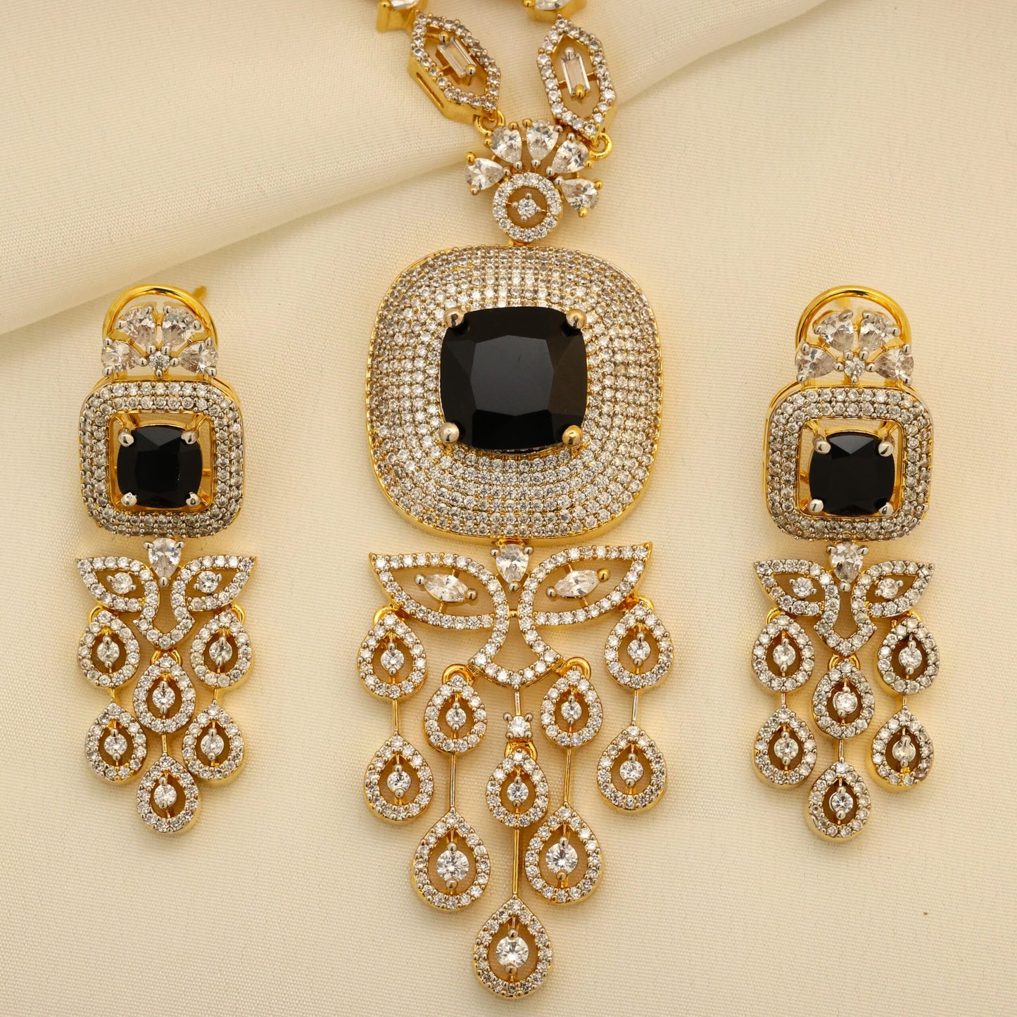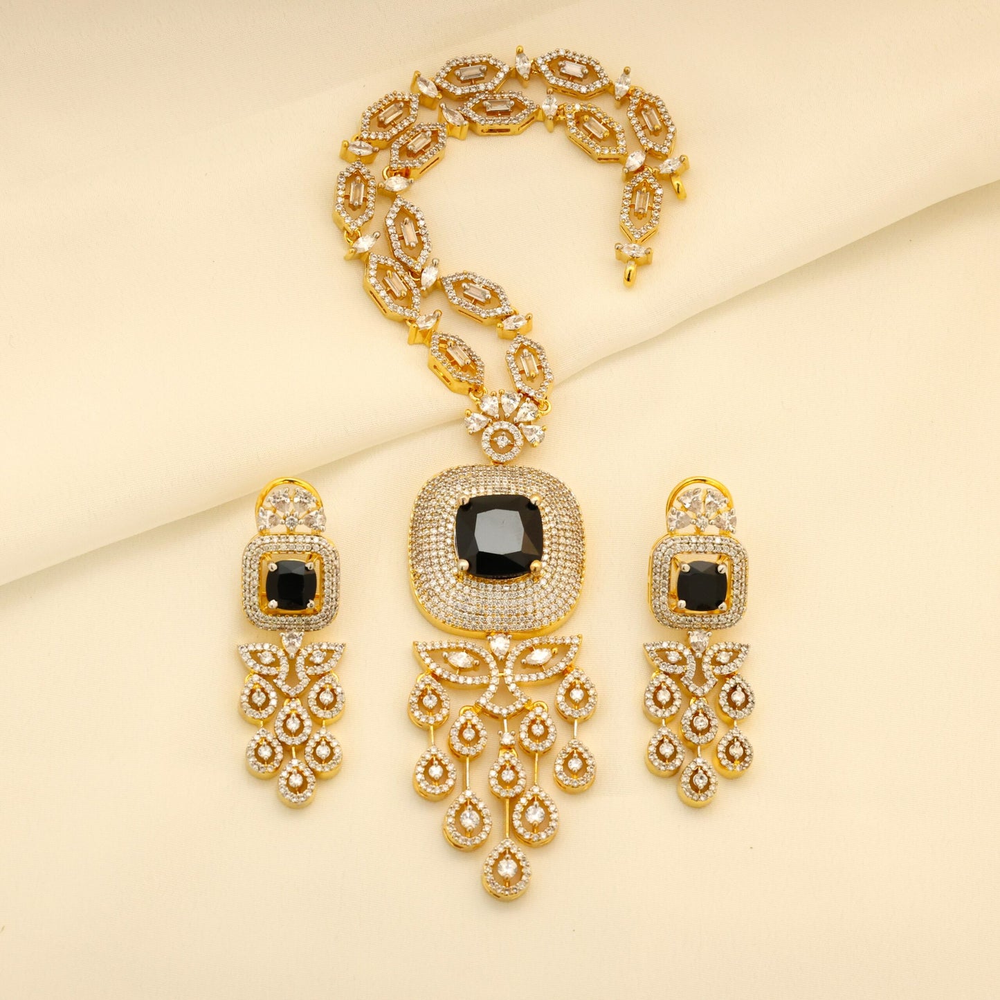 Add Black stone AD Necklace 24 karat gold plated_2100 to the cart