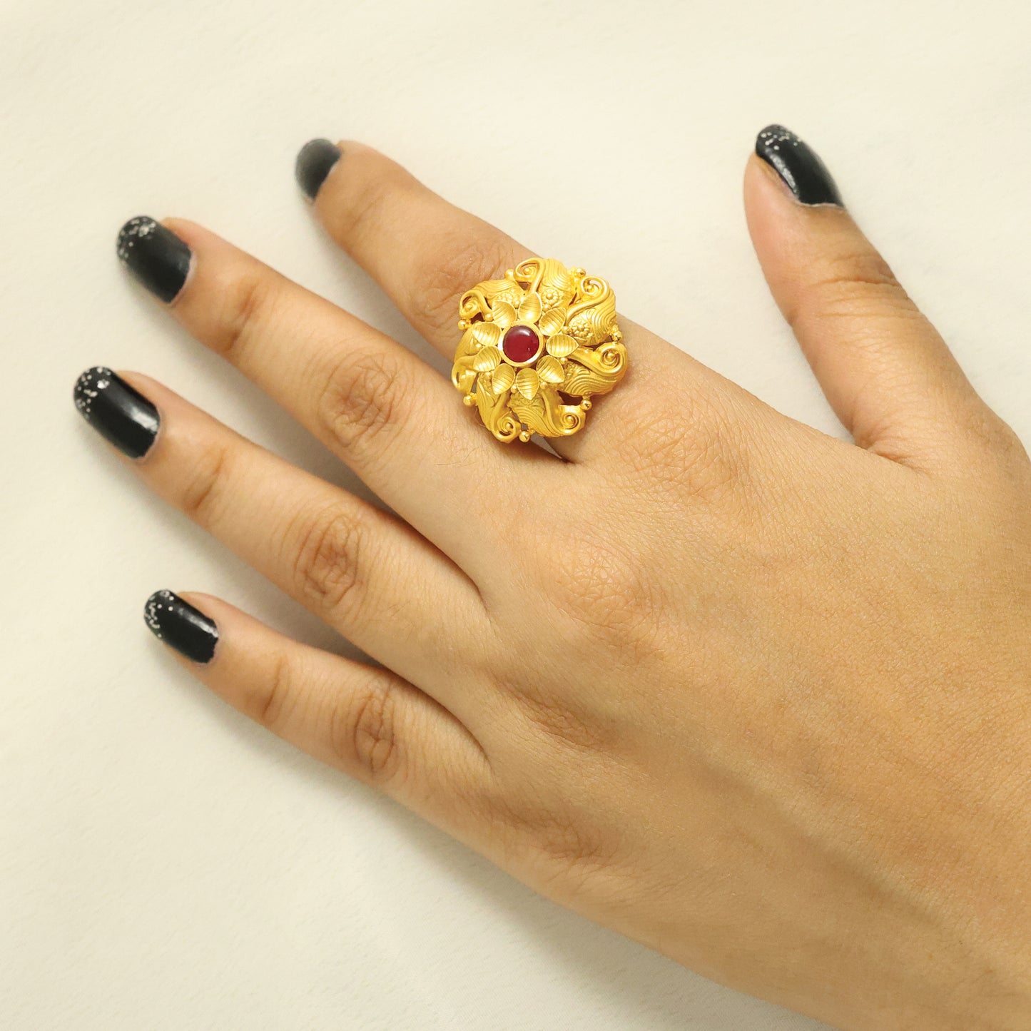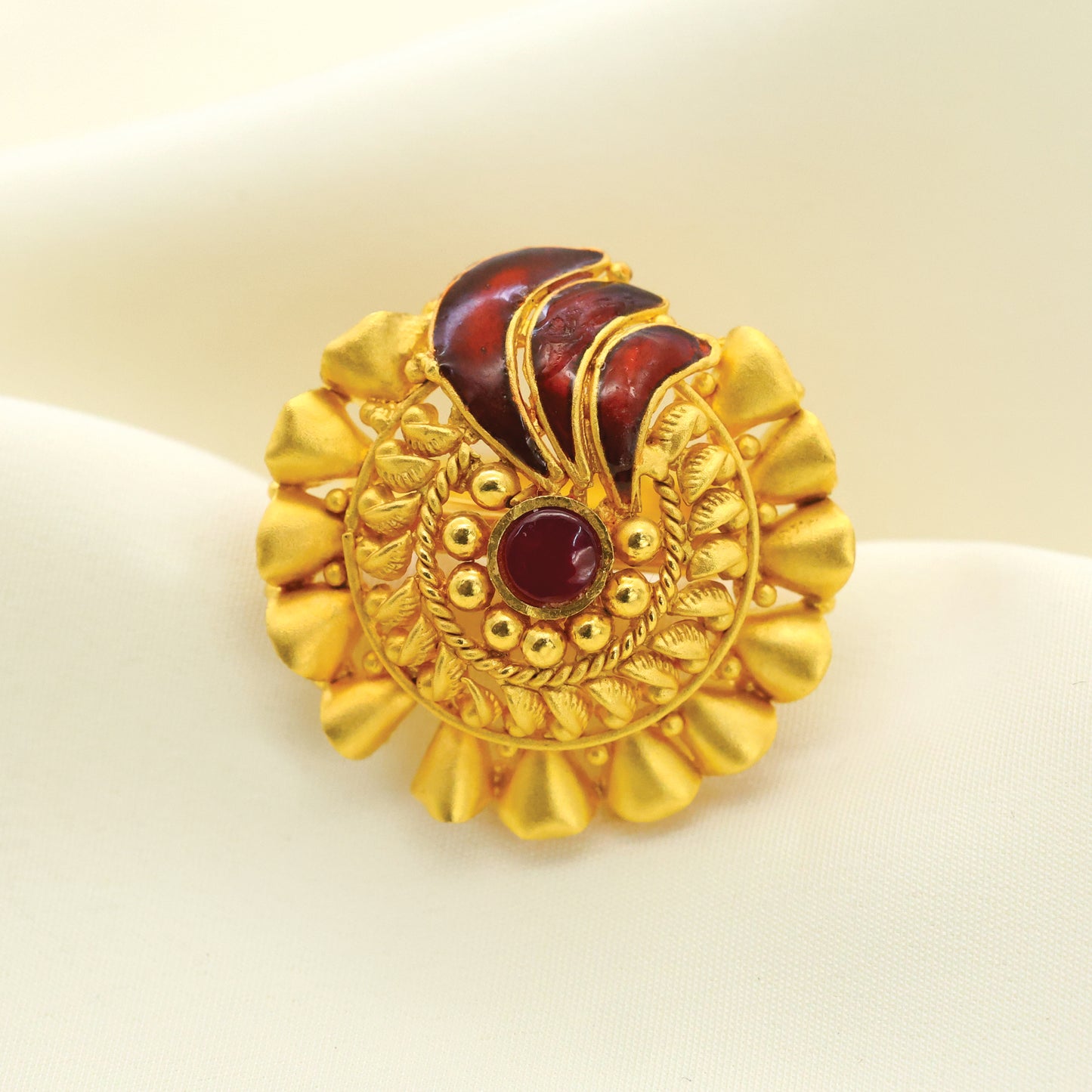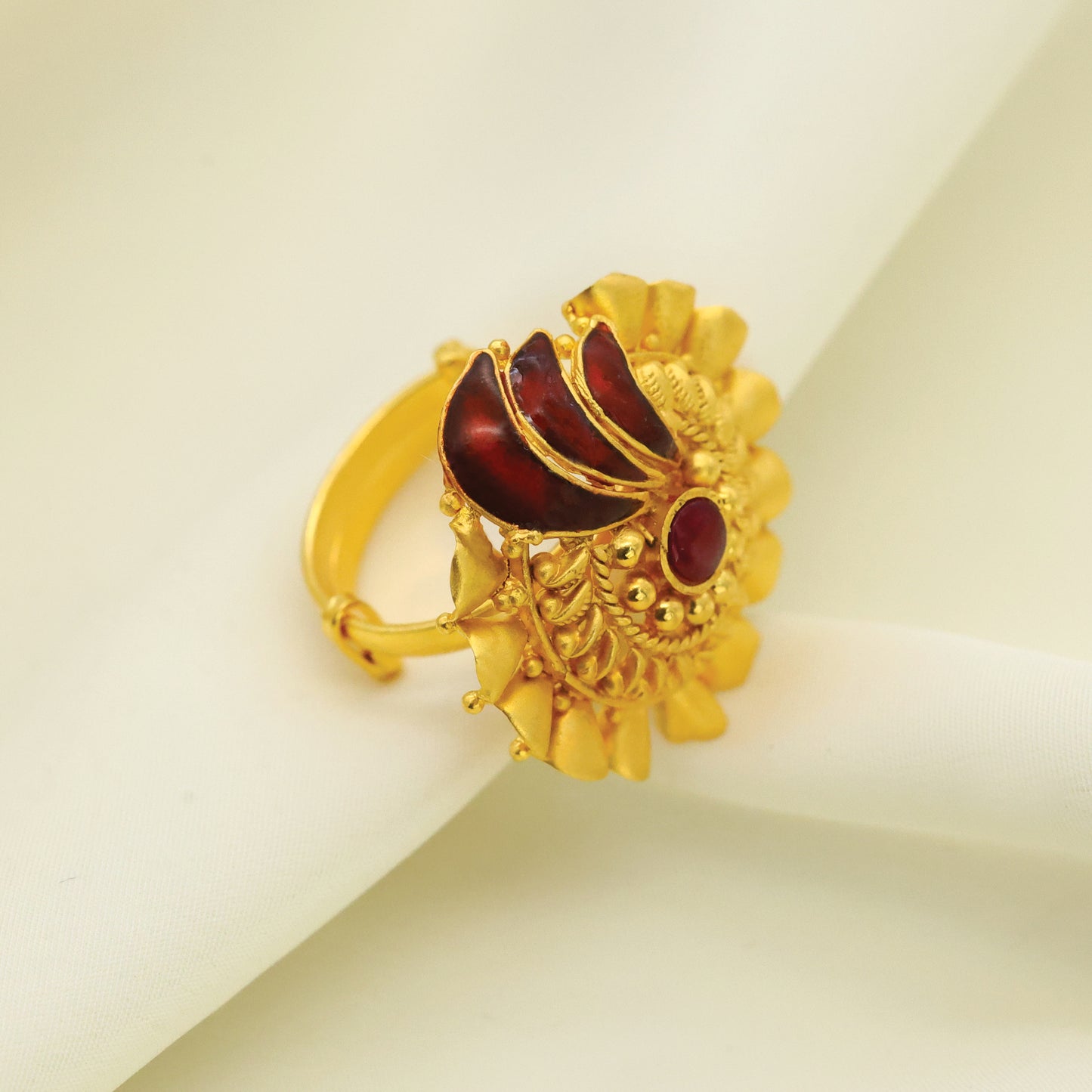 Add 24kt Gold Plated Traditional Antique Look With Red Stone Adjustable Ladies Ring to the cart