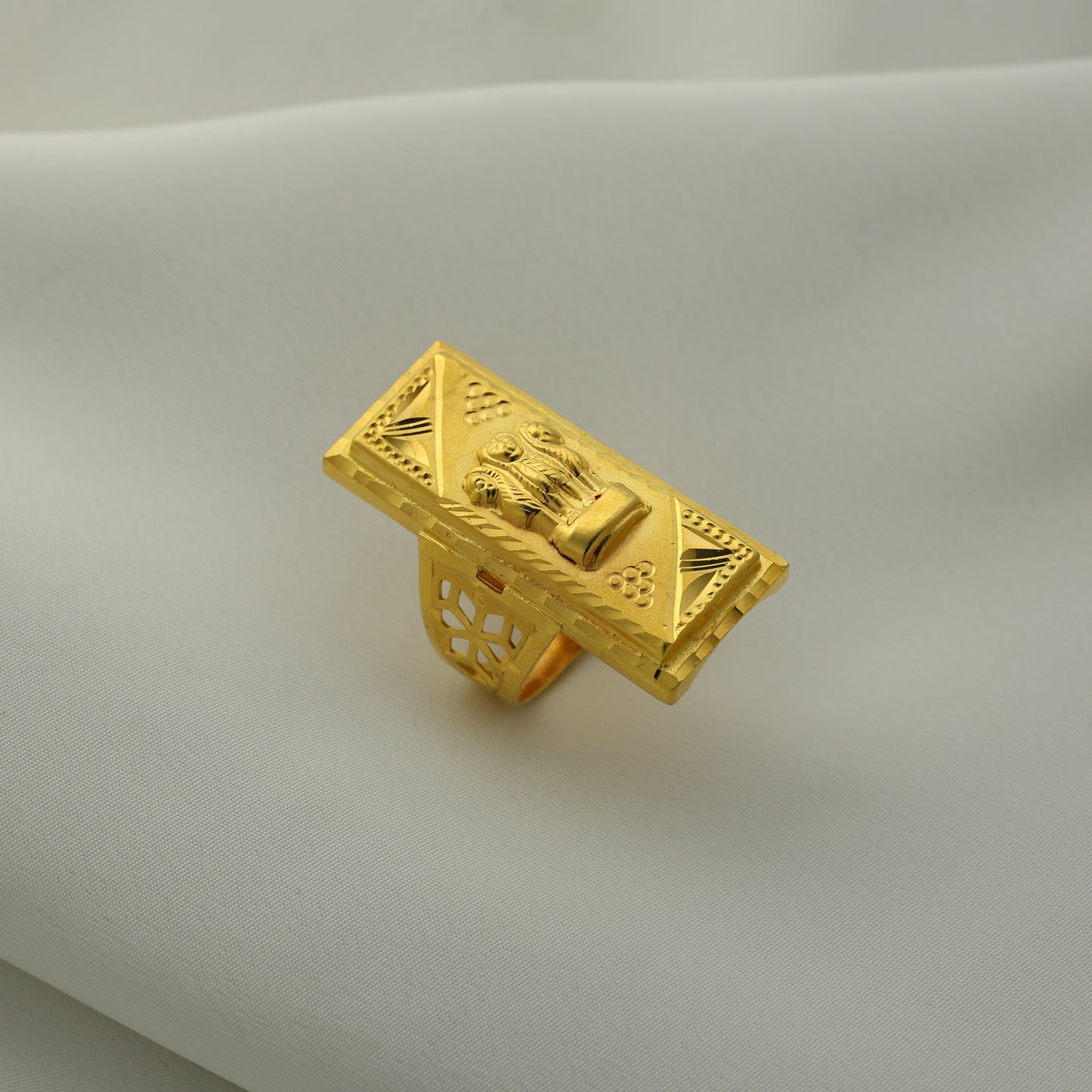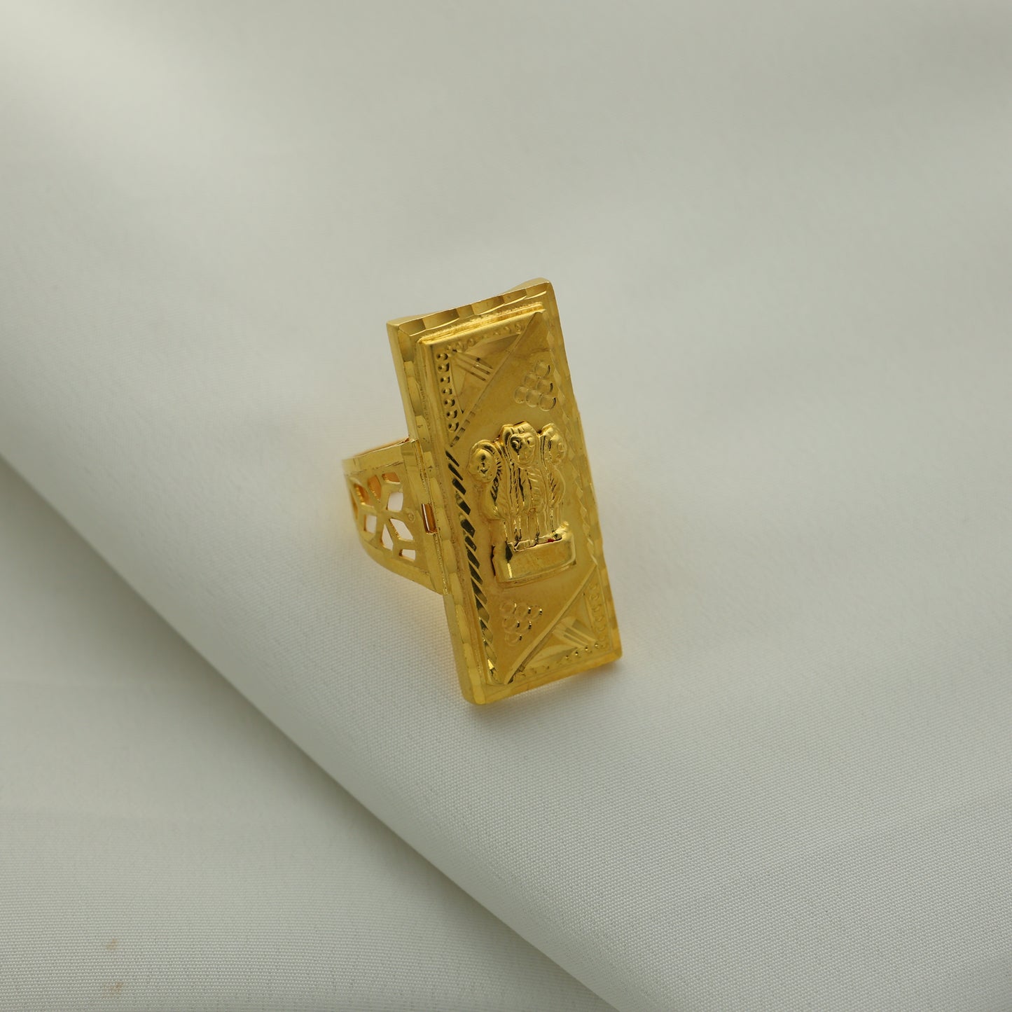 Add 24Kt Gold Plated Ashoka Pillar Biscuit Gents Ring – Designer Rectangular Pattern to the cart