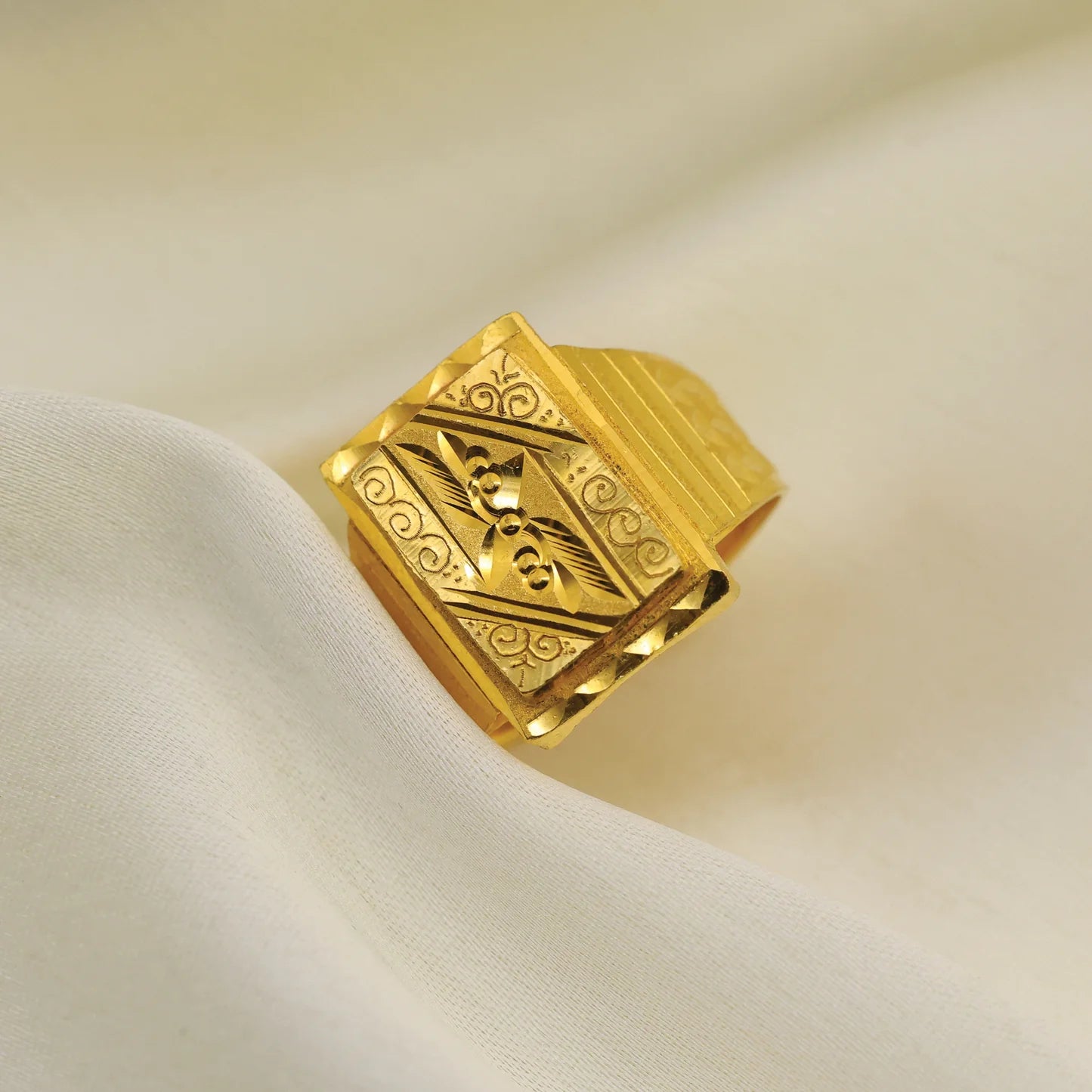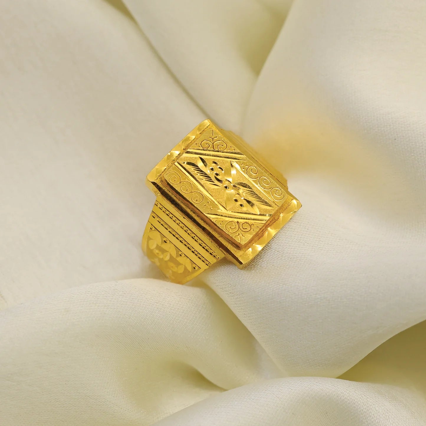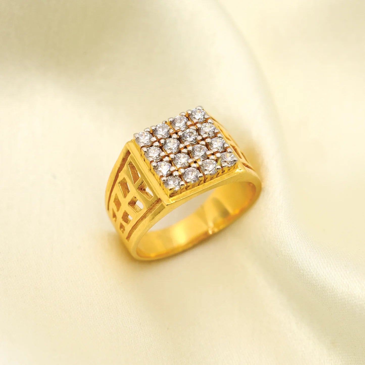 Add 24kt Gold Plated Square Pattern Design Gents Ring to the cart