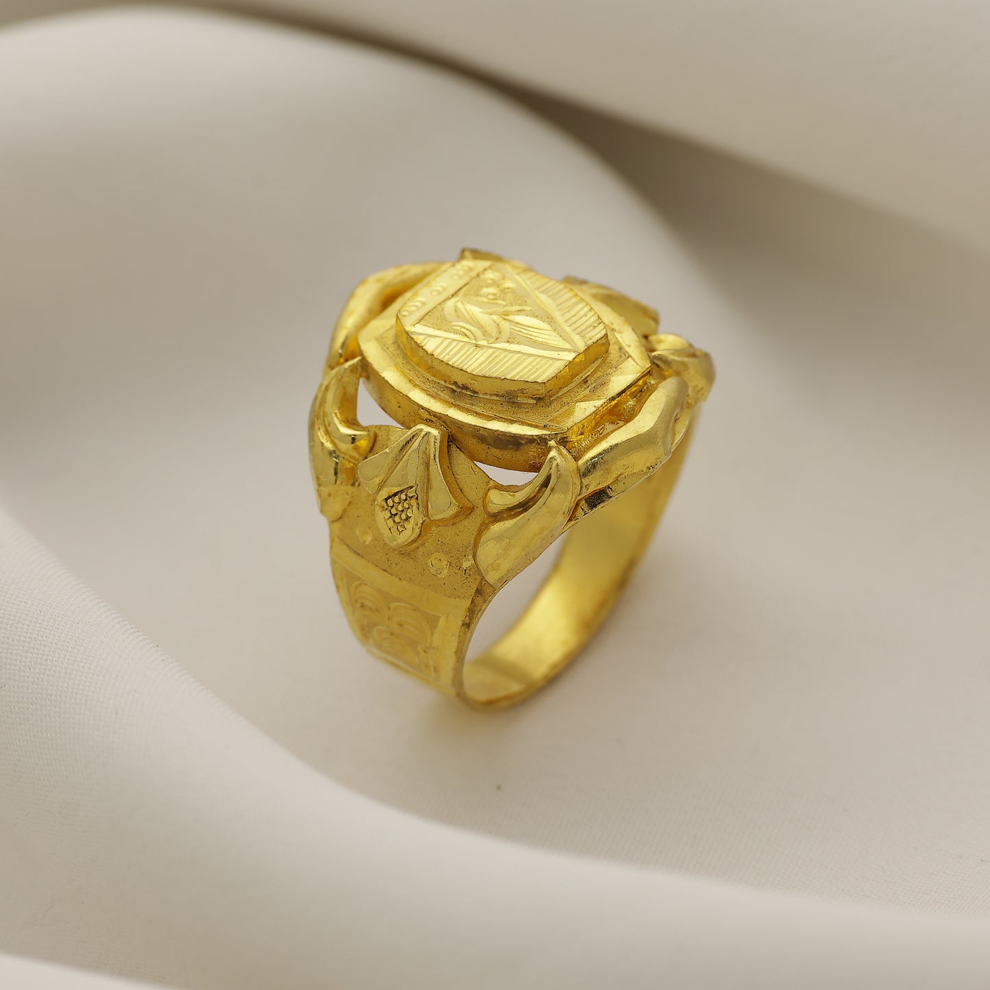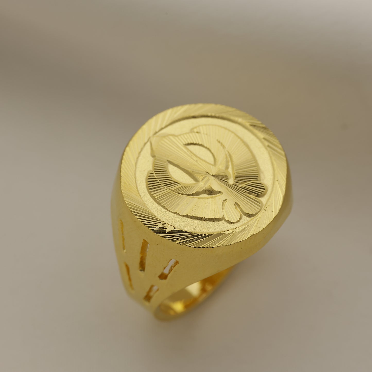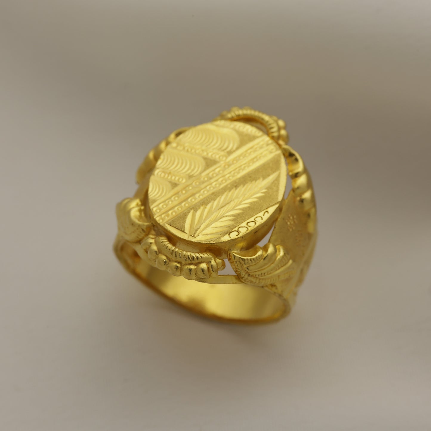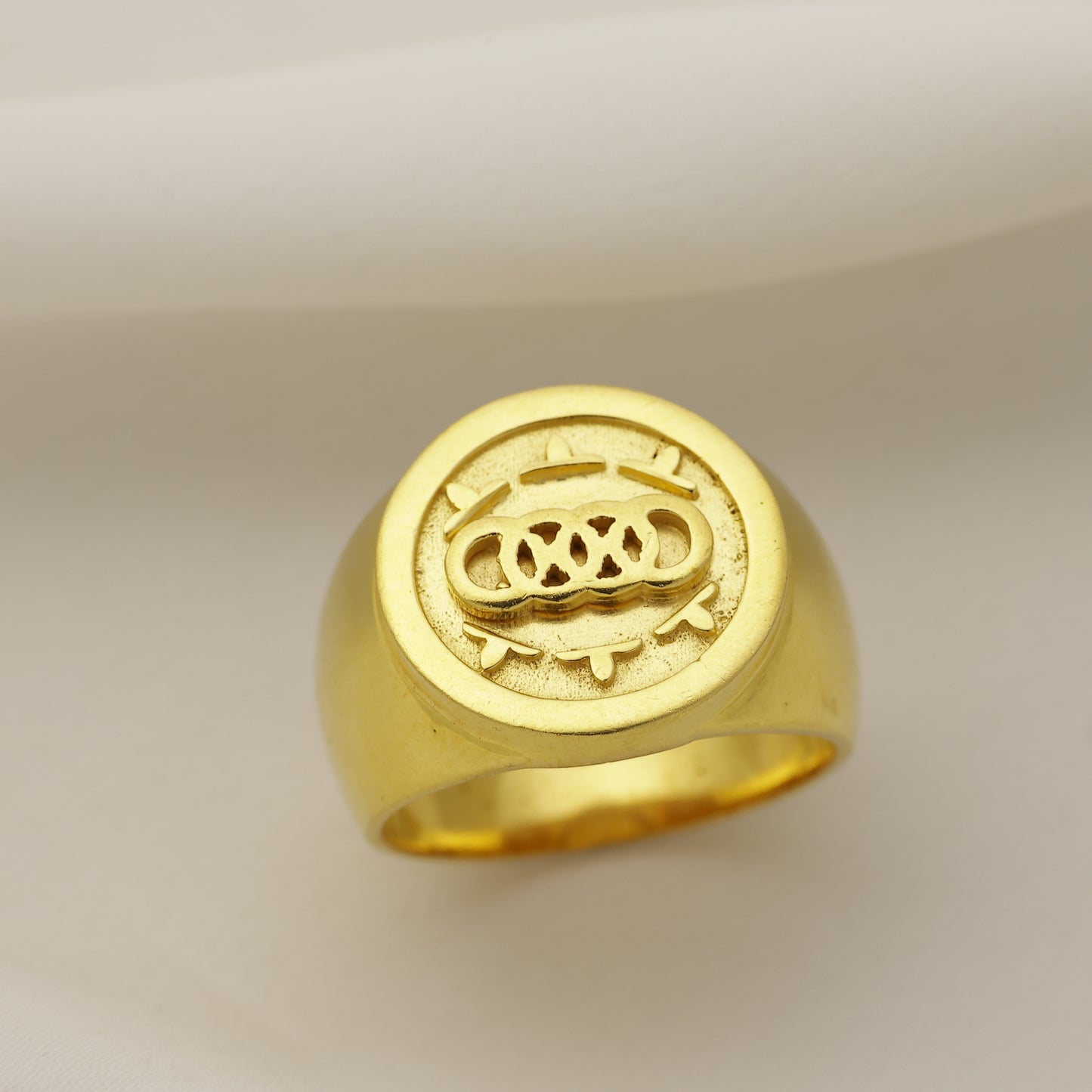Add 24Kt Gold Plated Classic Engraved Signet Ring for Men | Bold Designer Gents Ring to the cart