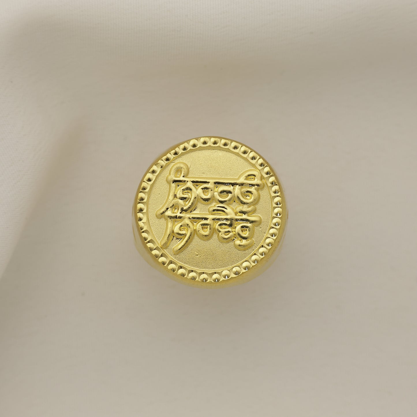 Add 24Kt Gold Plated Engraved Gents Ring for Men | Sikh Religious Statement Ring to the cart