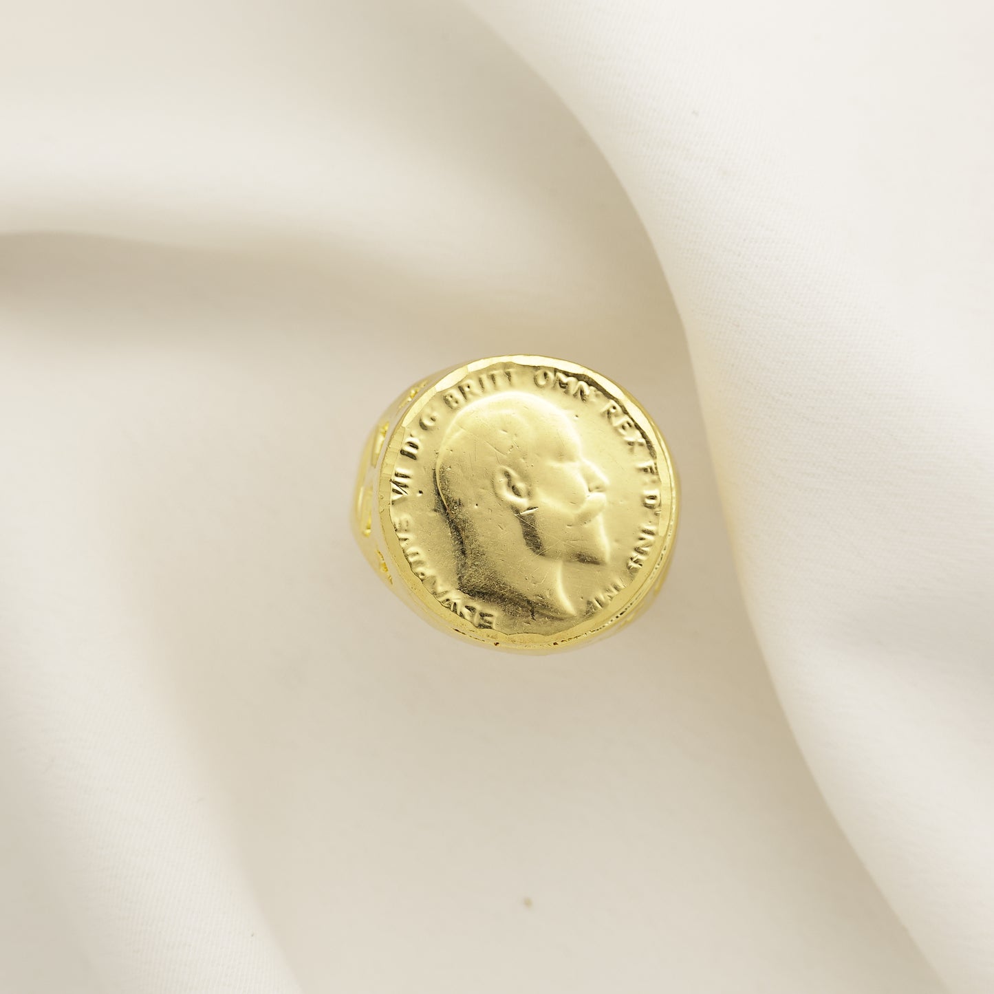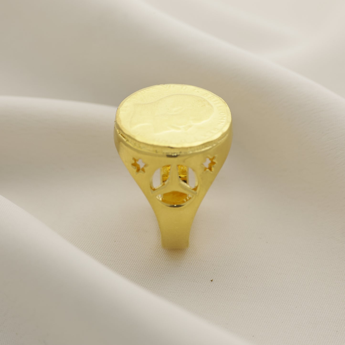 Add 24Kt Gold Plated Vintage Coin Design Gents Ring for Men | Classic Portrait Statement Ring to the cart