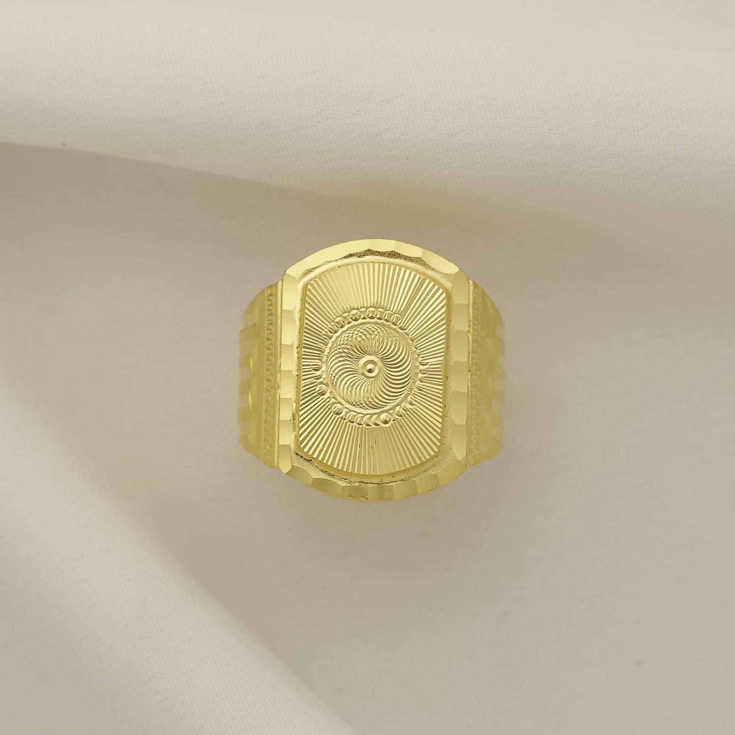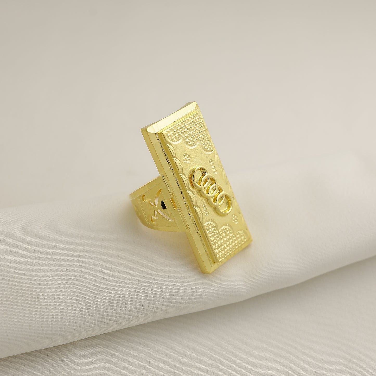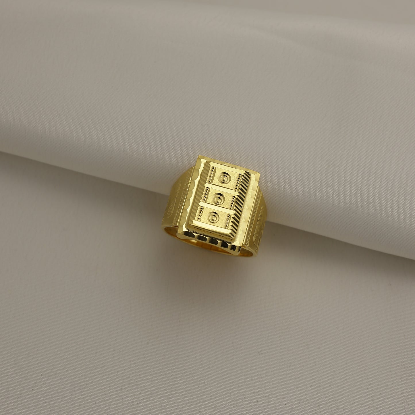 Add 24Kt Gold Plated Geometric Textured Designer Gents Ring for Men | Bold Classic Statement Ring to the cart