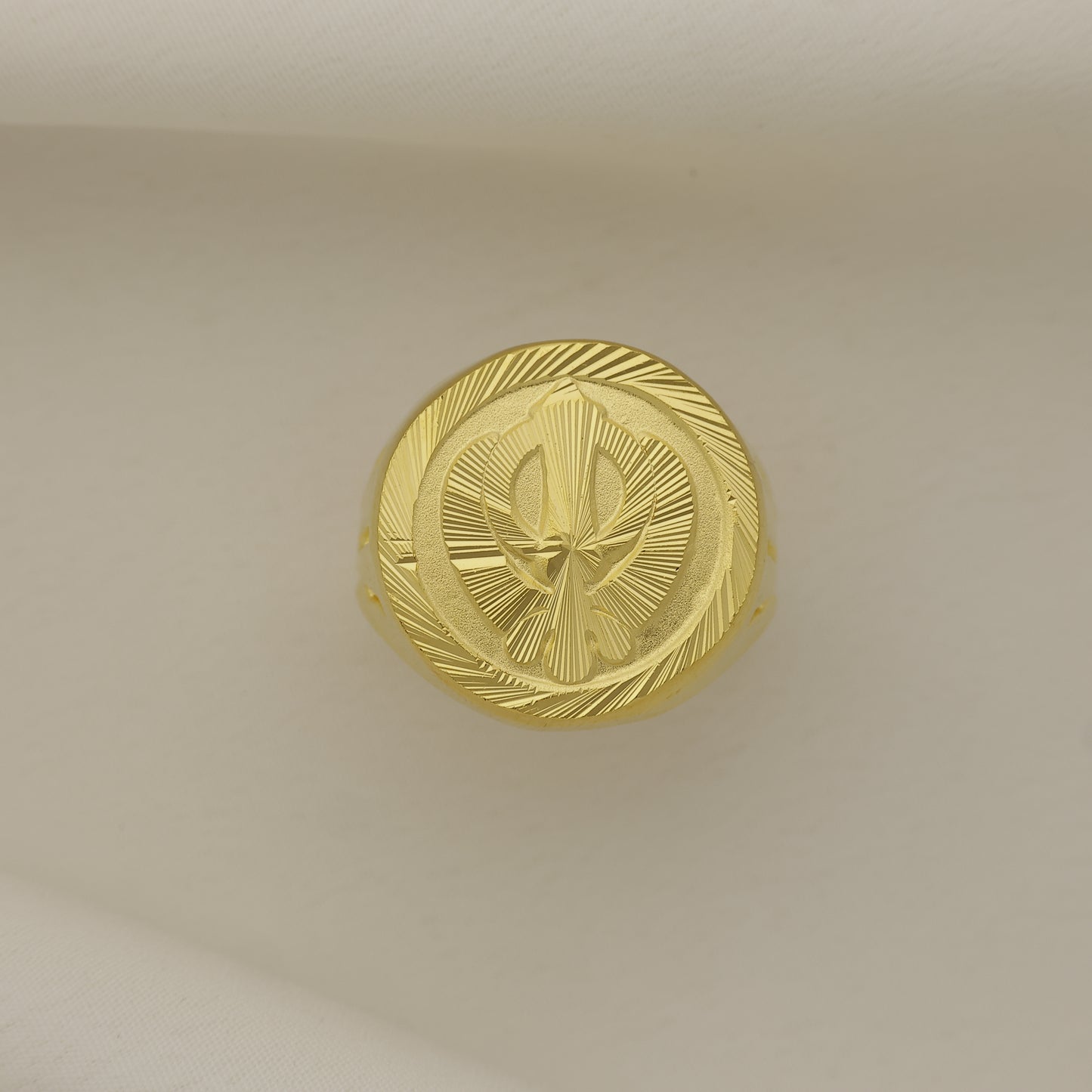 Add 24Kt Gold Plated Khanda Symbol Designer Gents Ring for Men | Sikh Religious Statement Ring to the cart