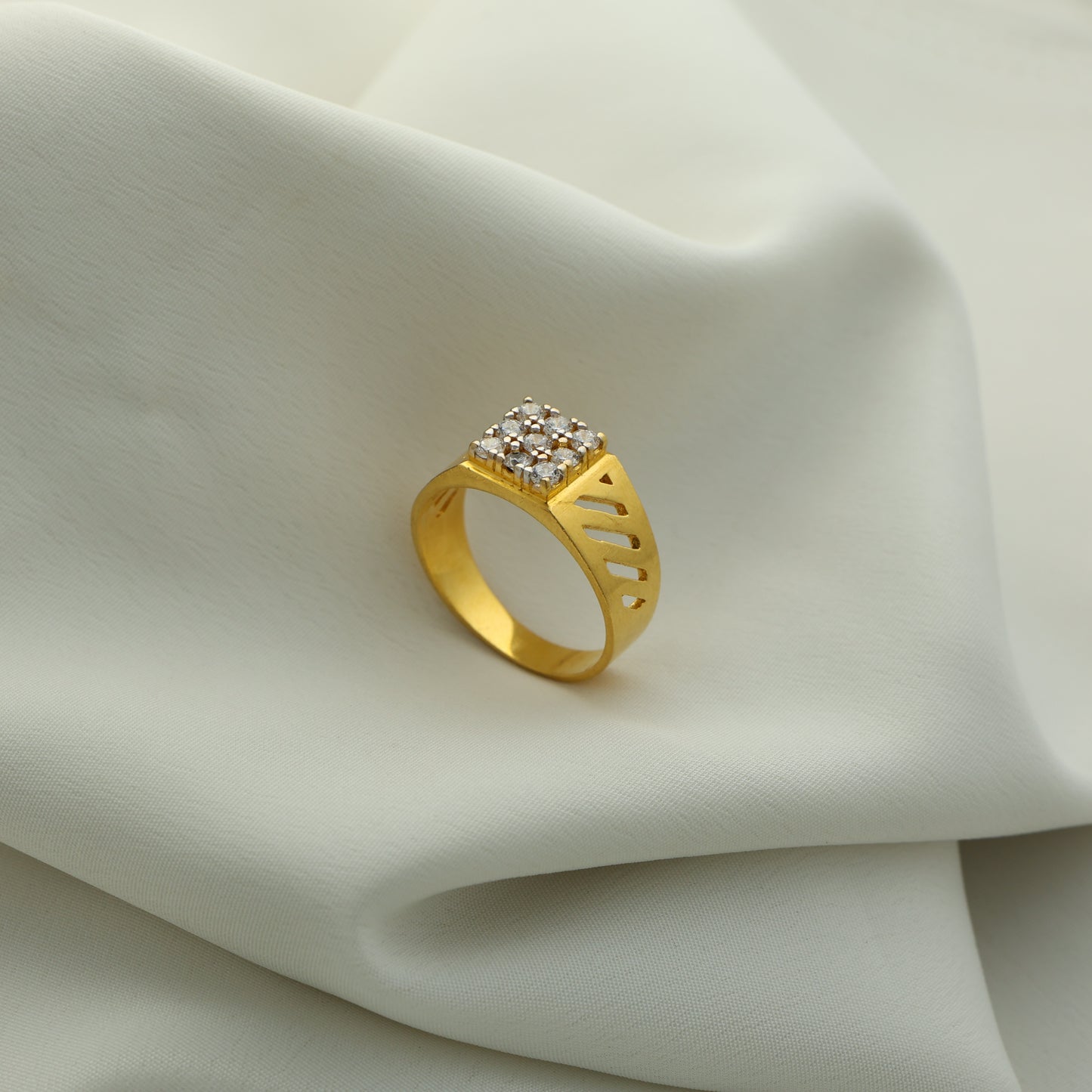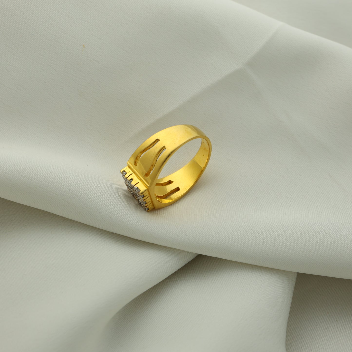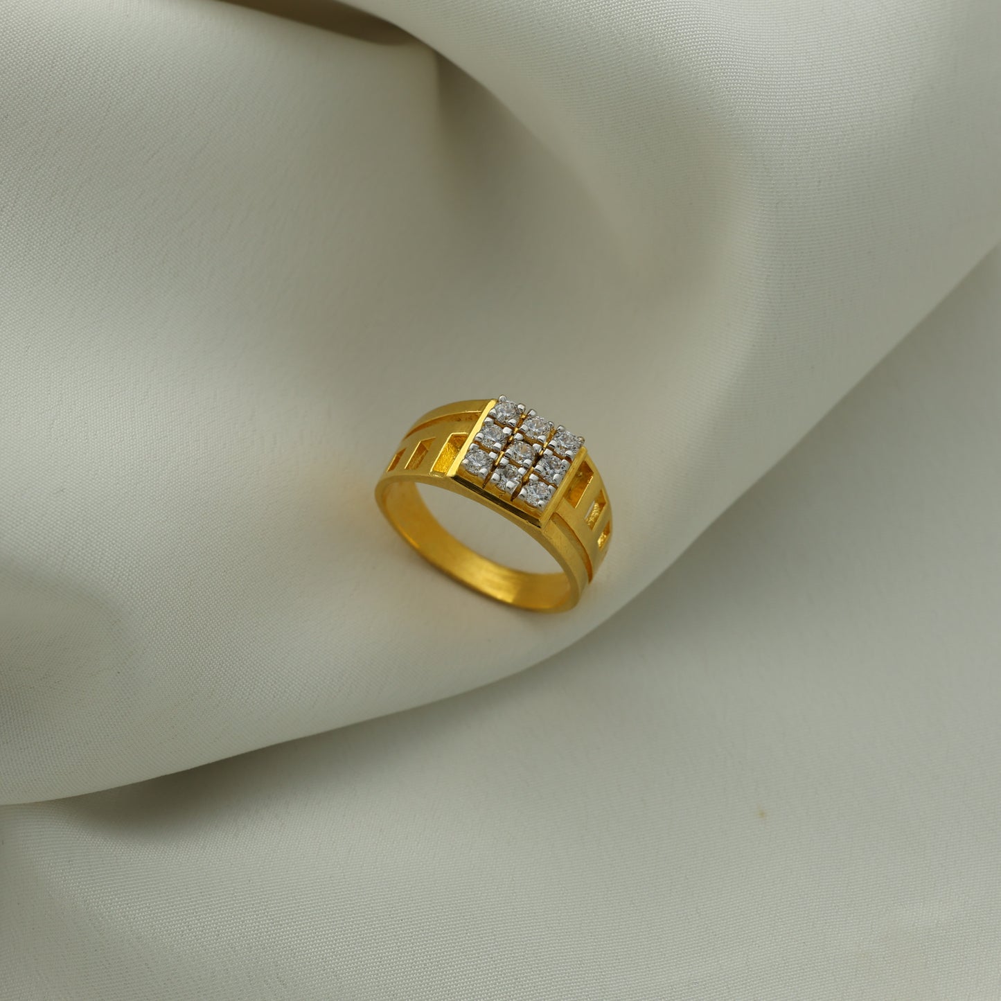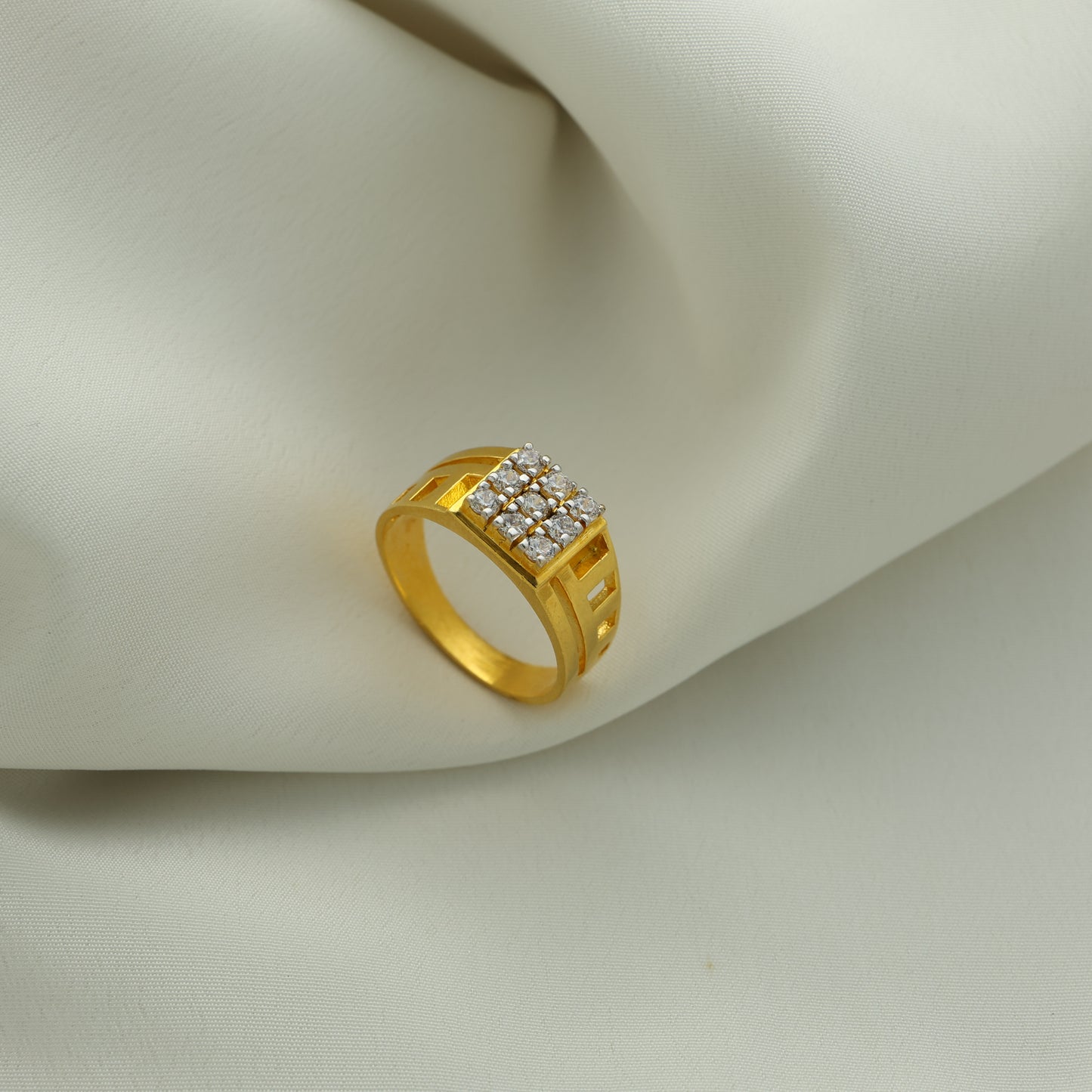 Add 24Kt Gold Plated American Diamond Square Cluster Gents Ring – Designer Cut Pattern to the cart