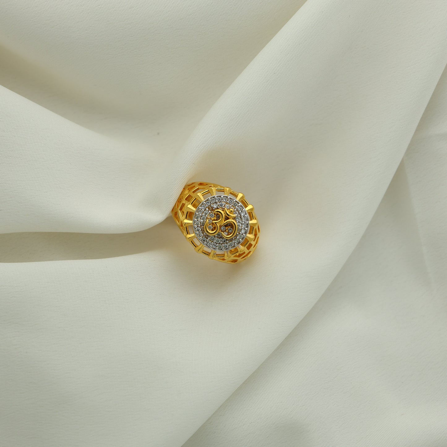 Add 24Kt Gold Plated Om American Diamond Gents Ring – Religious Designer Style to the cart