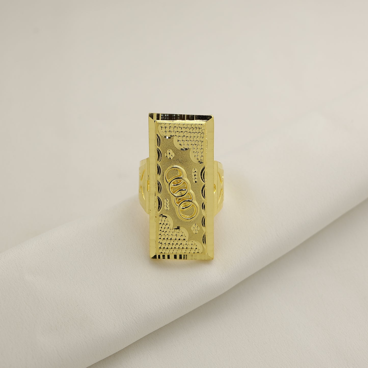 Add 24Kt Gold Plated Designer Rectangle Pattern Gents Ring for Men to the cart