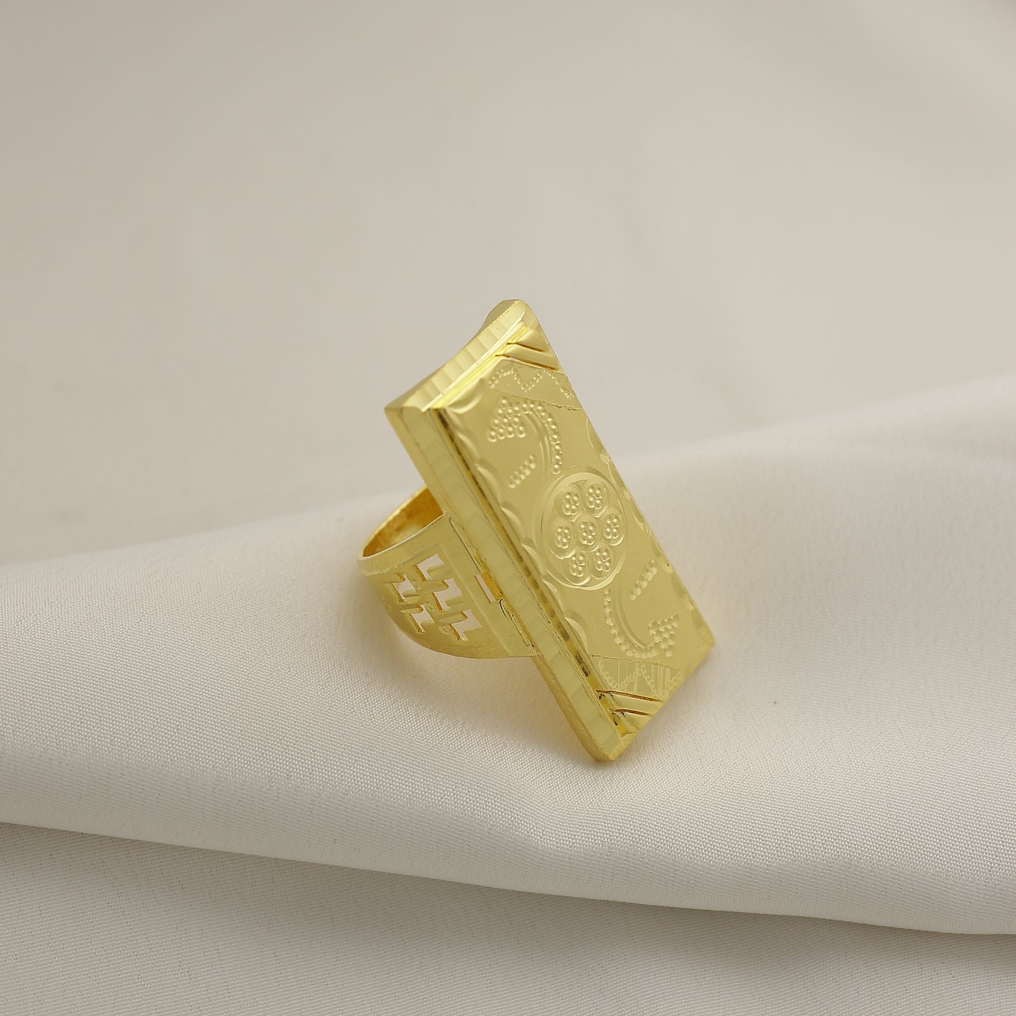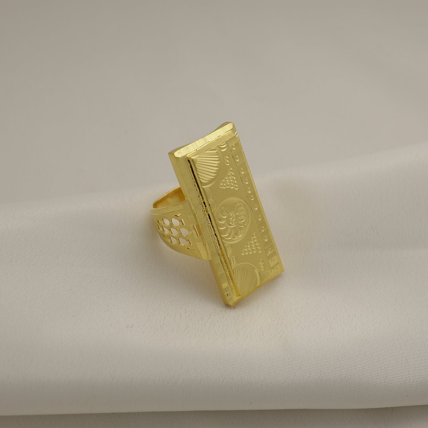 Add 24Kt Gold Plated Designer Rectangle Engraved Gents Ring for Men to the cart