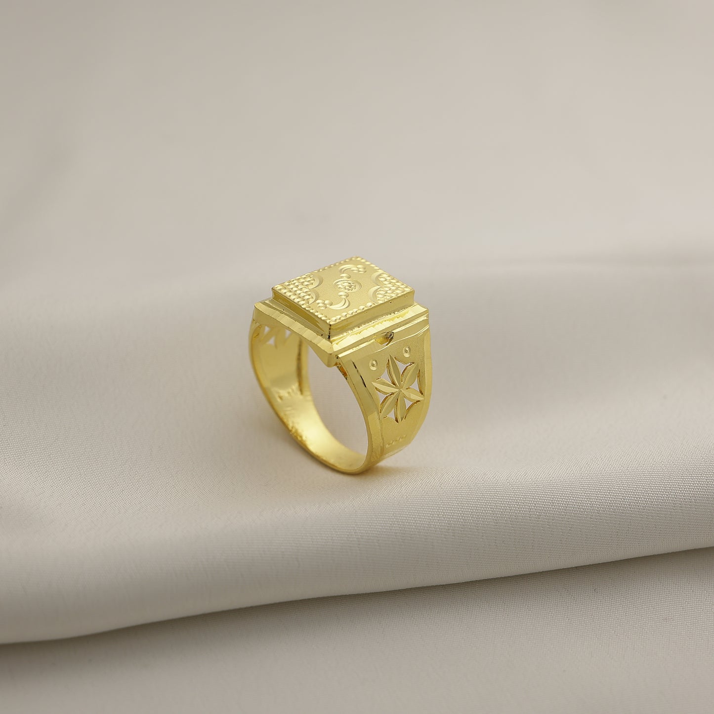 Add 24Kt Gold Plated Designer Square Engraved Gents Ring for Men to the cart