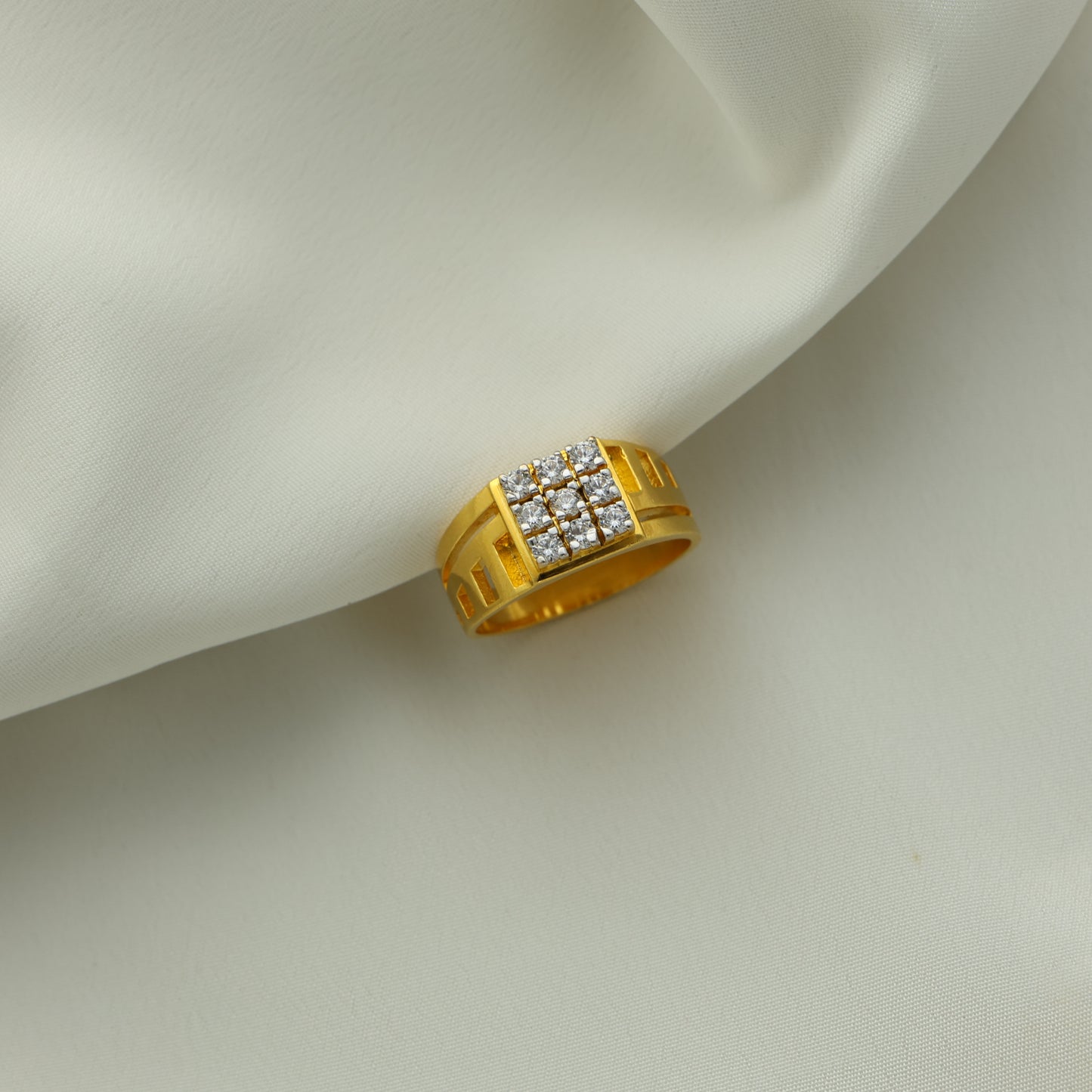 24Kt Gold Plated American Diamond Square Cluster Gents Ring – Classic Statement Design