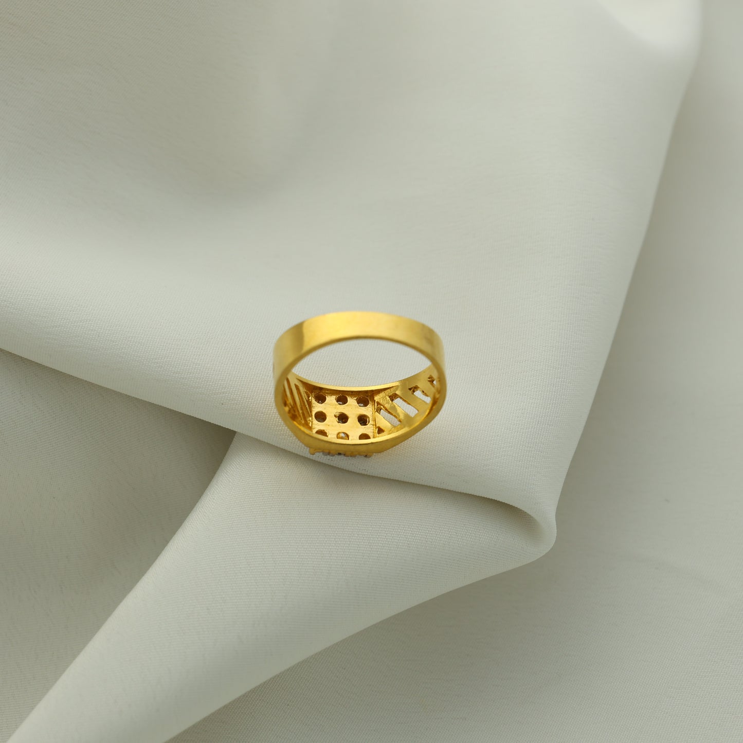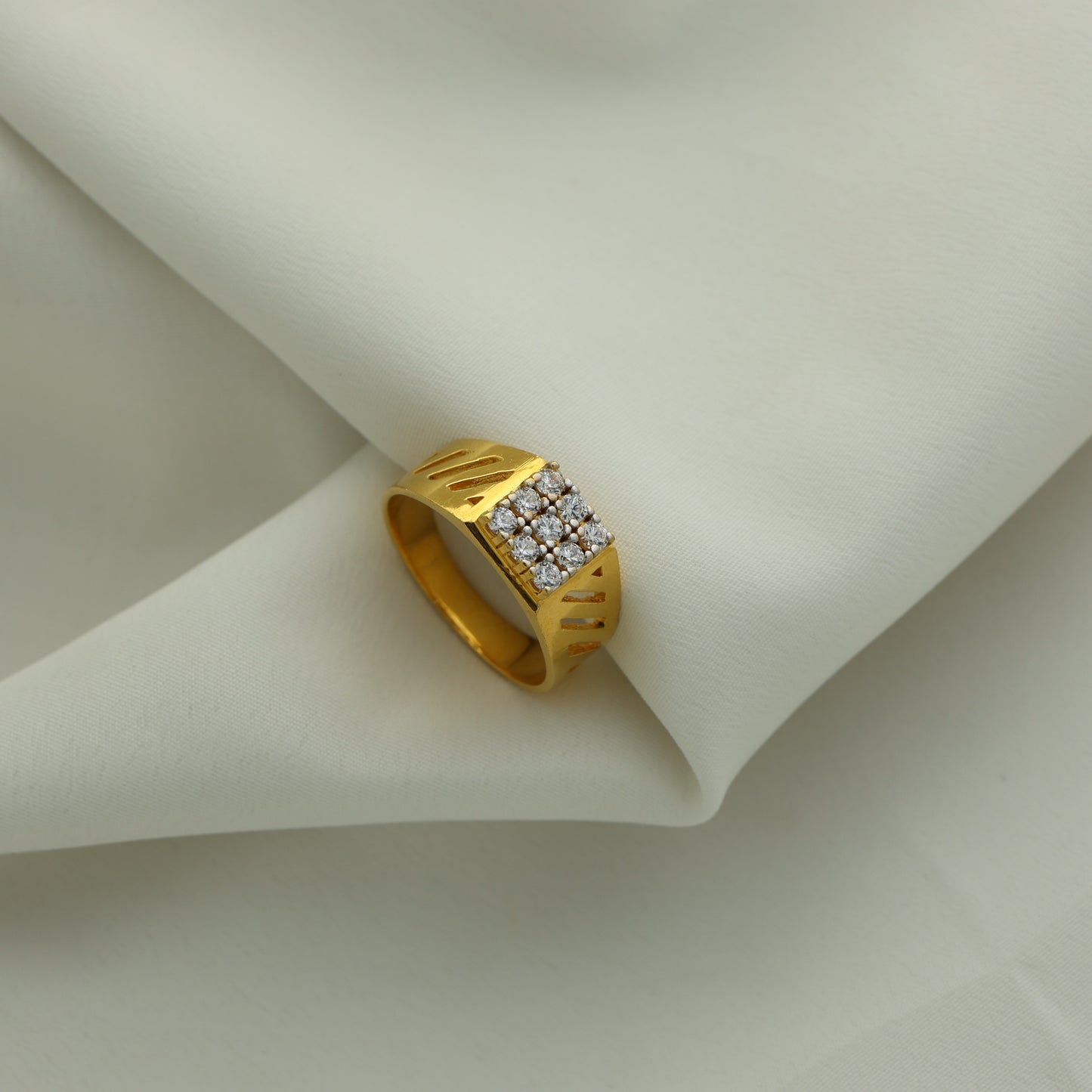 24Kt Gold Plated American Diamond Square Cluster Gents Ring – Designer Cut Pattern